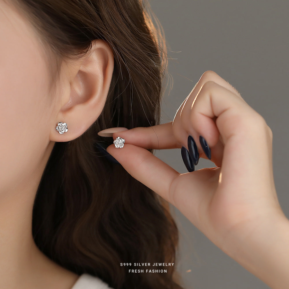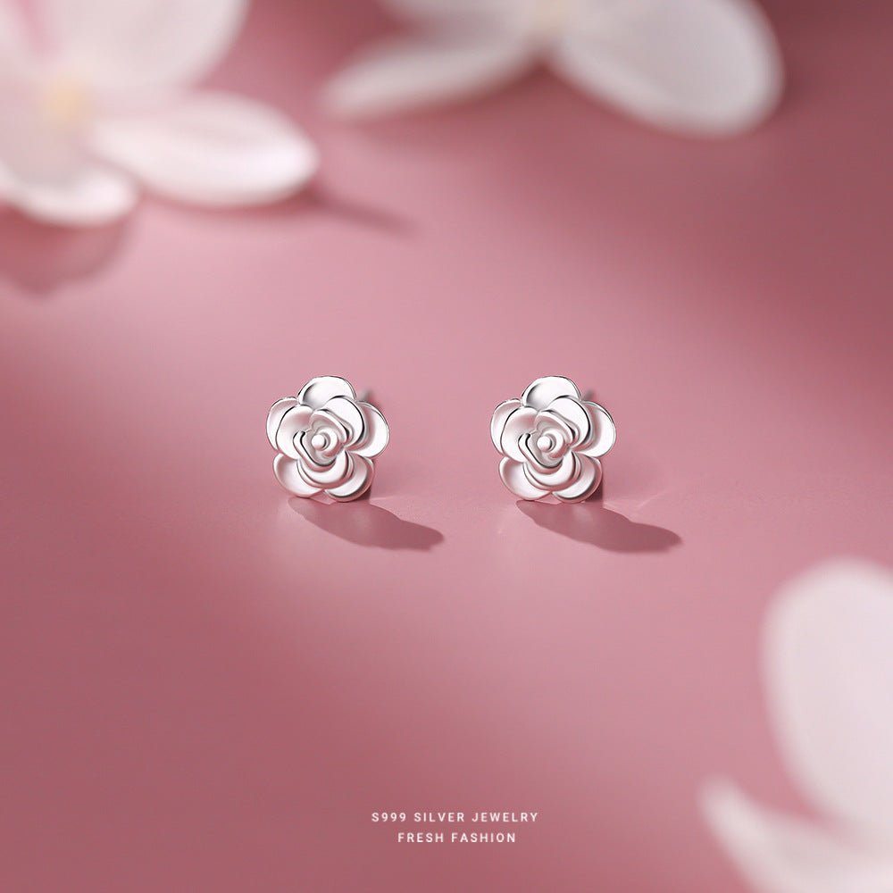 C廠 韓國韓版光面山茶花S999純銀耳環 批發 折扣@洽客服 24.11.W2「E5775」