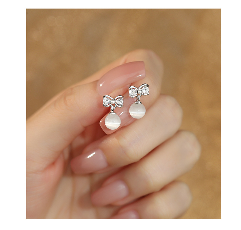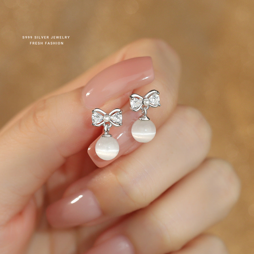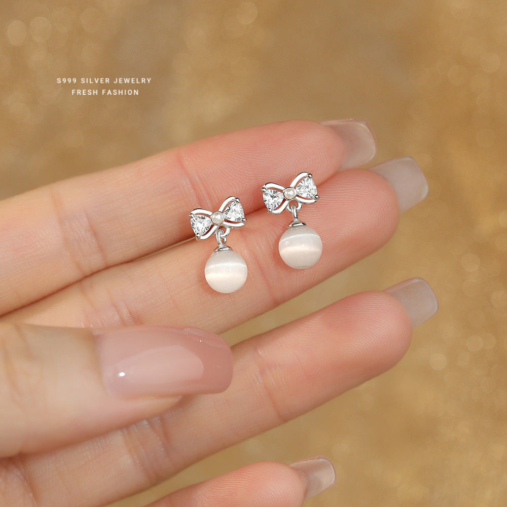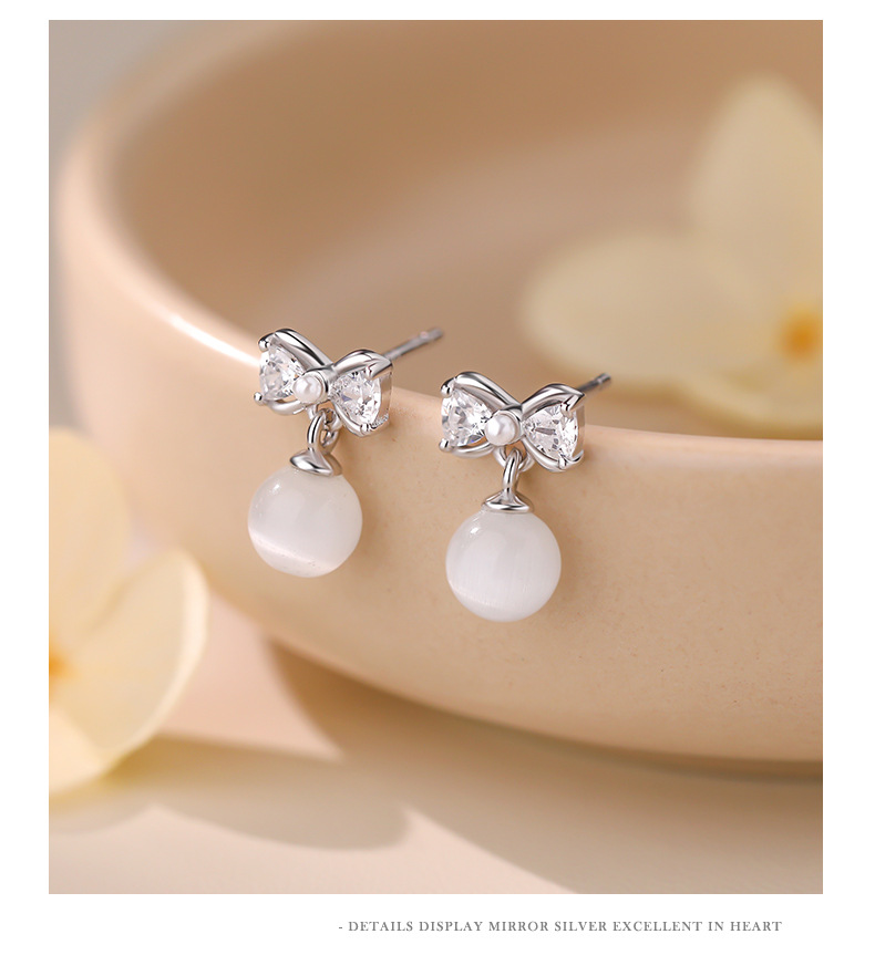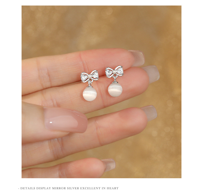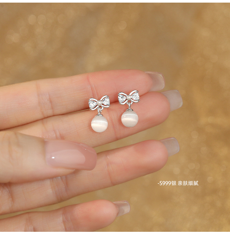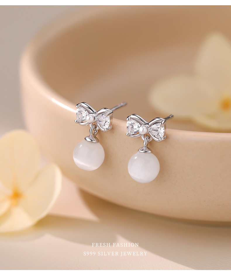 C廠 韓國韓版白貓眼石蝴蝶結S999純銀耳環 批發 折扣@洽客服 25.11.W3「E5787」