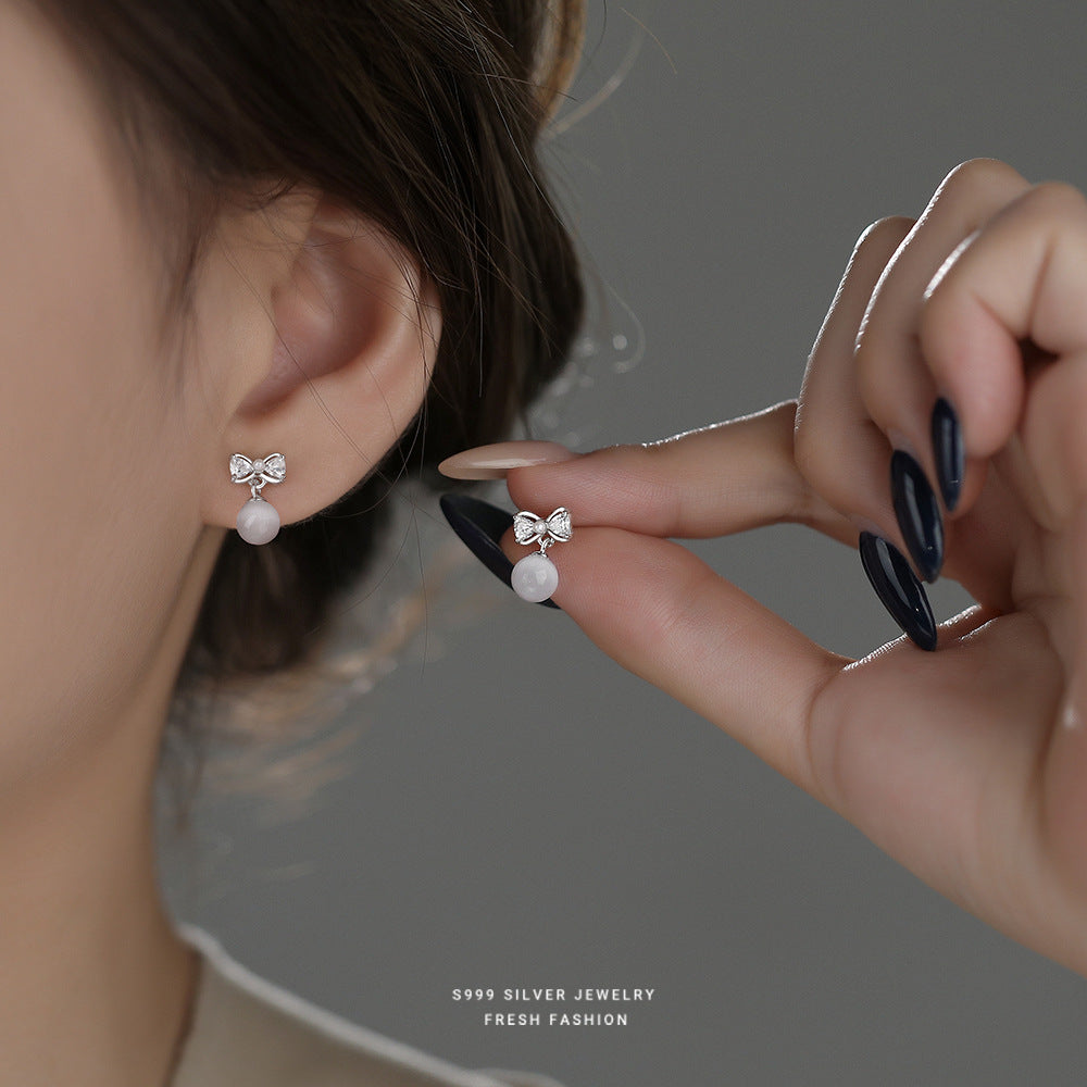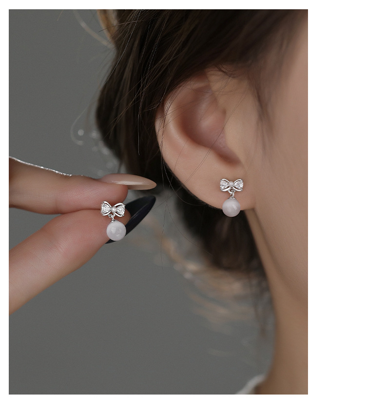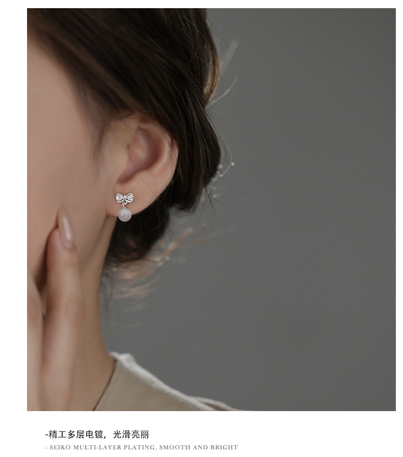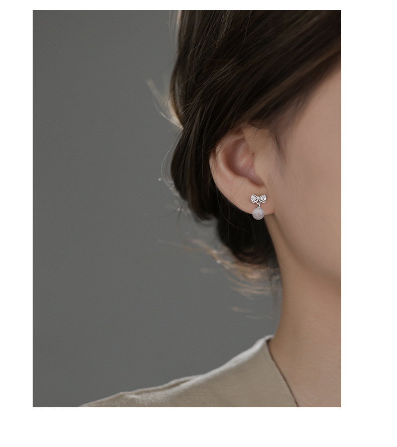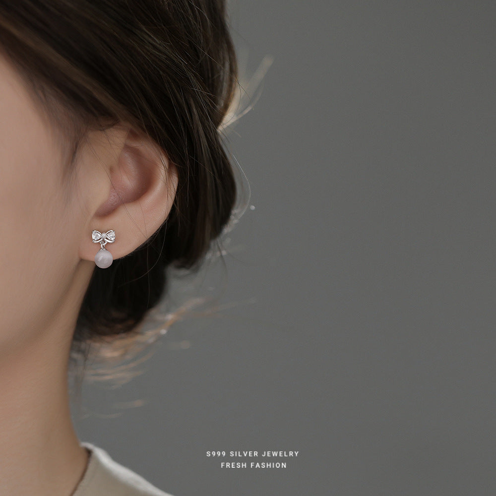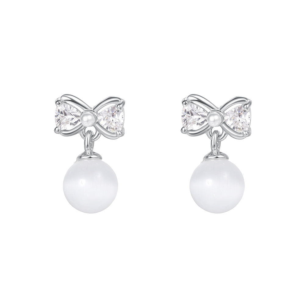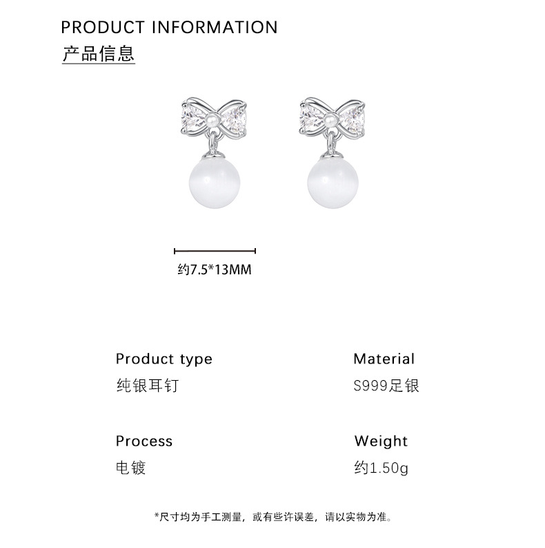 C廠 韓國韓版白貓眼石蝴蝶結S999純銀耳環 批發 折扣@洽客服 25.11.W3「E5787」
