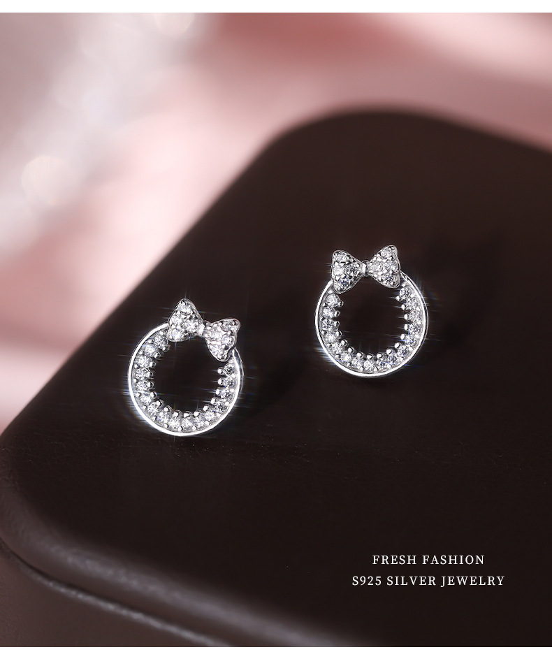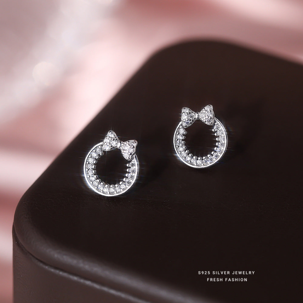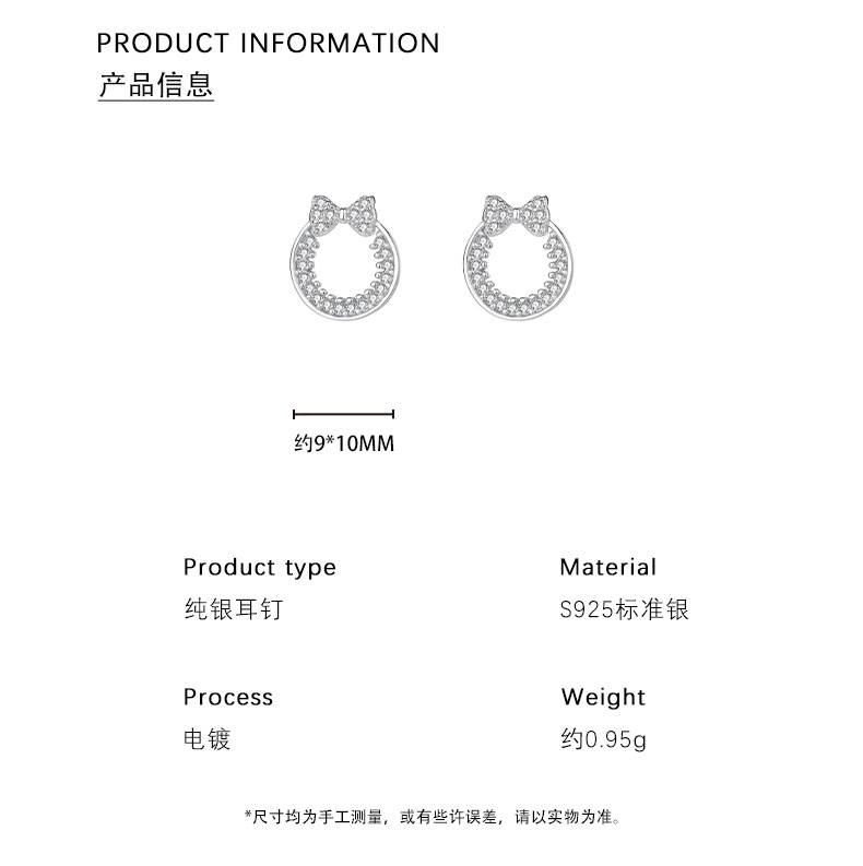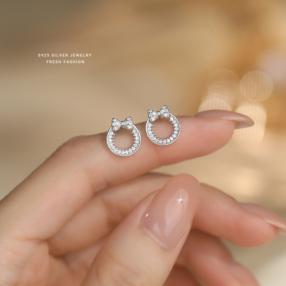 C廠 韓國韓版滿天星蝴蝶結圈S925純銀耳環 批發 折扣@洽客服 25.12.W1「E5824」