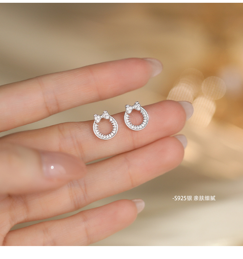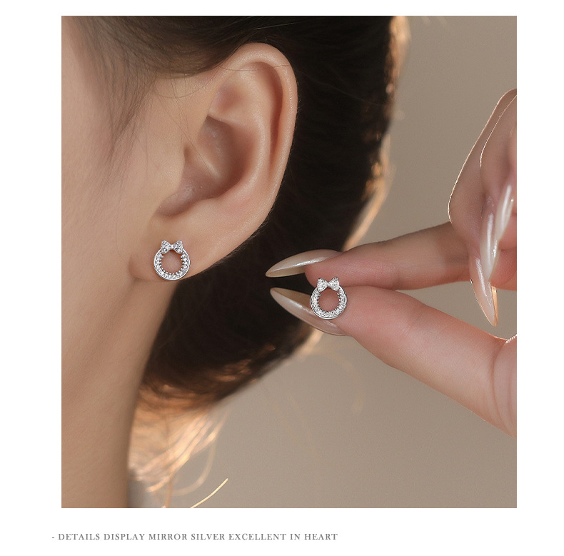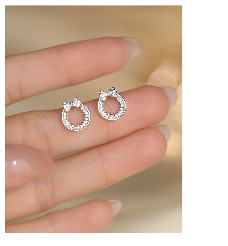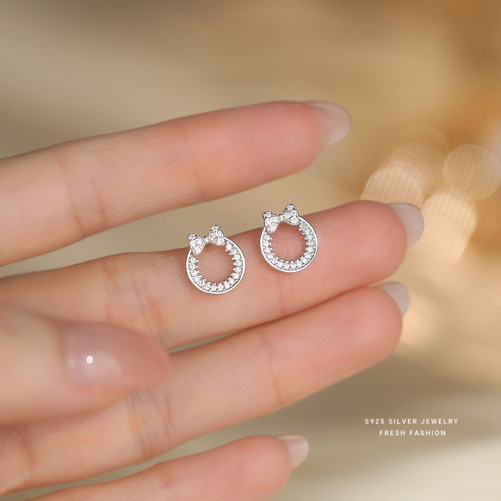 C廠 韓國韓版滿天星蝴蝶結圈S925純銀耳環 批發 折扣@洽客服 25.12.W1「E5824」