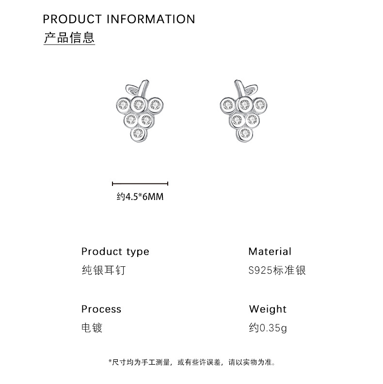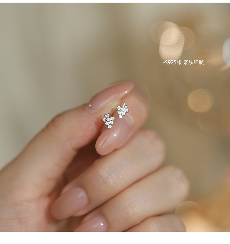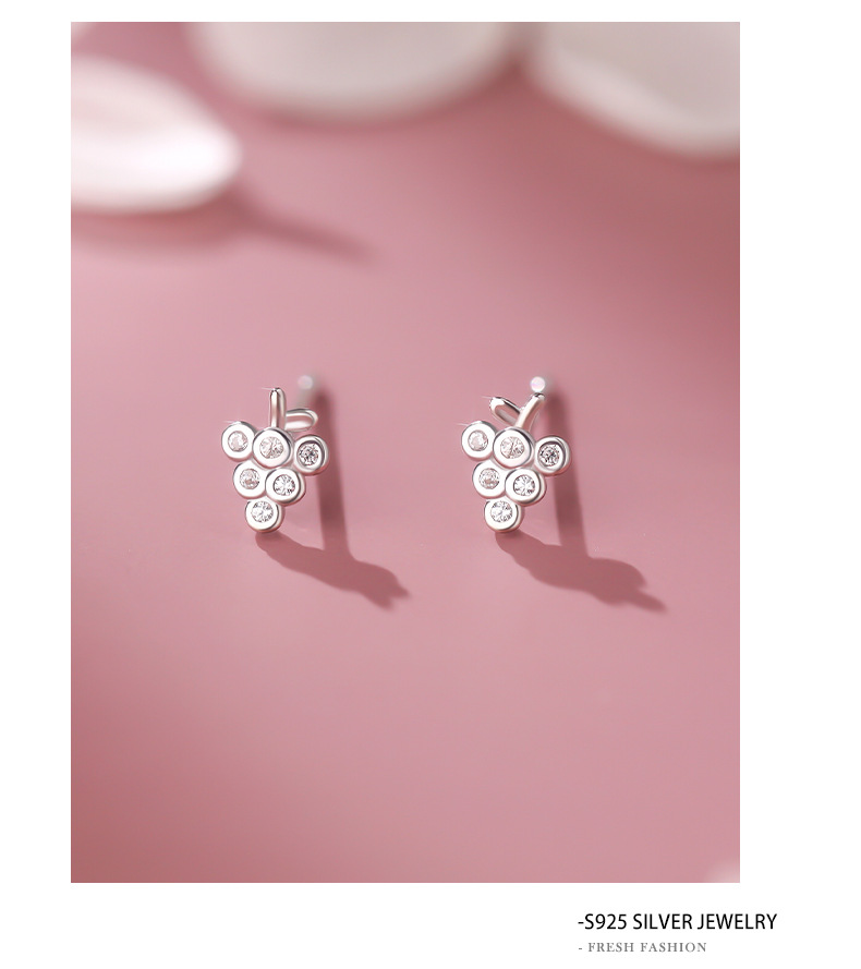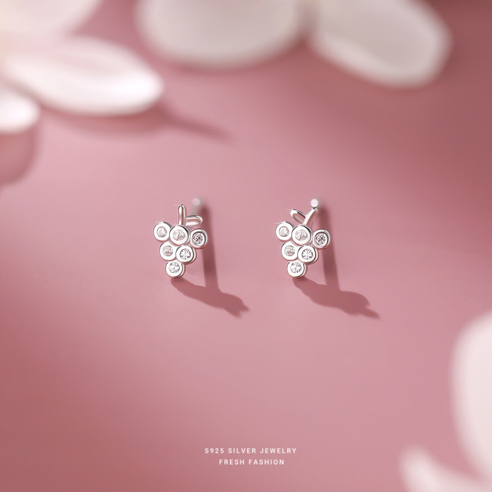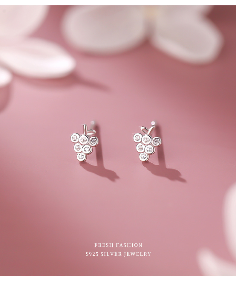 C廠 韓國韓版微鑲葡萄S925純銀耳環 批發 折扣@洽客服 25.12.W1「E5842」