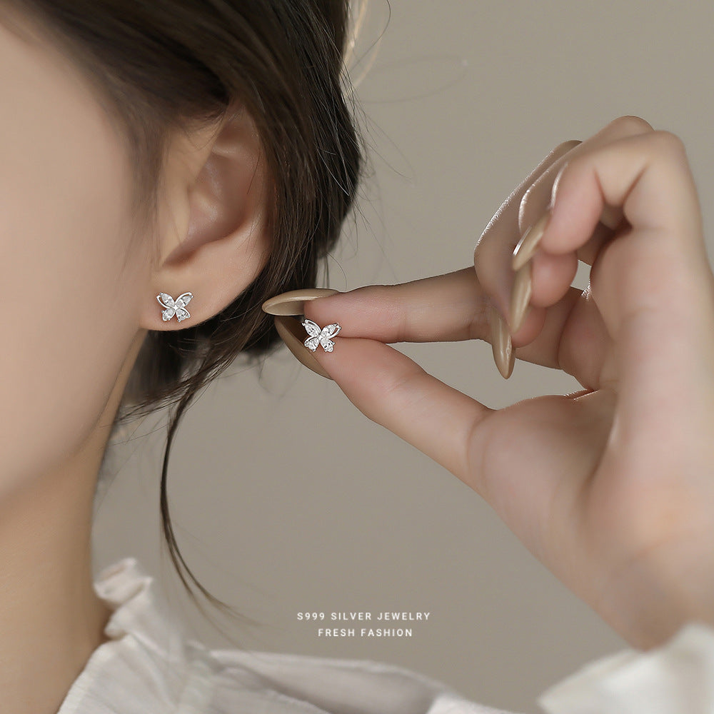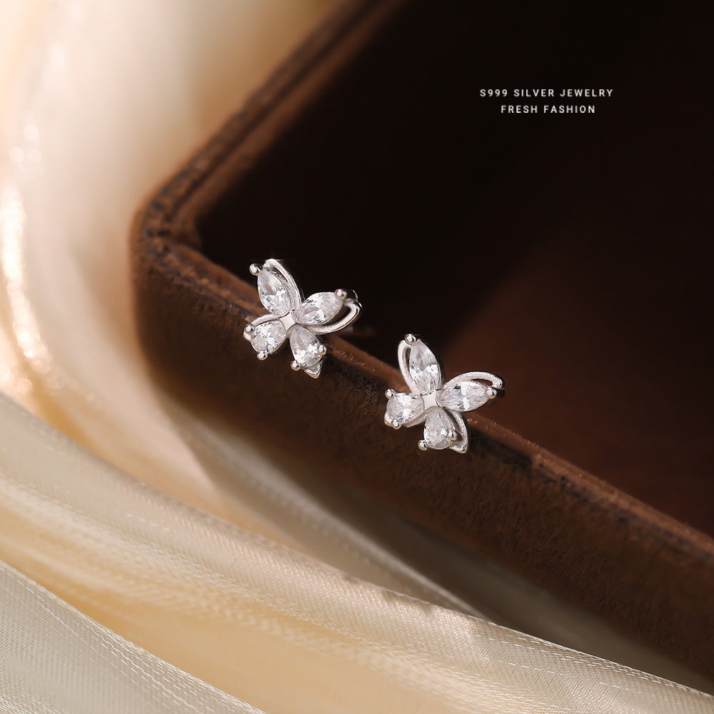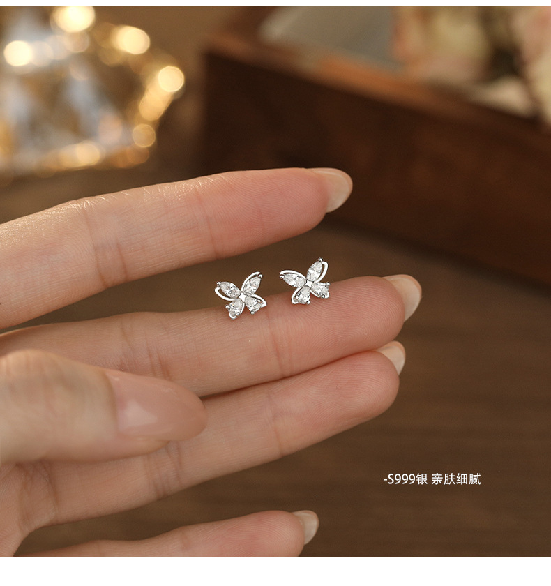 C廠 韓國韓版鏤空鋯石蝴蝶 S999純銀耳環 批發 折扣@洽客服 25.12. W2「E5872」