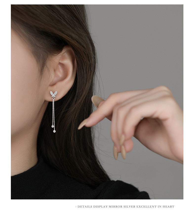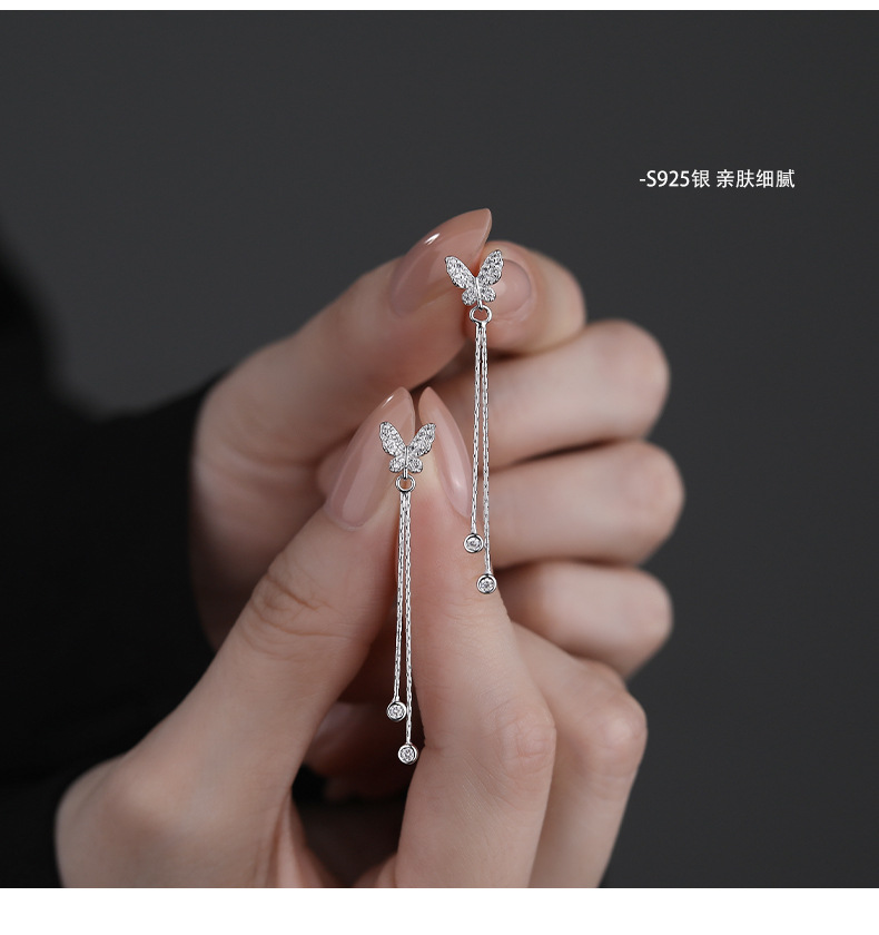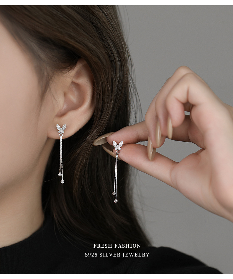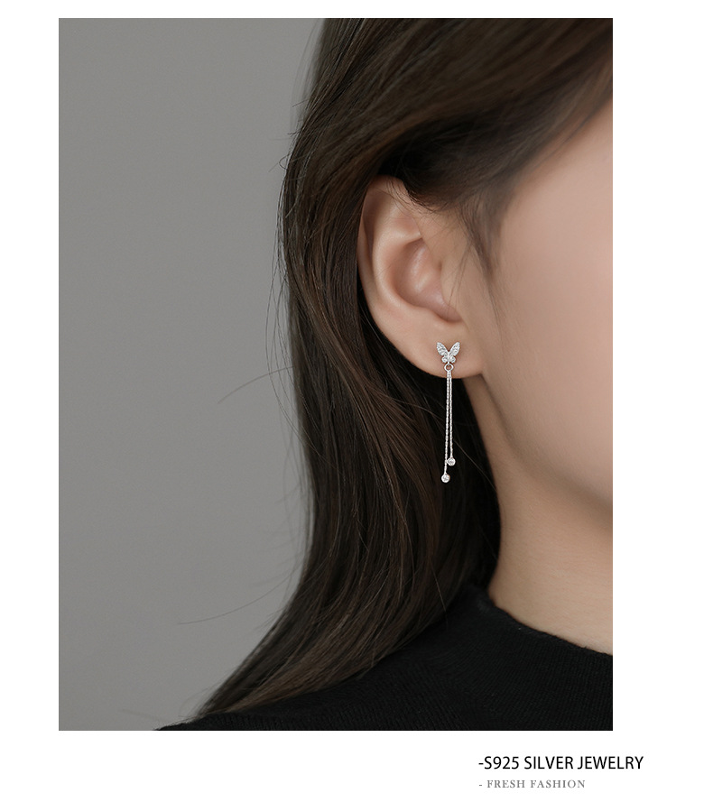C廠 韓國韓版長流蘇蝴蝶S925純銀耳環 批發 折扣@洽客服 25.12.W3「E5879」