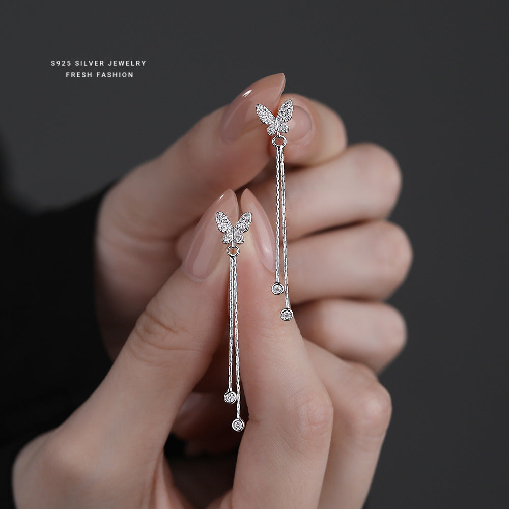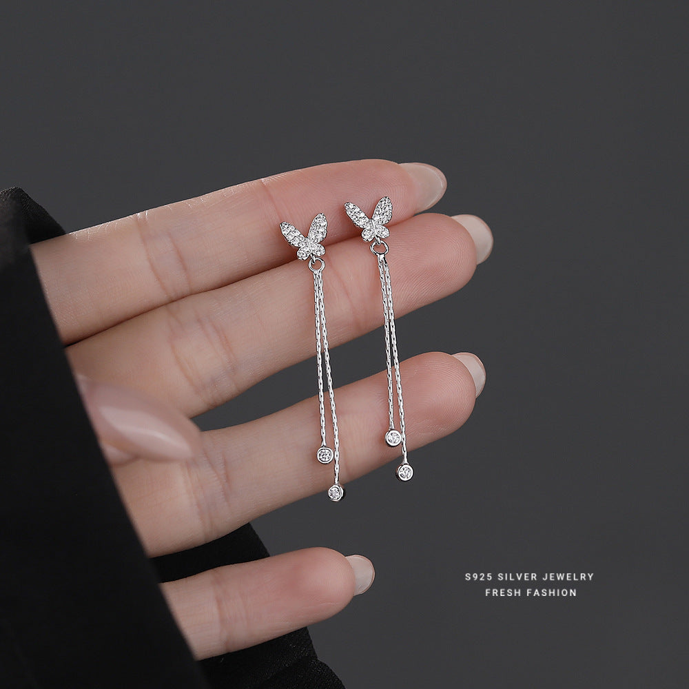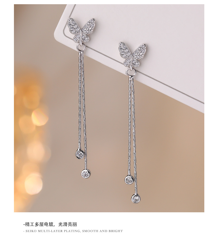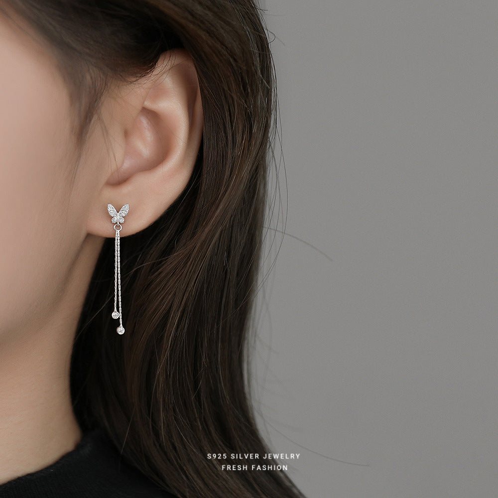 C廠 韓國韓版長流蘇蝴蝶S925純銀耳環 批發 折扣@洽客服 25.12.W3「E5879」