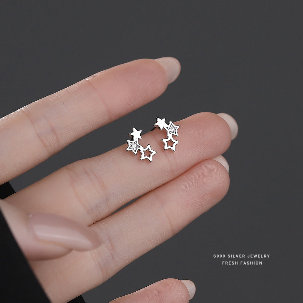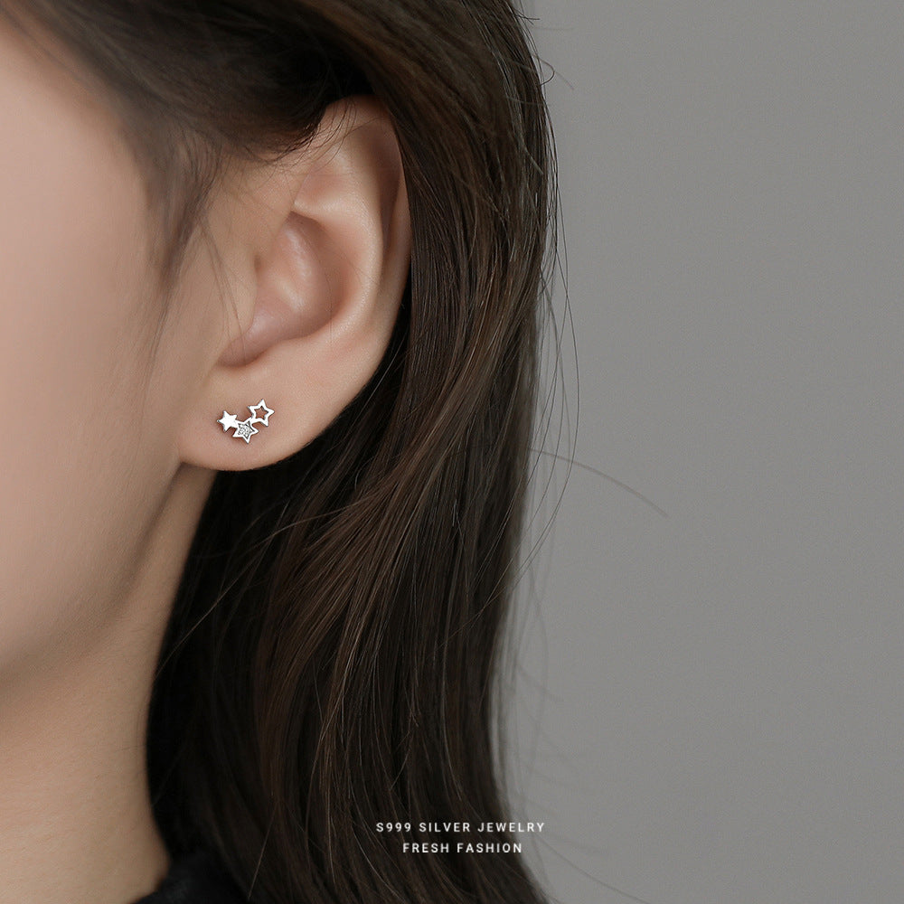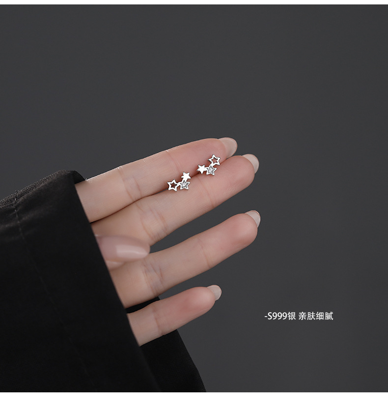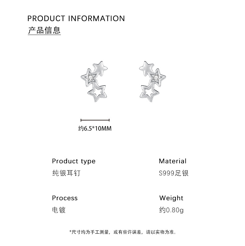 C廠 韓國韓版鏤空五角星S999純銀耳環 批發 折扣@洽客服 25.12.W3「E5880」