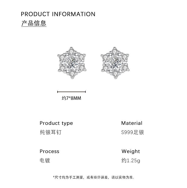 C廠 韓國韓版精緻雪花S999純銀耳環 批發 折扣@洽客服 25.12.W3「E5881」