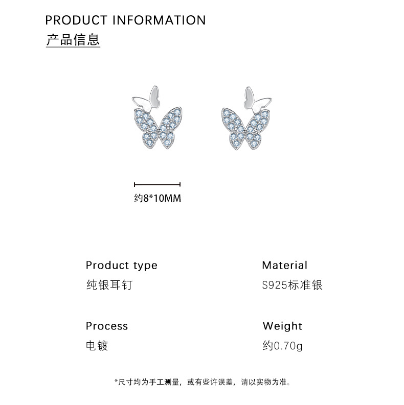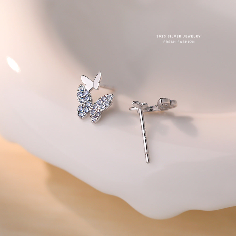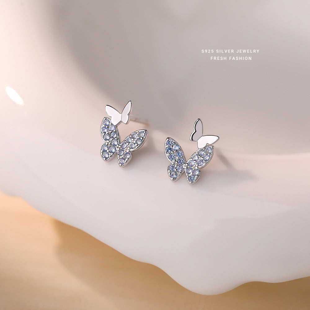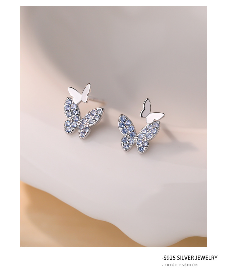 C廠 韓國韓版淺藍尖晶蝴蝶S925純銀耳環 批發 折扣@洽客服 25.12.W3「E5883」