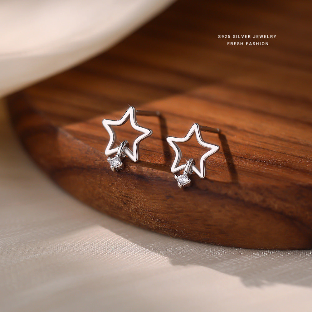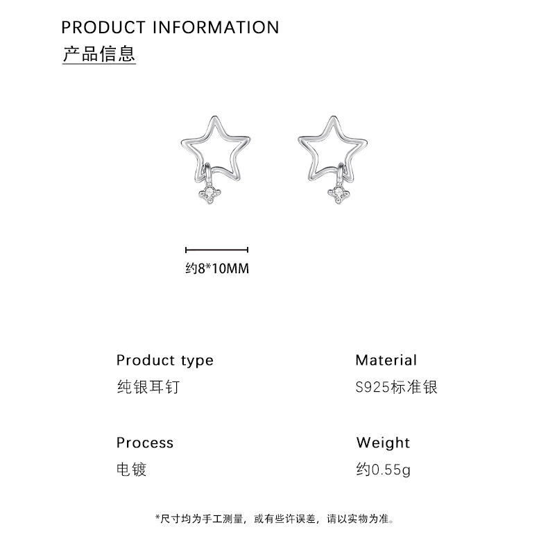 C廠 韓國韓版鏤空五角星S925純銀耳環 批發 折扣@洽客服 25.12.W3「E5885」