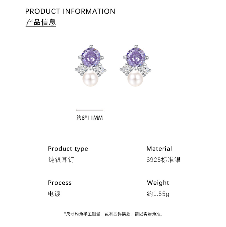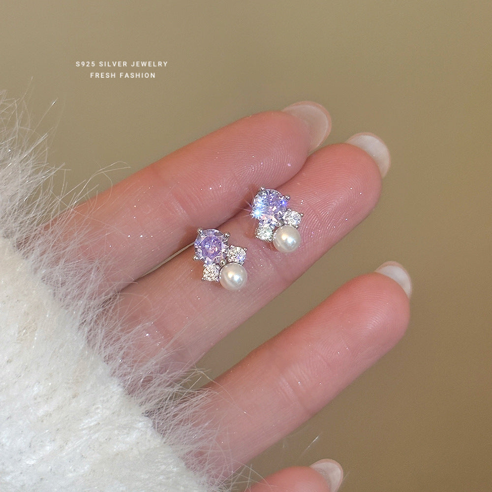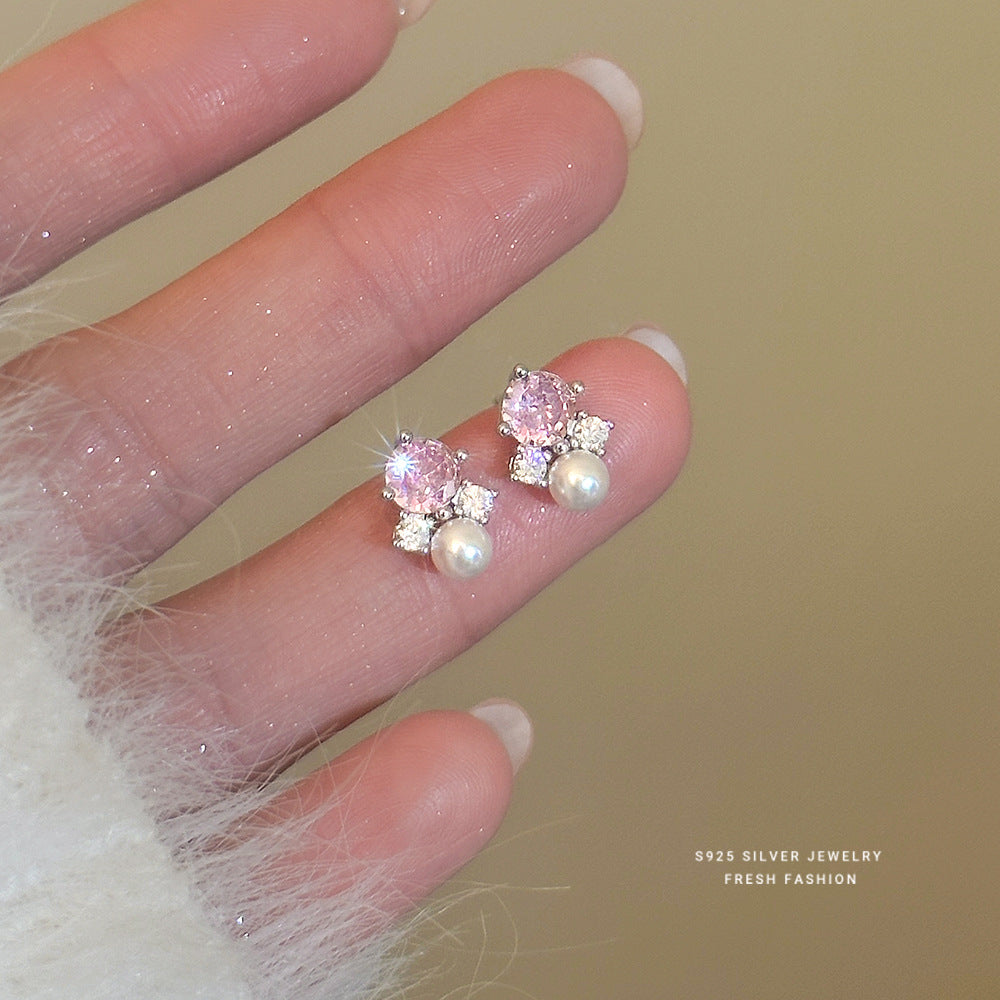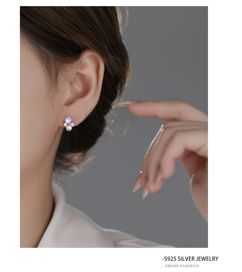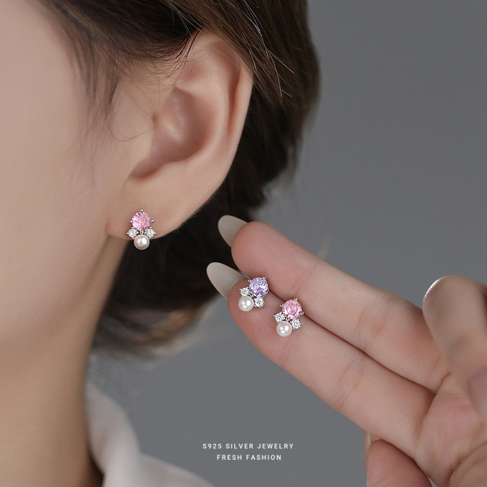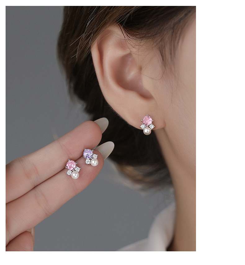 C廠 韓國韓版彩色鋯石珍珠S925純銀耳環 批發 折扣@洽客服 26.01.W1「E5997」