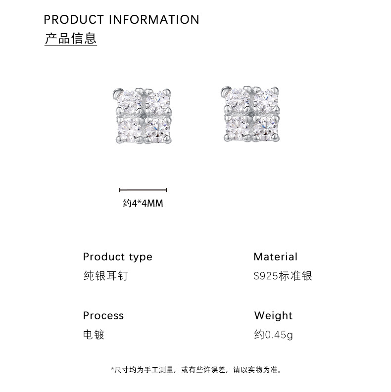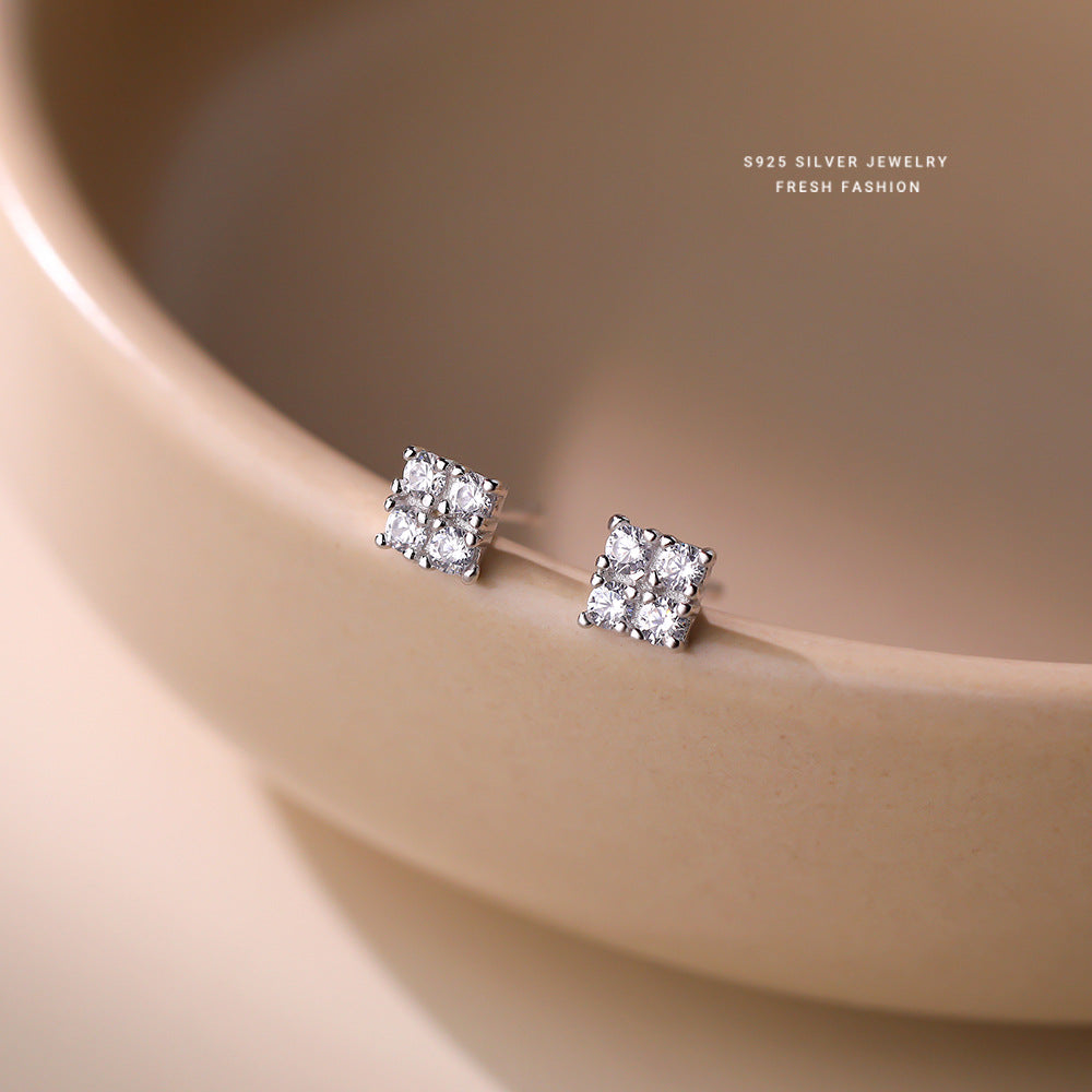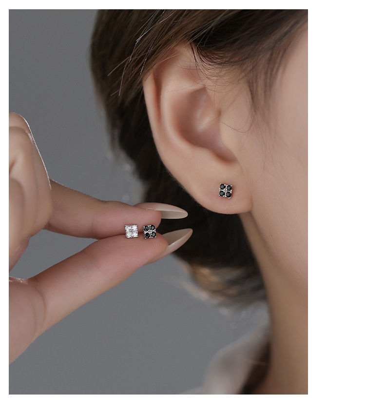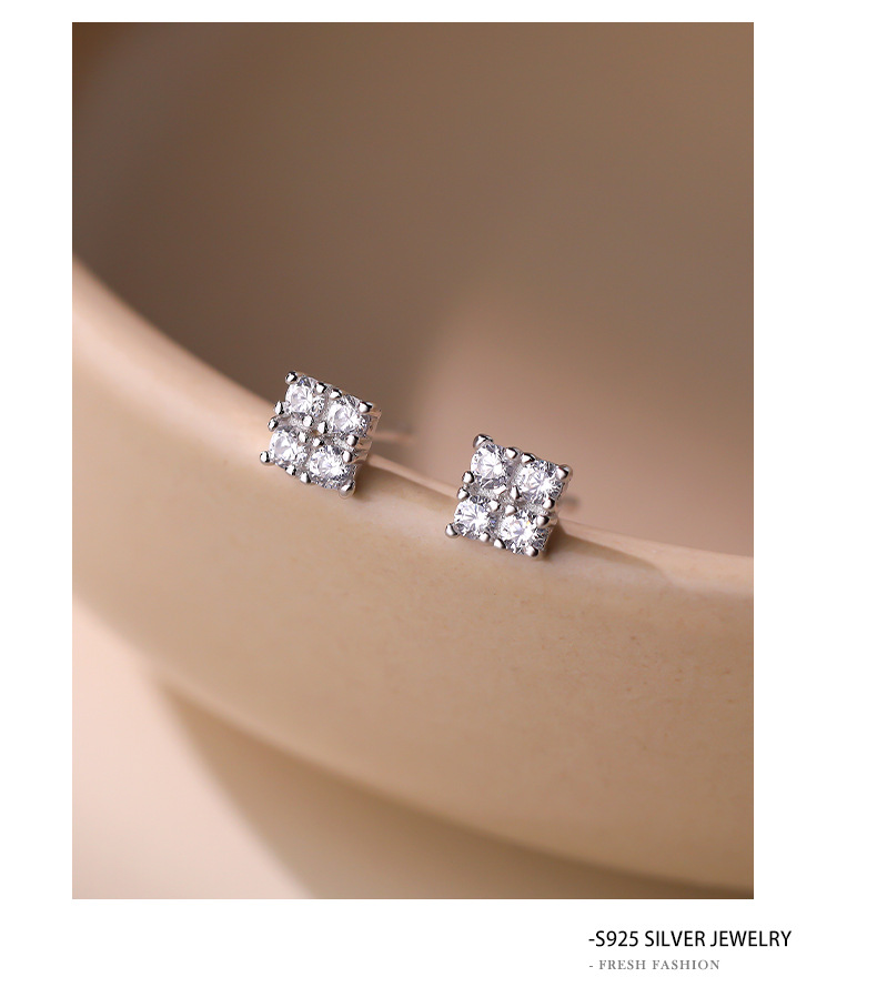 C廠 韓國韓版鋯石方塊S925純銀耳環 批發 折扣@洽客服 26.01.W1「E6000」