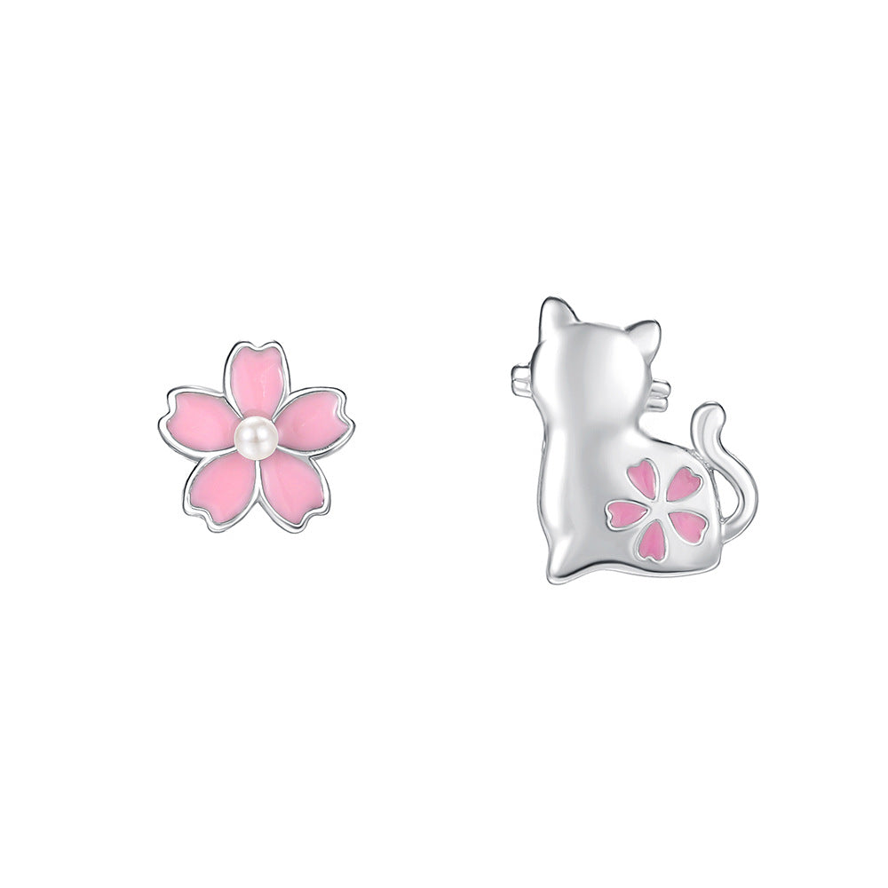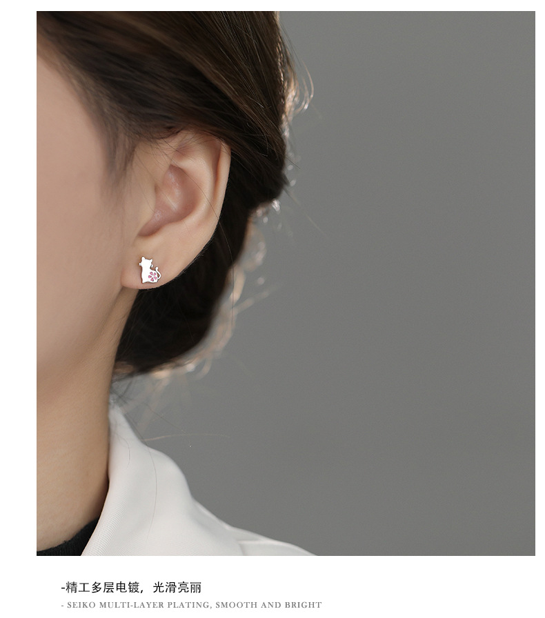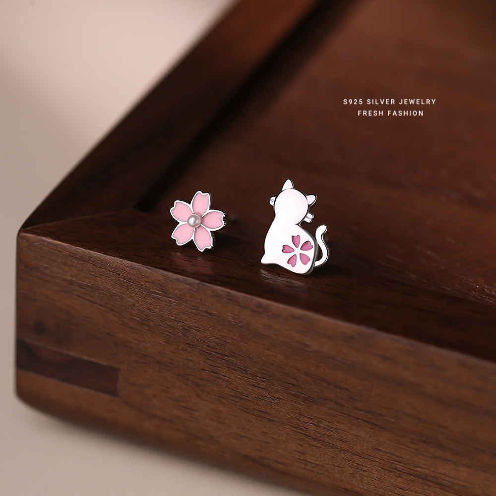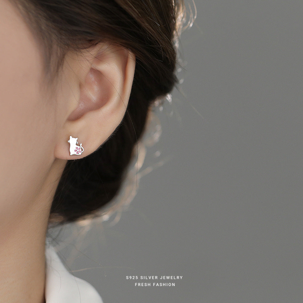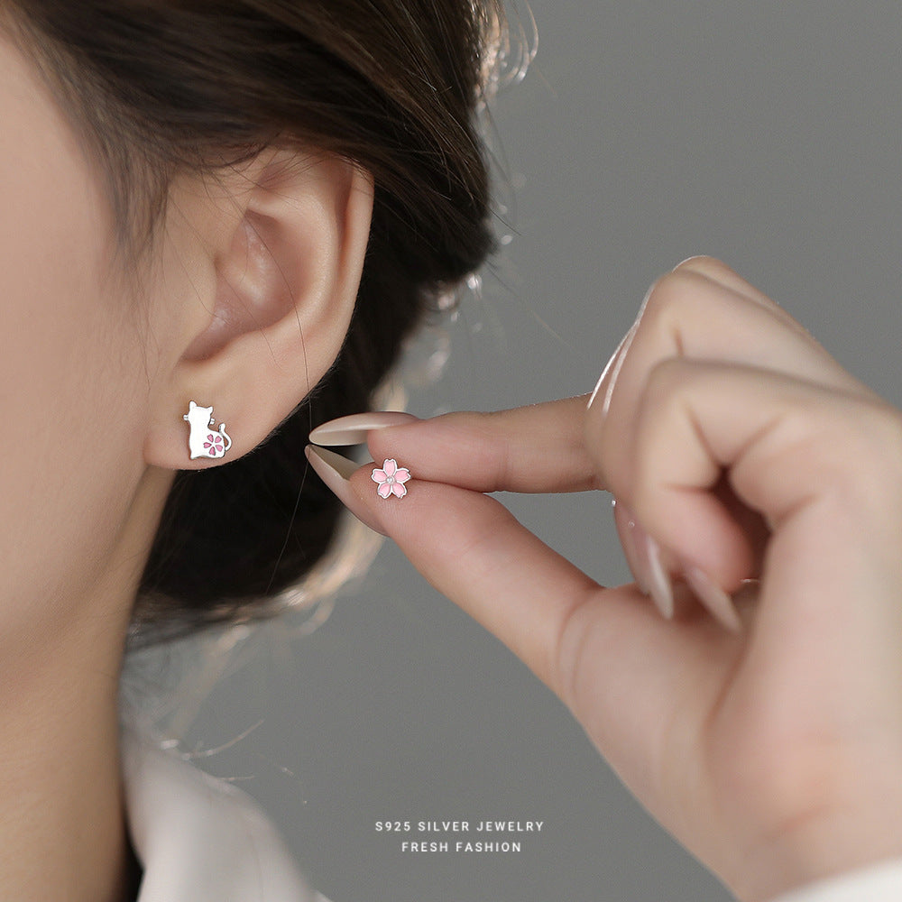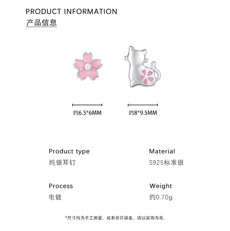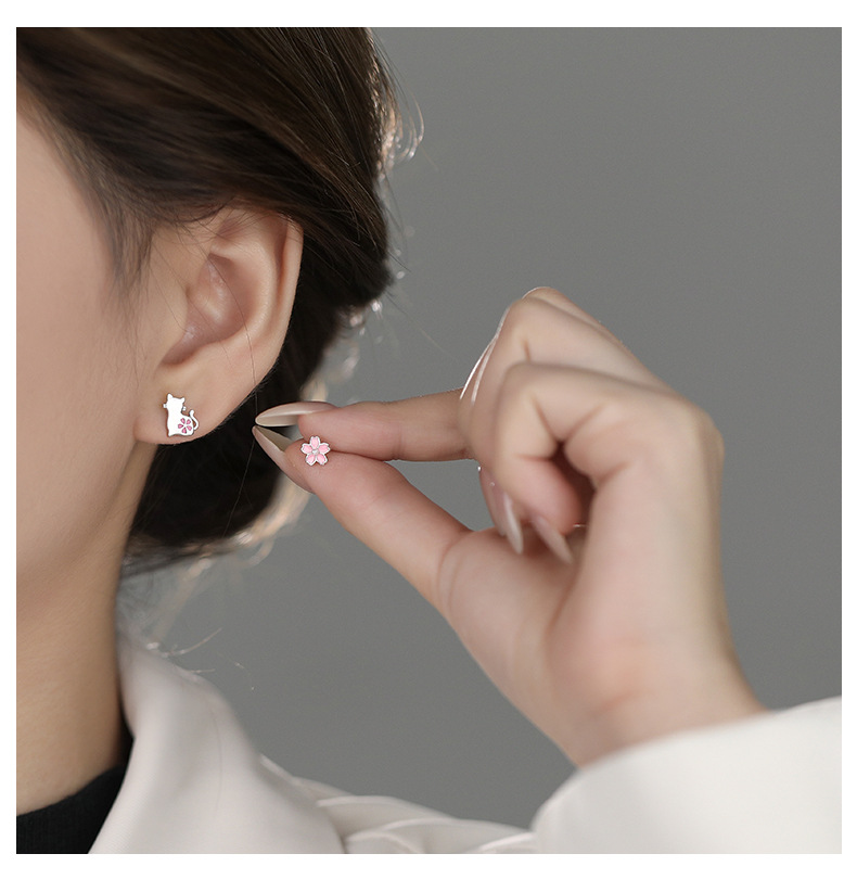 C廠 韓國韓版粉紅小花貓咪S925純銀耳環 批發 折扣@洽客服 26.01.W1「E6033」