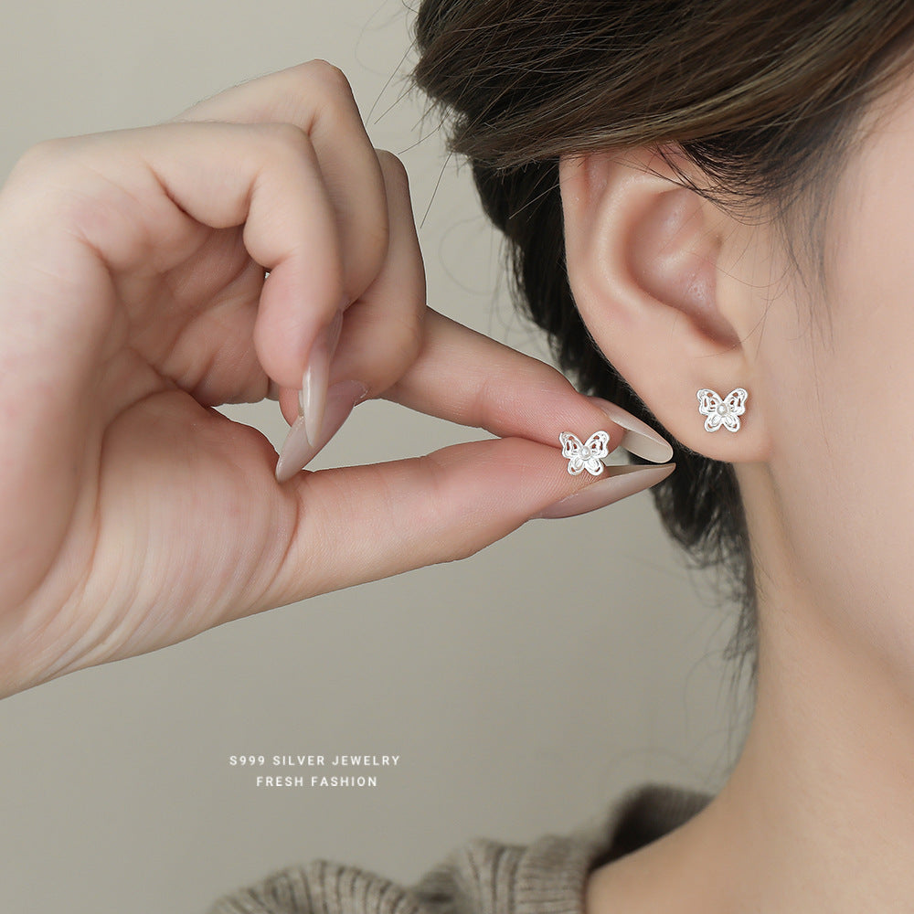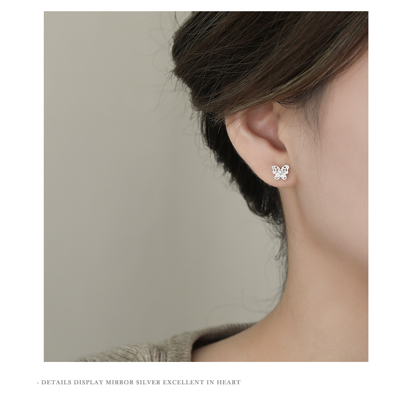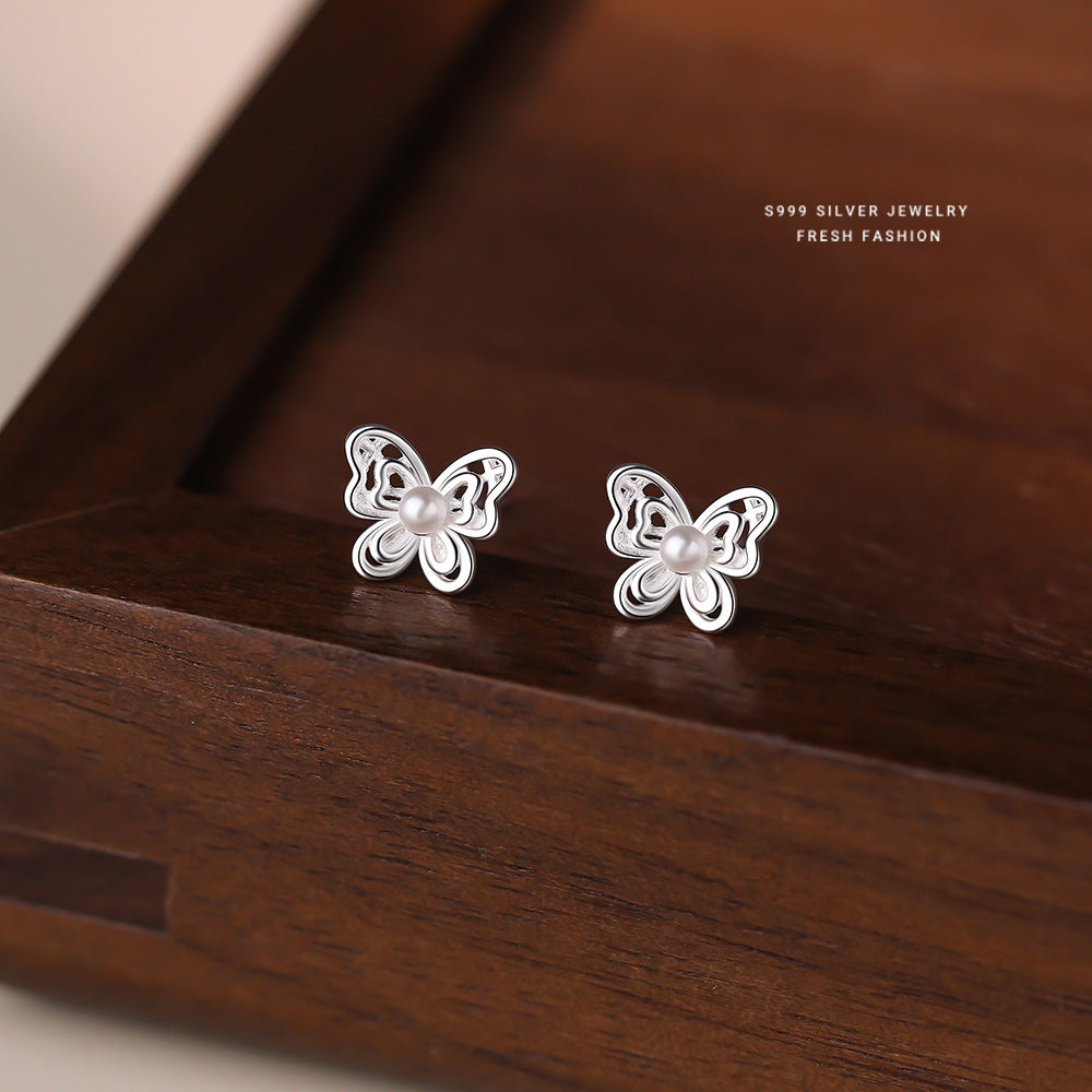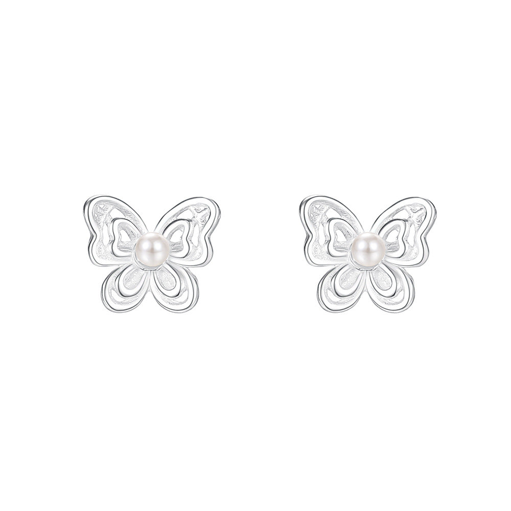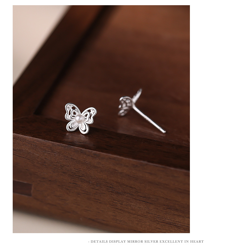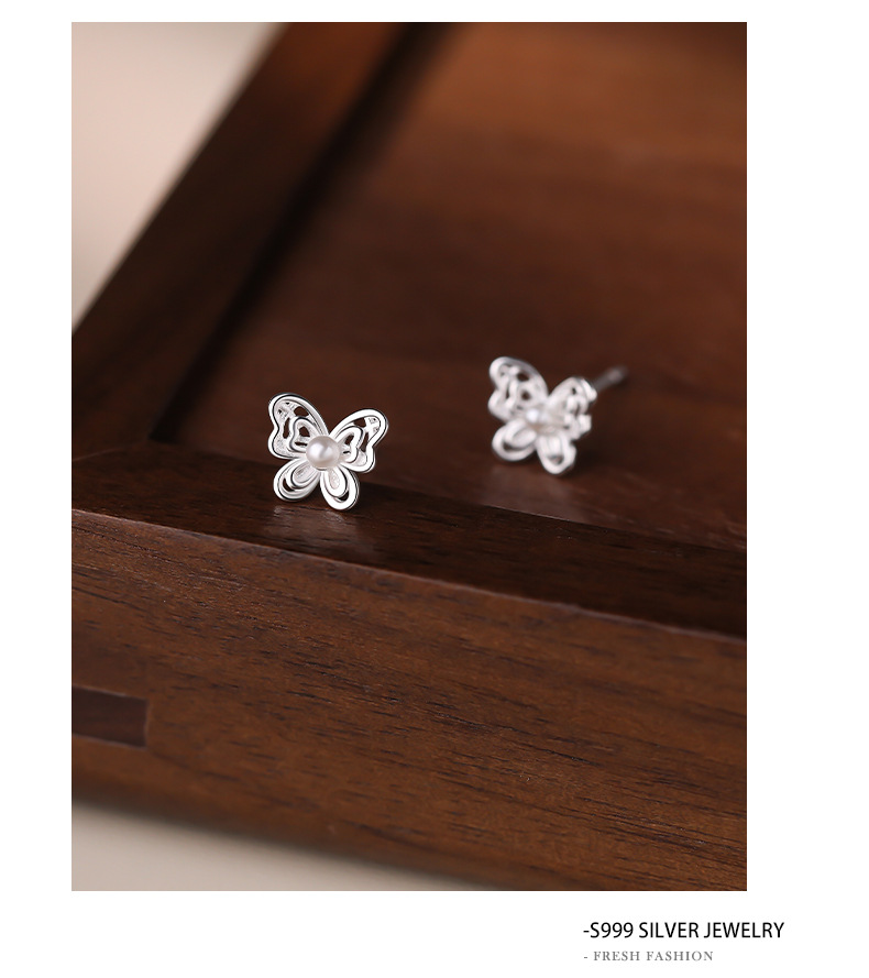 C廠 韓國韓版鏤空仿珍珠蝴蝶S999純銀耳環 批發 折扣@洽客服 26.01.W1「E6045」