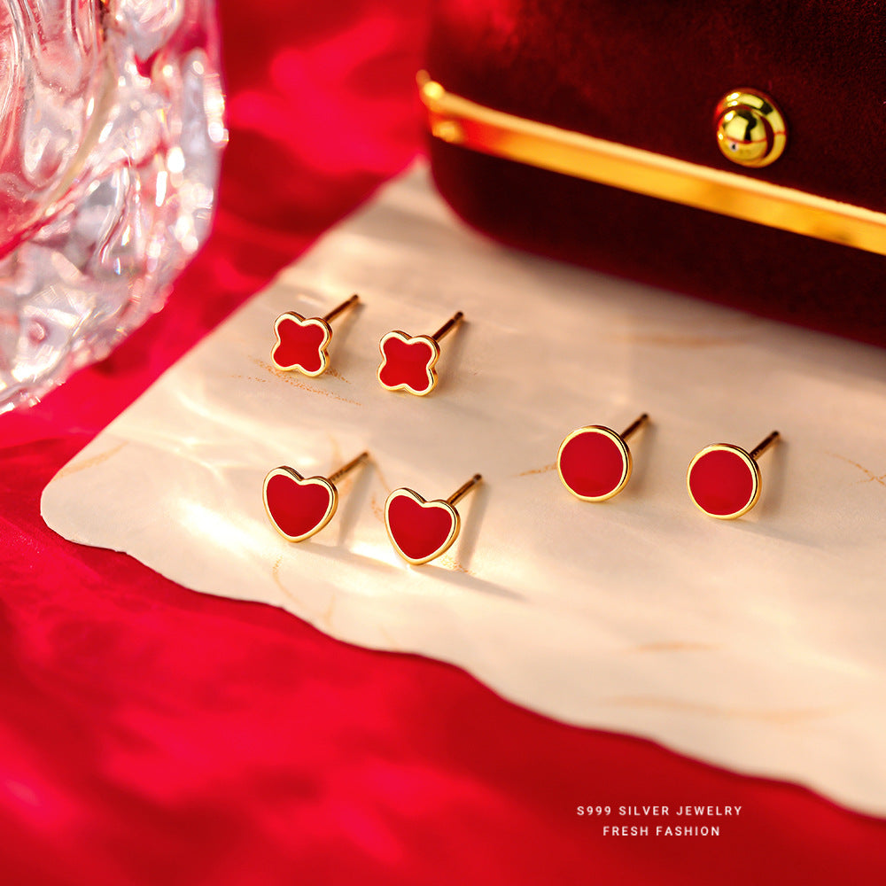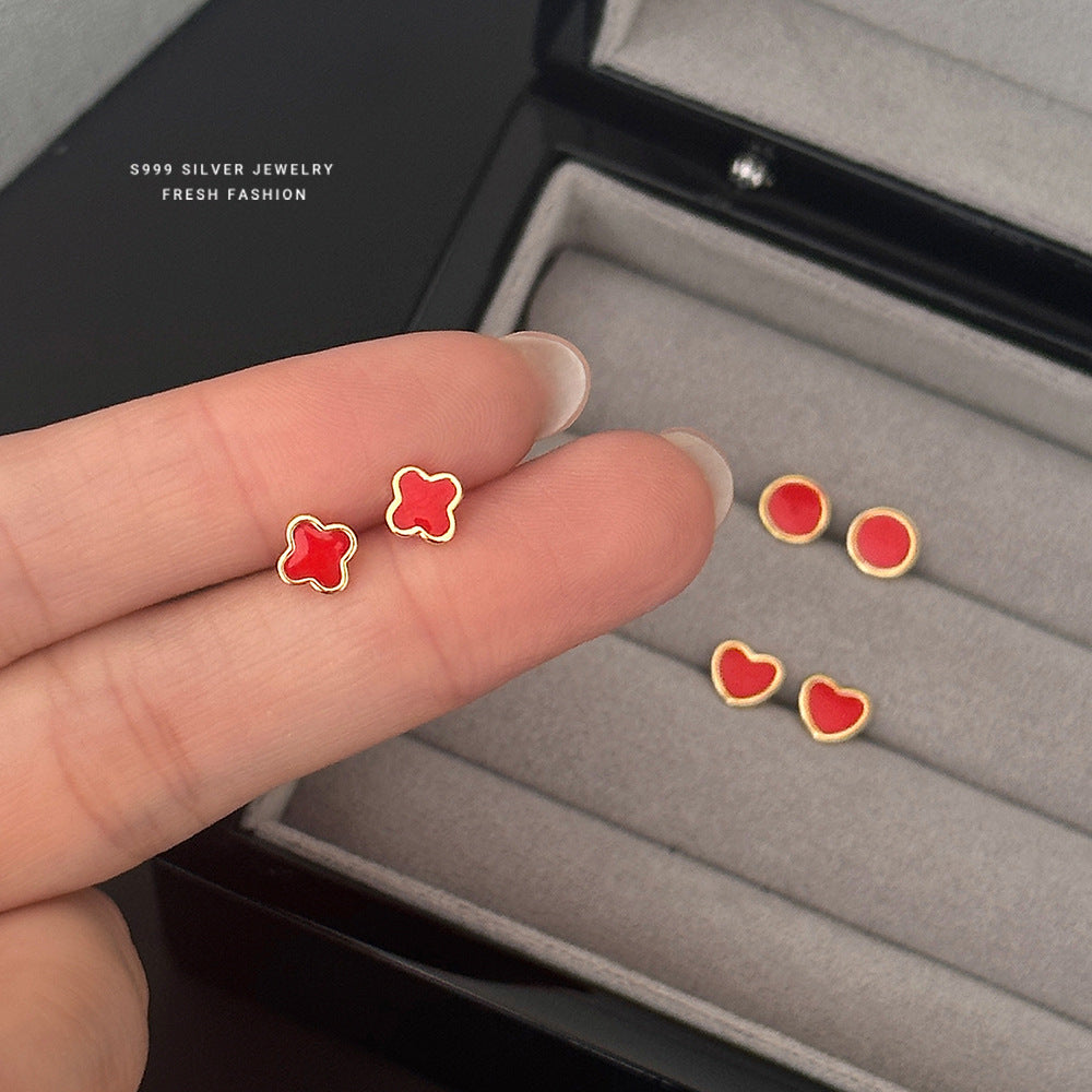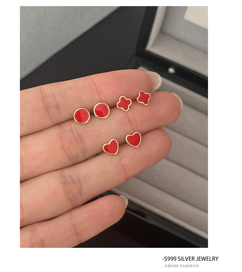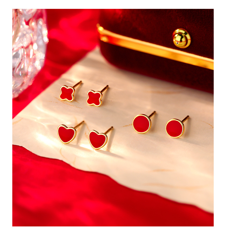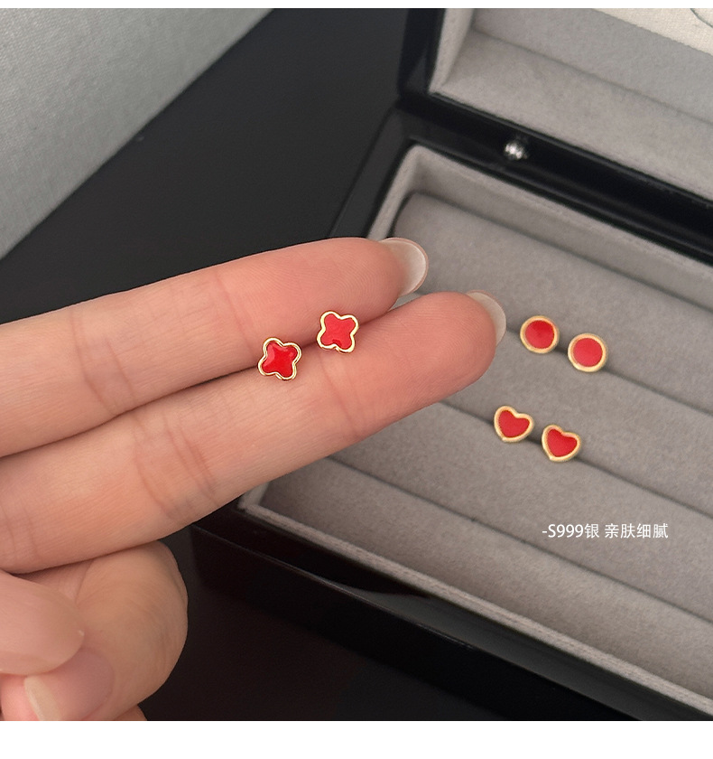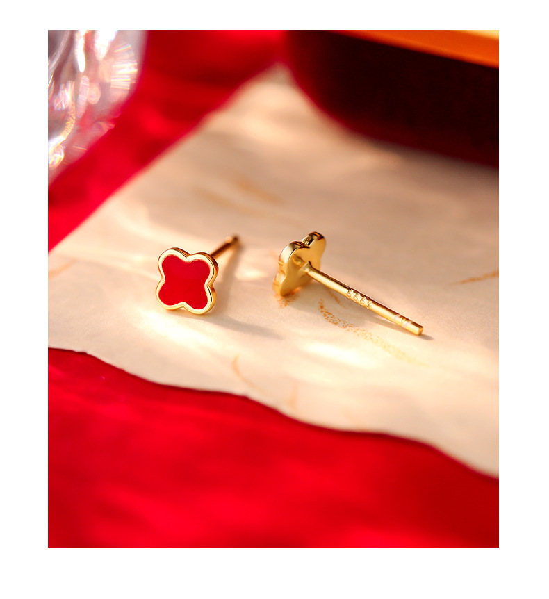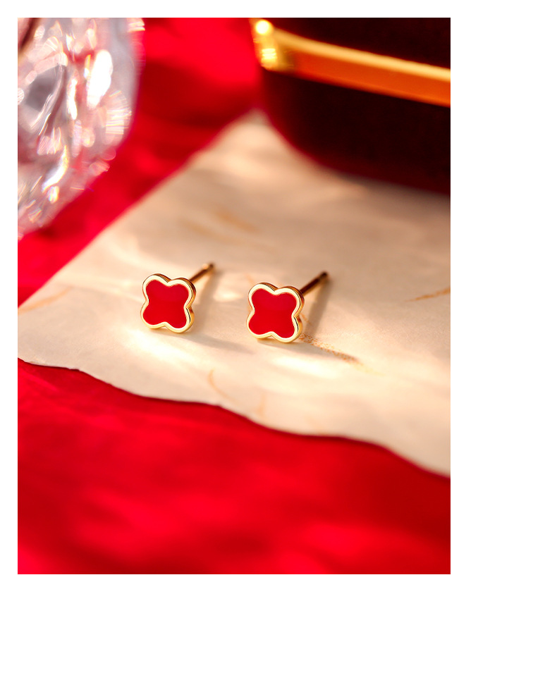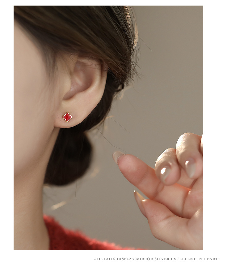 C廠 S999純銀 |紅色四葉草耳環 批發 折扣@洽客服 26.01.W2「E6061 E6062 E6063」