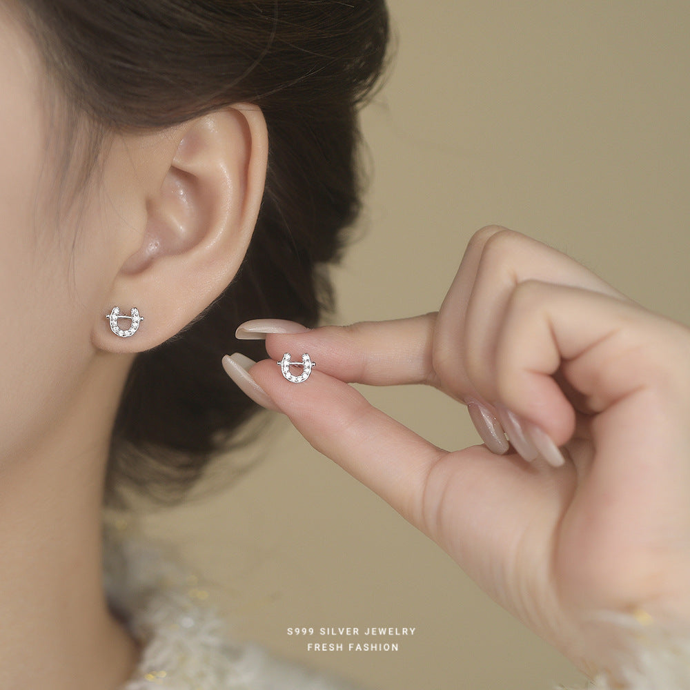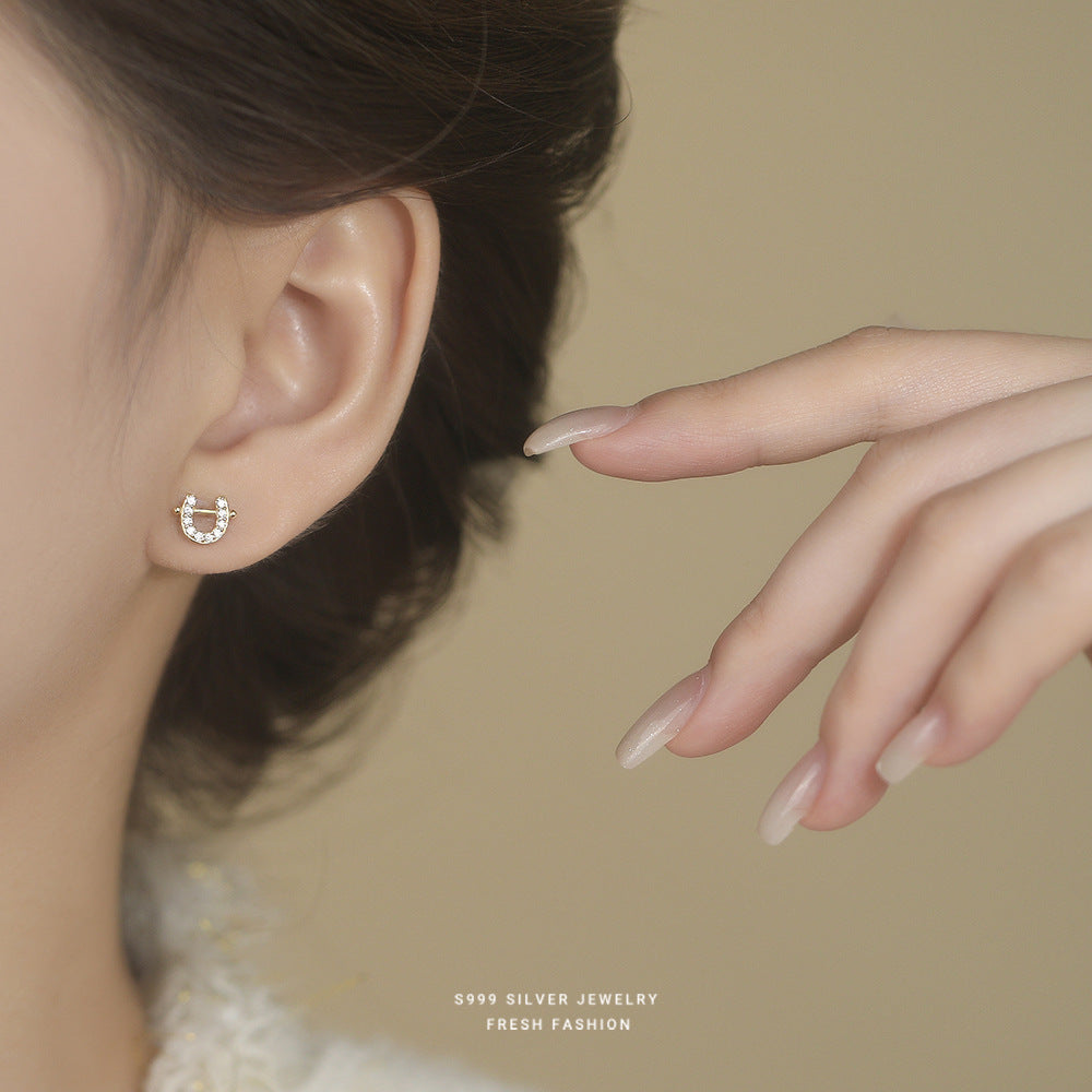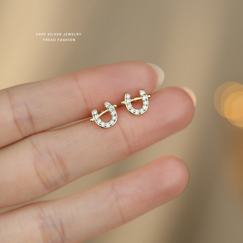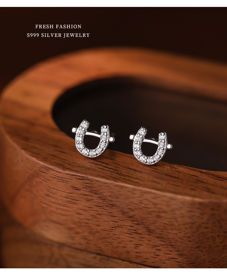 C廠 S999足銀|韓國韓版鑲鑽小馬蹄耳環 批發 折扣@洽客服 26.02.W3「E6186」