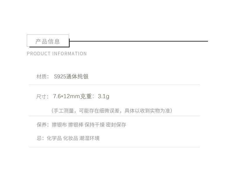 - 因台灣的氣候較為潮濕,若將合金類飾品暴露於空氣中會加速氧化,建議不配戴時將飾品分別收納至夾鏈袋內保存,避免接觸空氣後氧化。