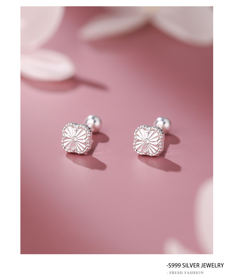 C廠 韓國韓版車花四葉草S999純銀耳環 批發 折扣@洽客服 25.11.26「F6651」