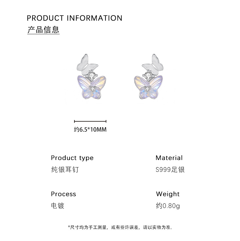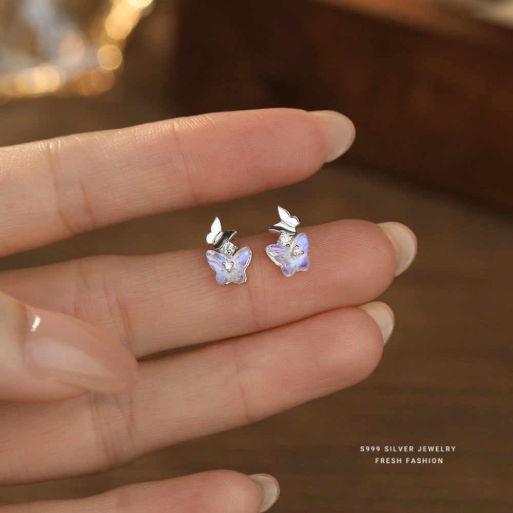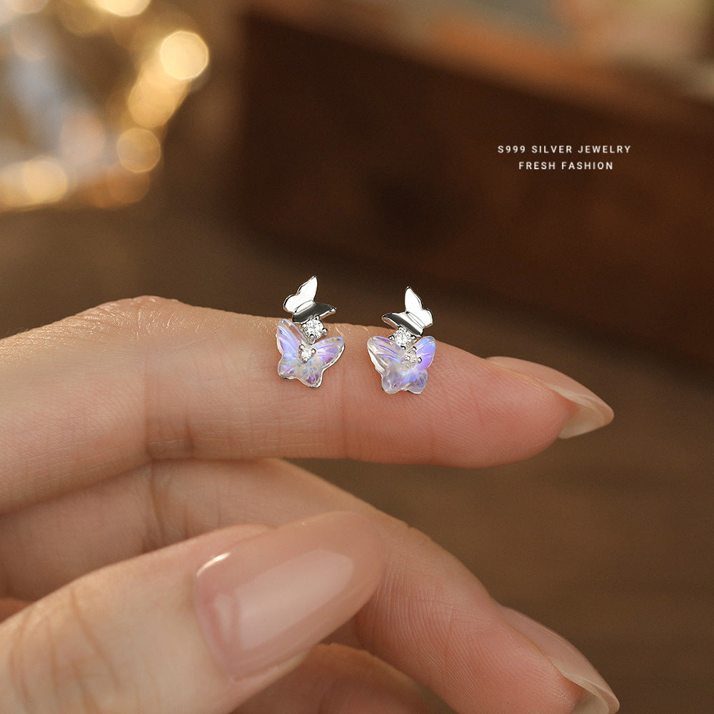 C廠 韓國韓版幻彩琉璃蝴蝶S999純銀耳環 批發 折扣@洽客服 25.12.W3「F6842」