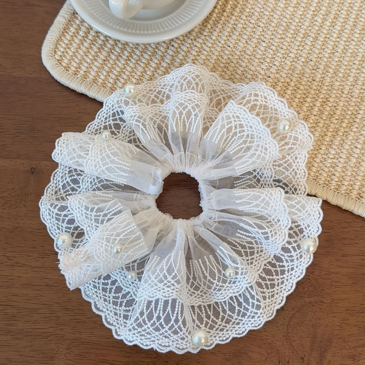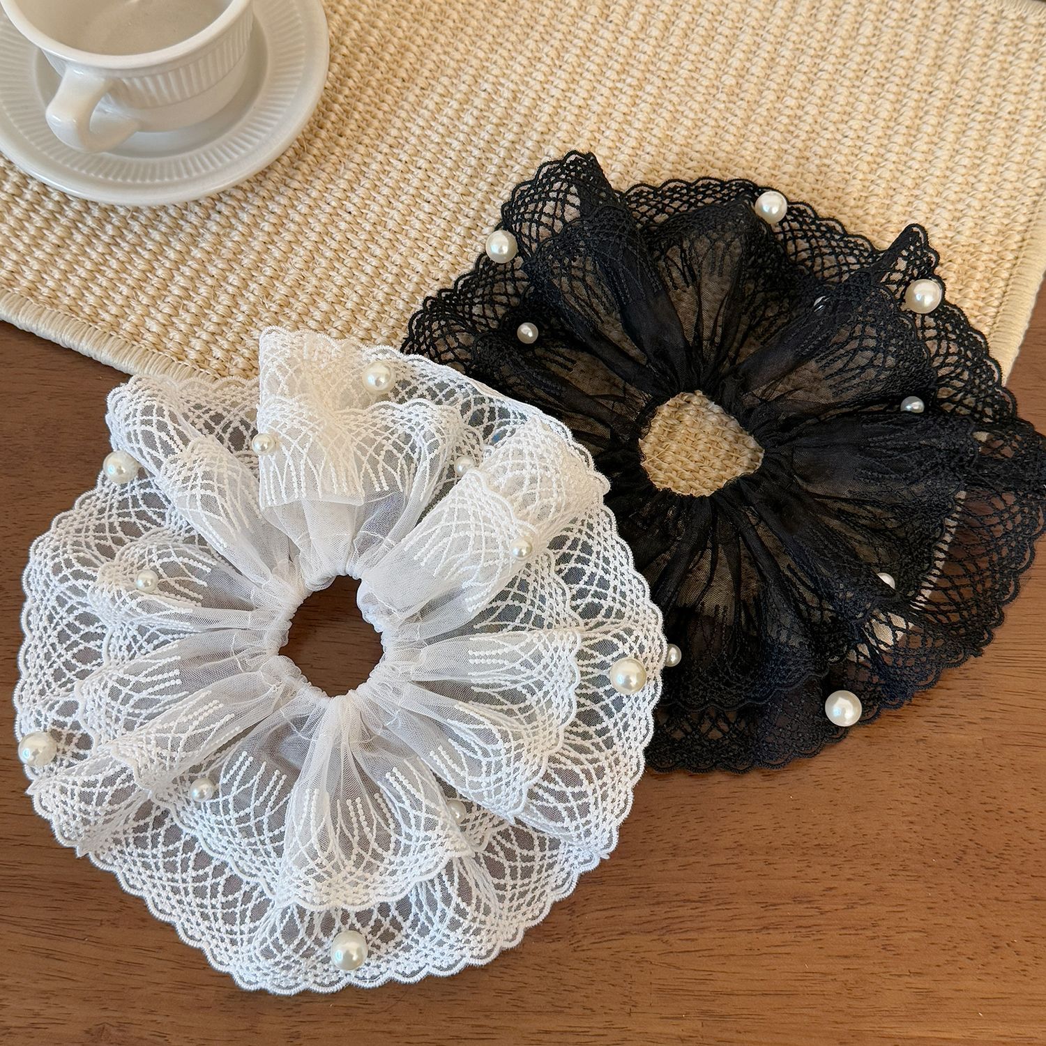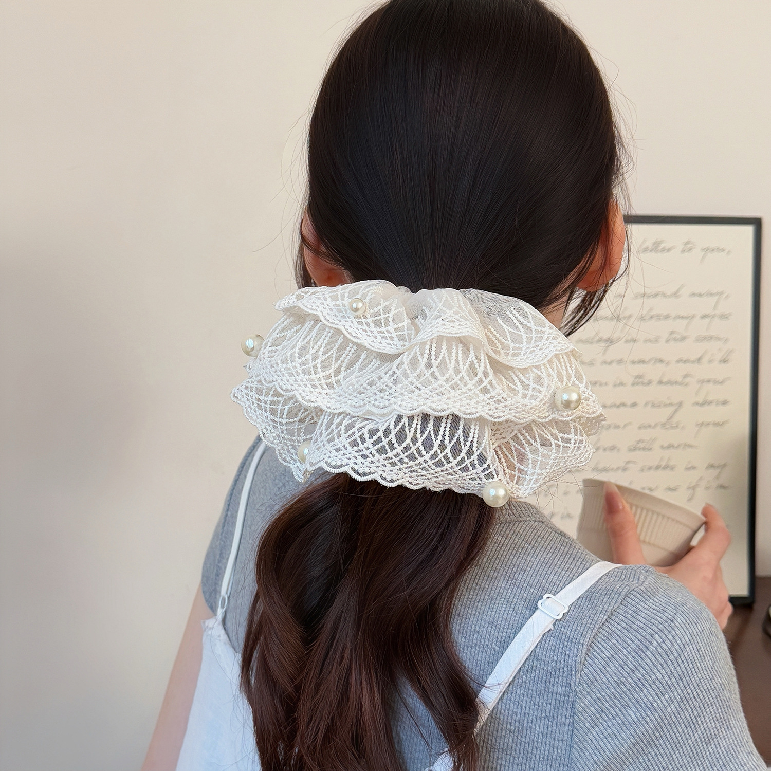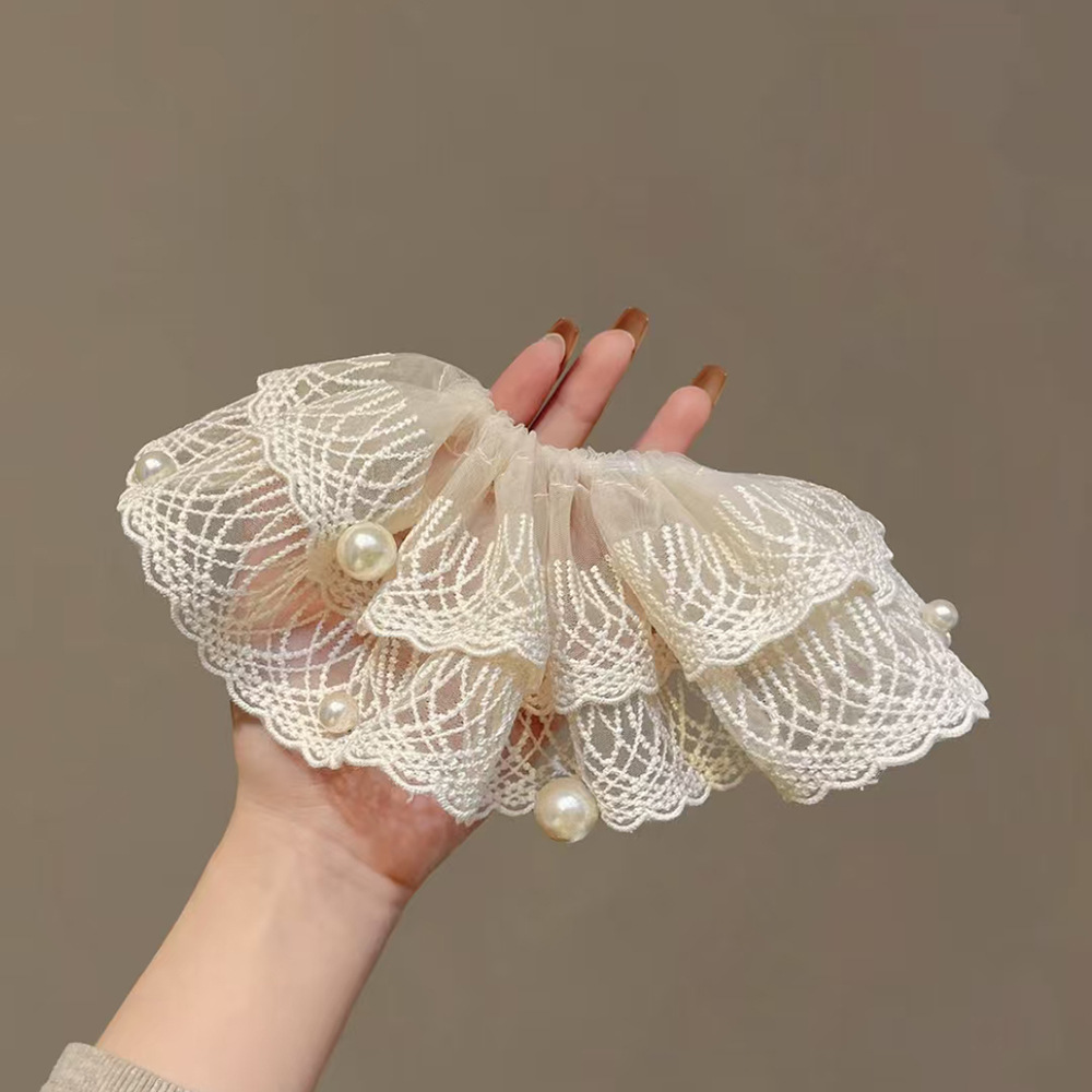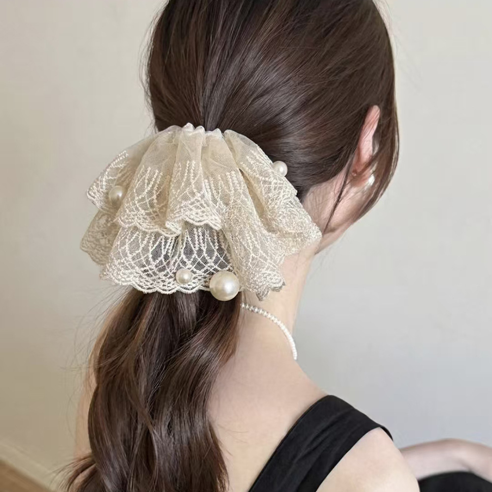 D廠 韓系髮飾高質感米白蕾絲珍珠髮圈髮飾批發 折扣@洽客服 26.04.W4 「FQ-1074」
