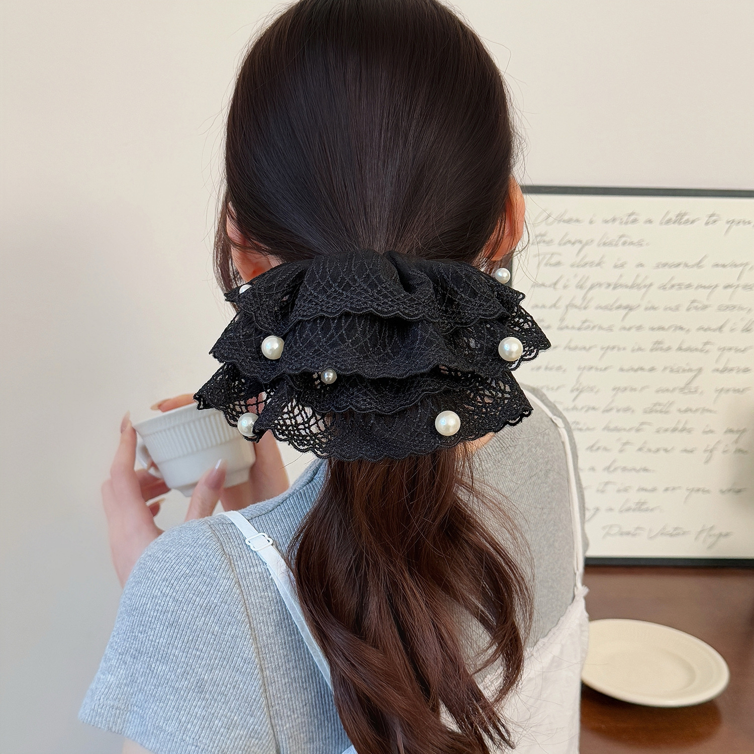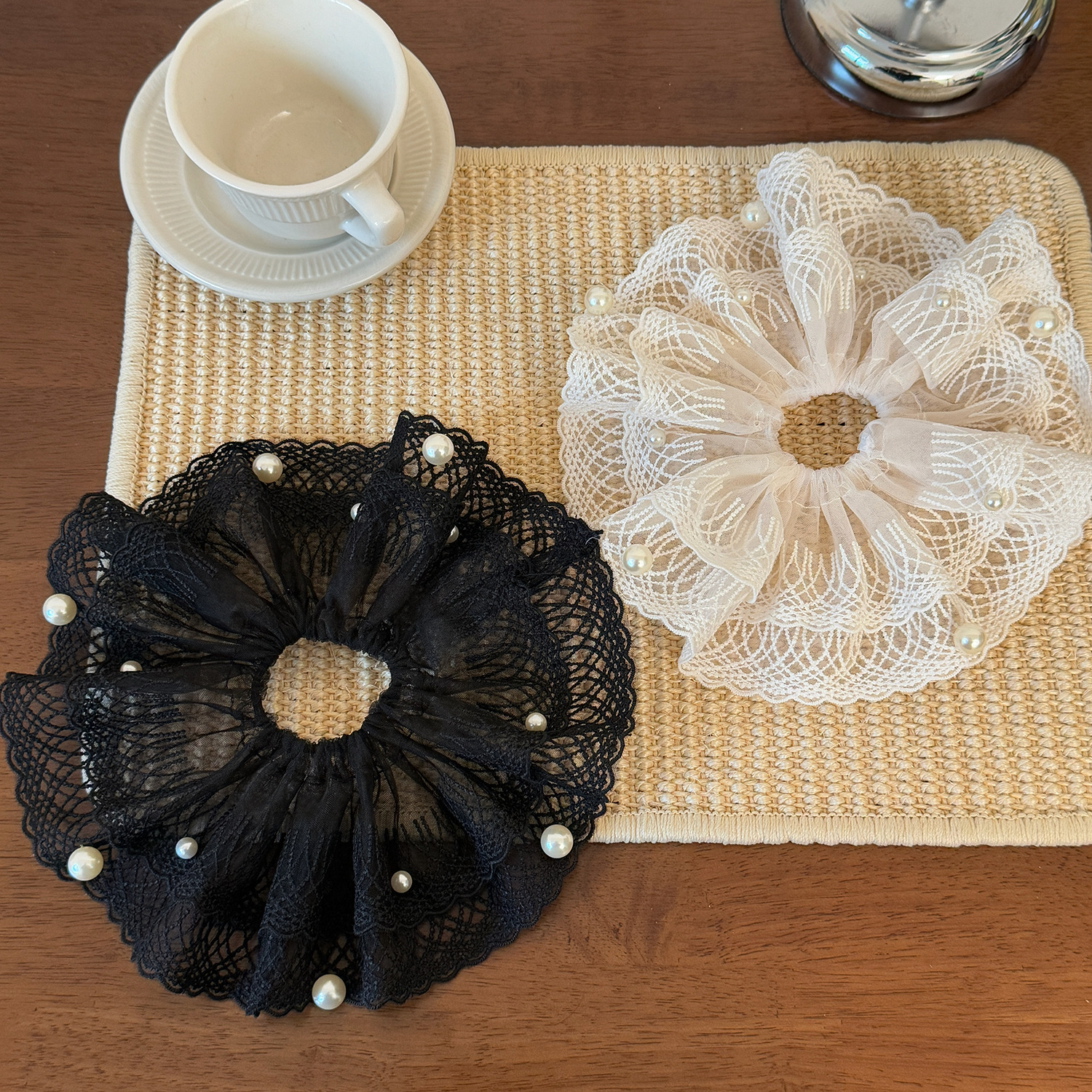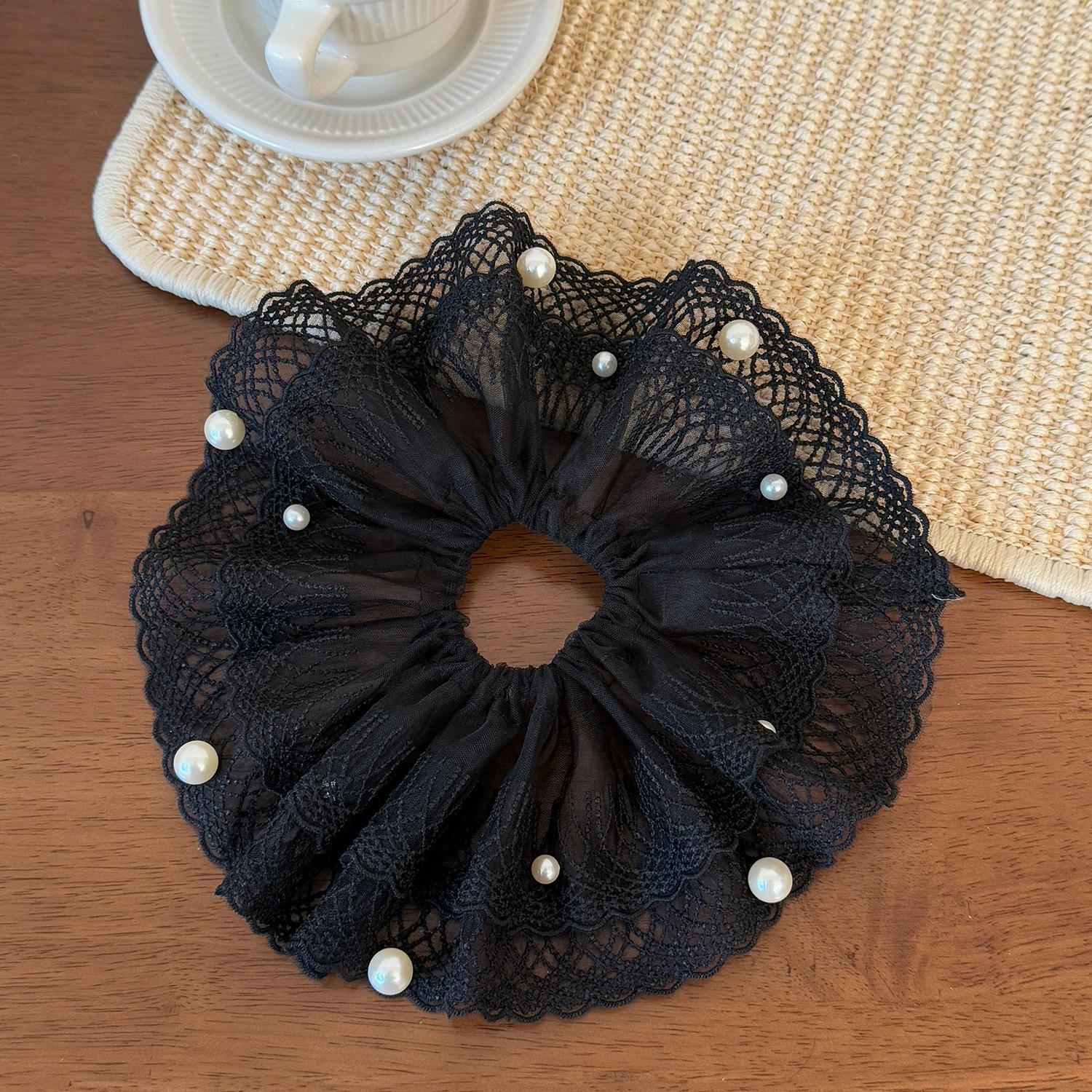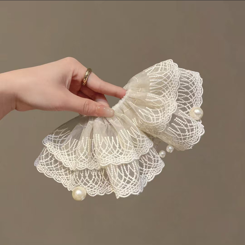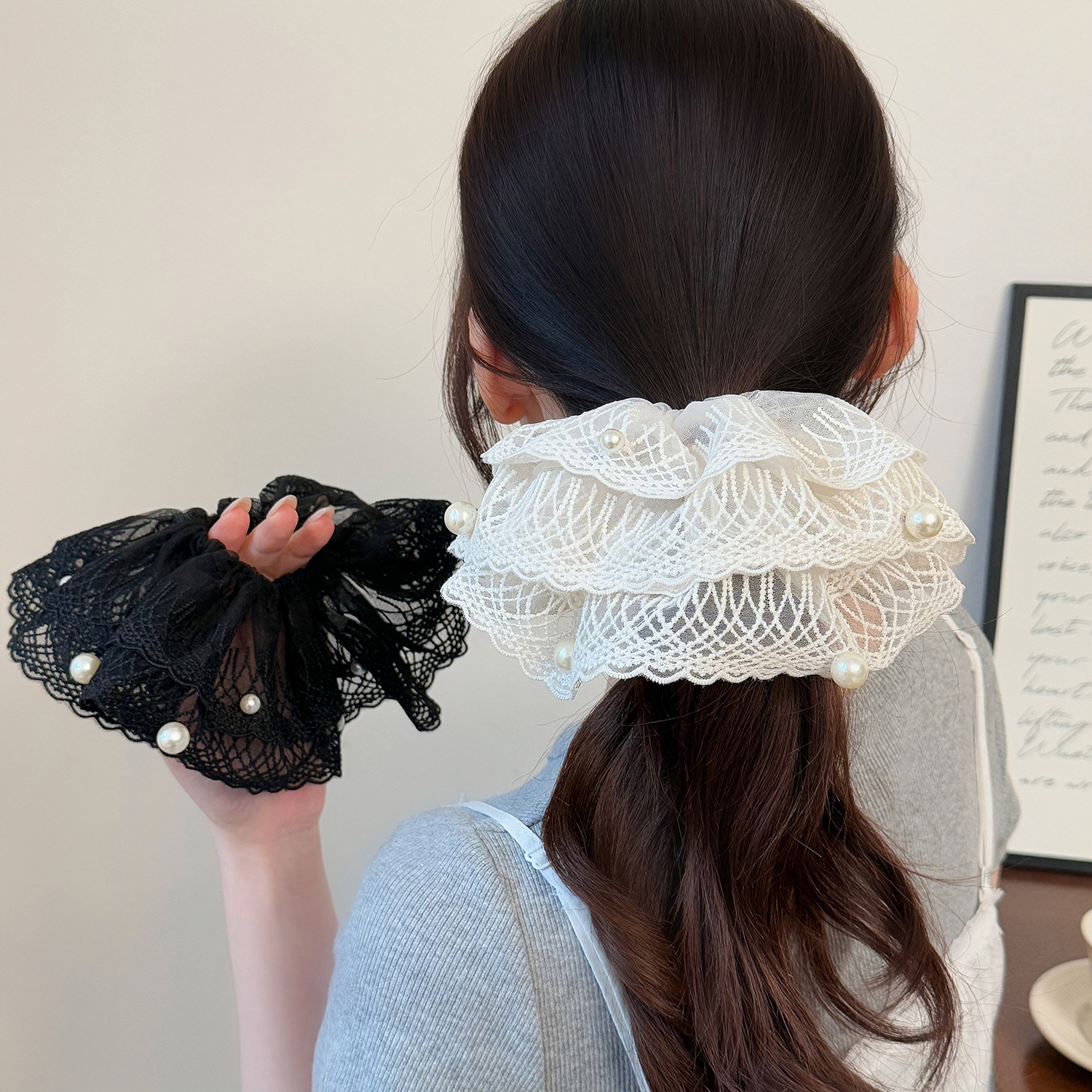 D廠 韓系髮飾高質感米白蕾絲珍珠髮圈髮飾批發 折扣@洽客服 26.04.W4 「FQ-1074」