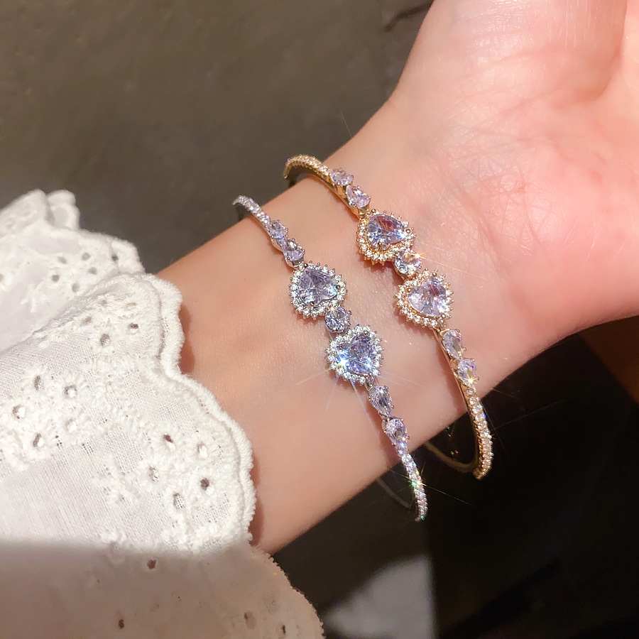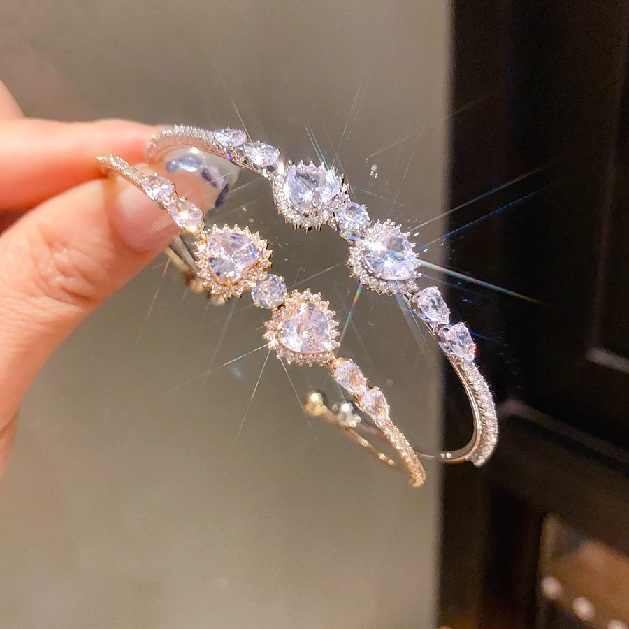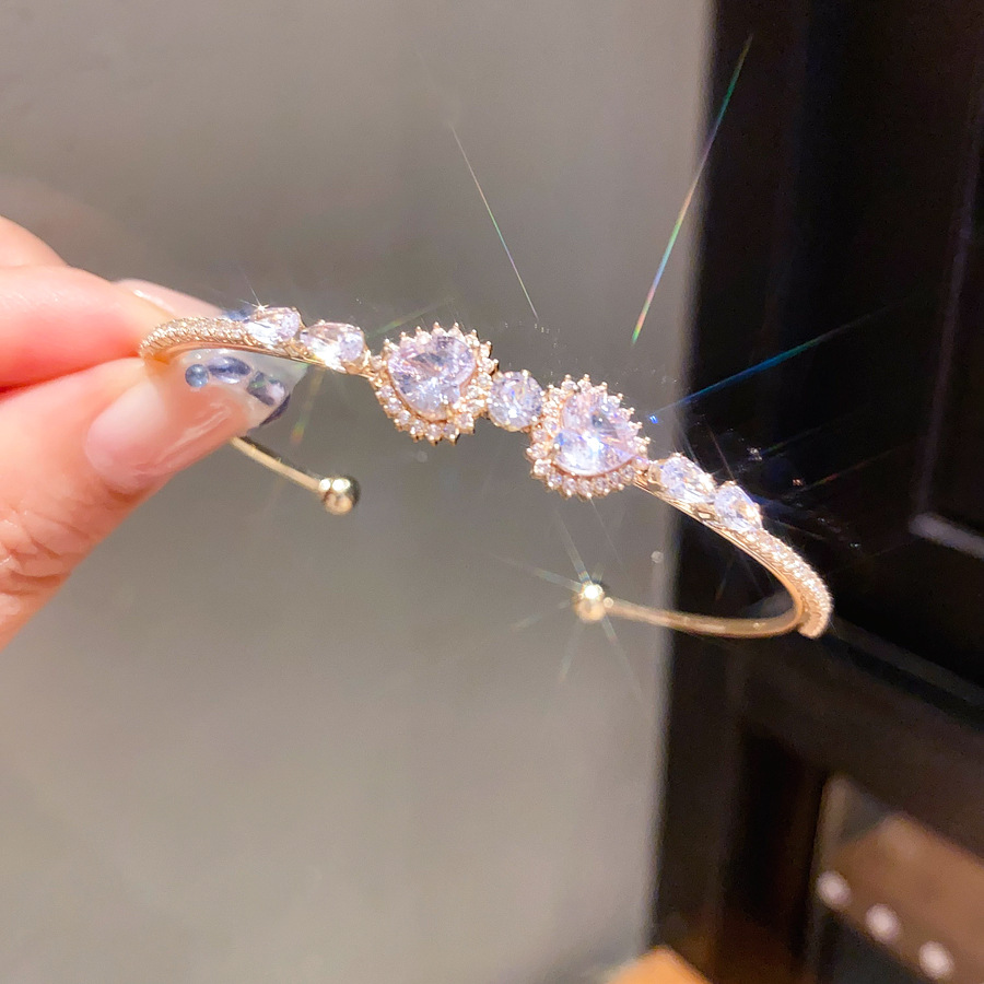 A2廠 韓國韓版鋯石心形幾何圓形開口手鐲 批發 折扣@洽客服 25.10.W5「HB3788」