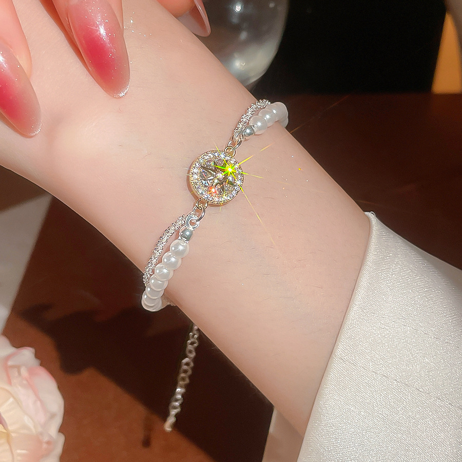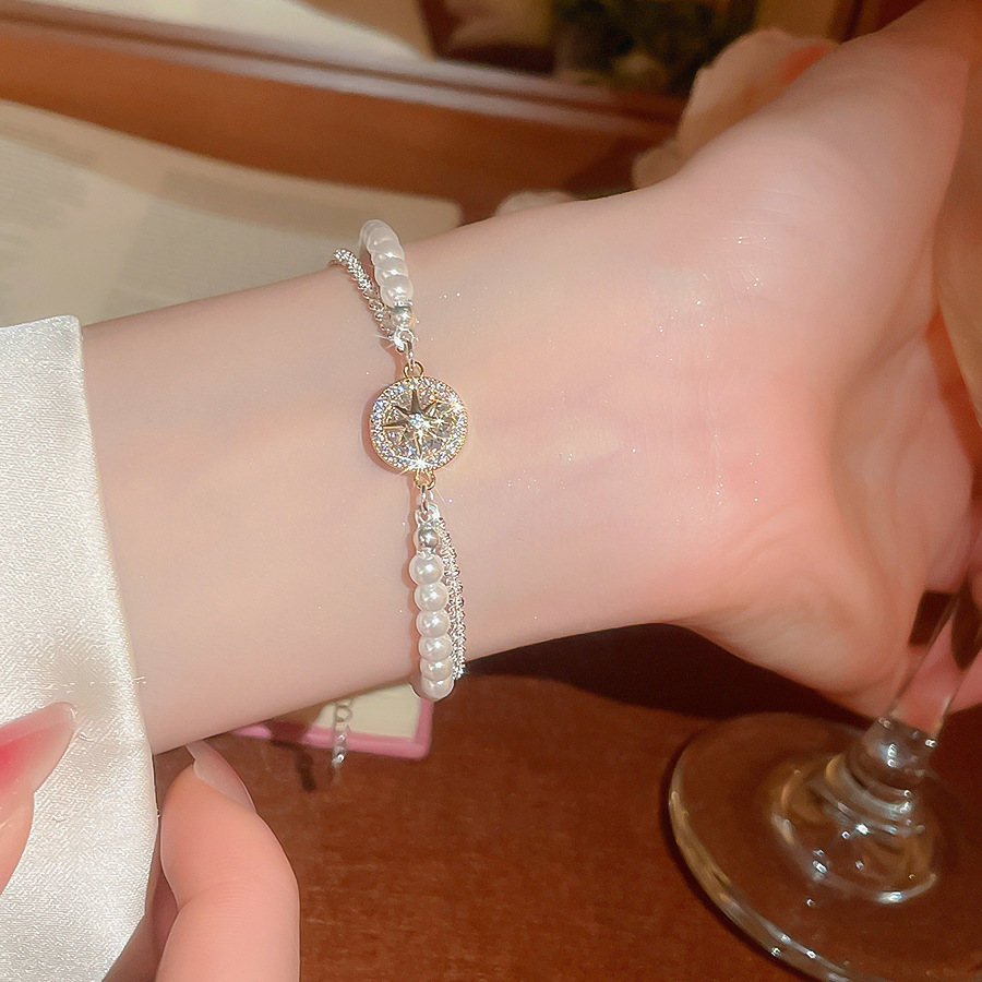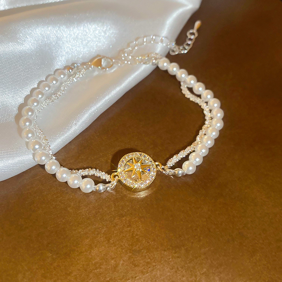 A2廠 韓國韓版珍珠芒星吊墜雙層手鍊 批發 折扣@洽客服 25.10.W3「HB4588」