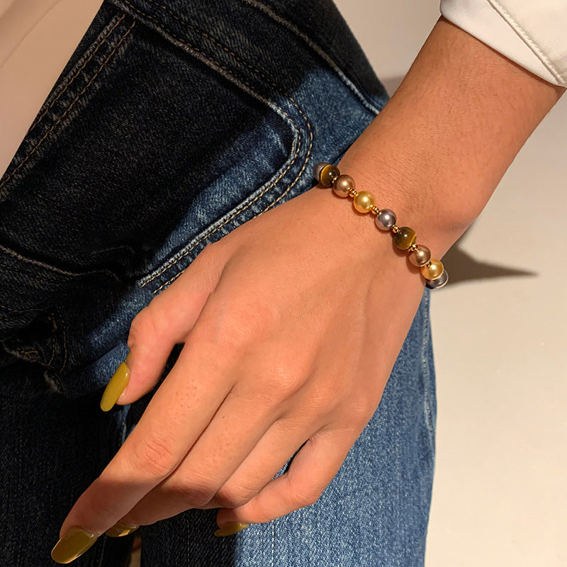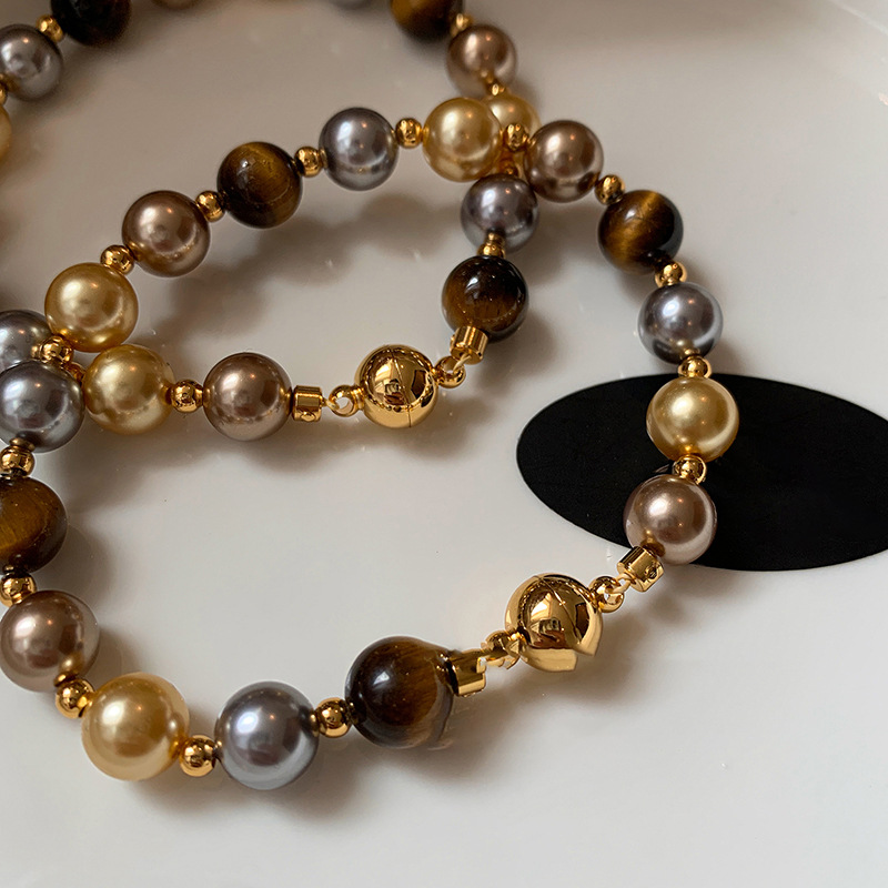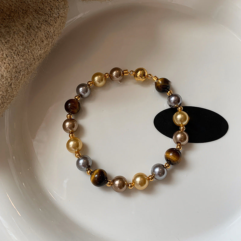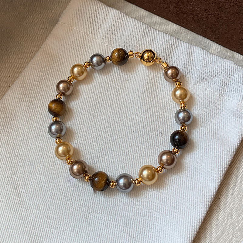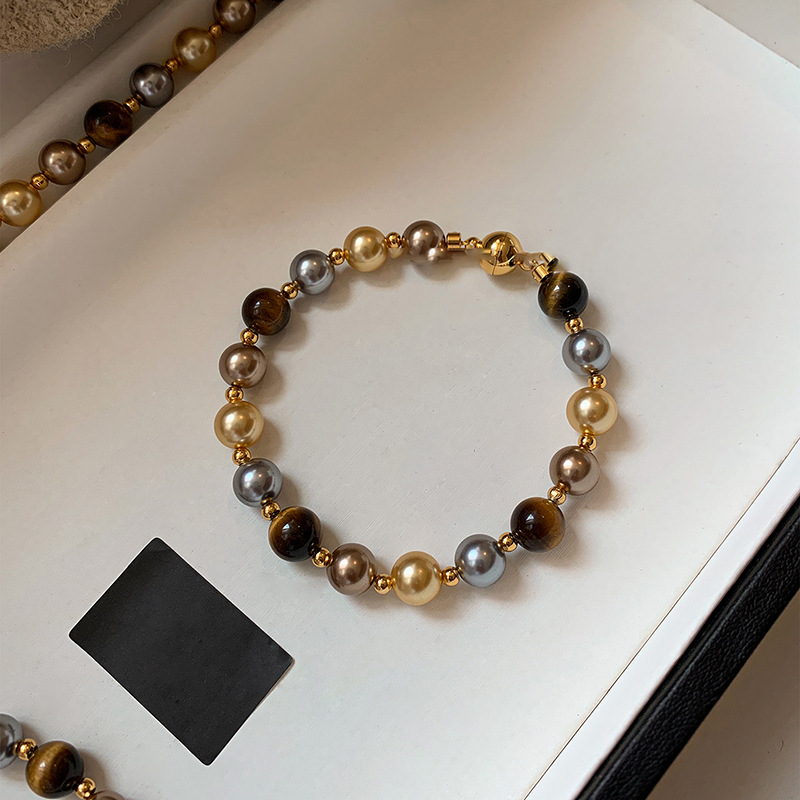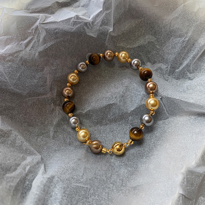A2廠 韓國韓版復古虎眼石珍珠串珠磁吸手鍊 批發 折扣@洽客服 25.11.W3「HB4768」
