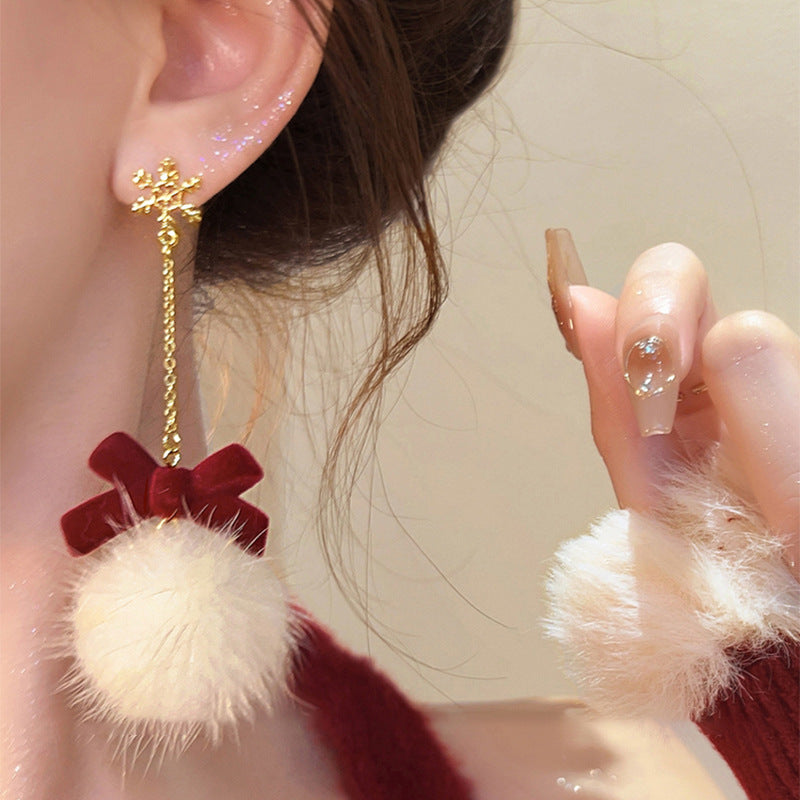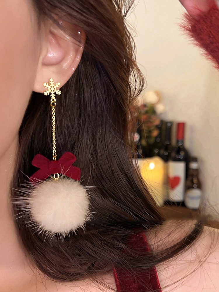 A2廠 韓國韓版聖誕節雪花蝴蝶結銀針耳環 批發 折扣@洽客服 25.12.W1「HE18059」