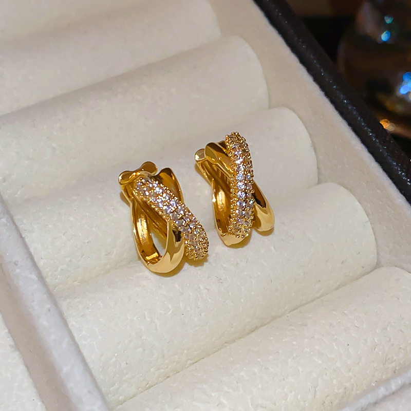 A2廠 韓國韓版鋯石交叉銅鍍14K金銀針耳環「HE22846」24.11.W5 批發折扣@洽客服