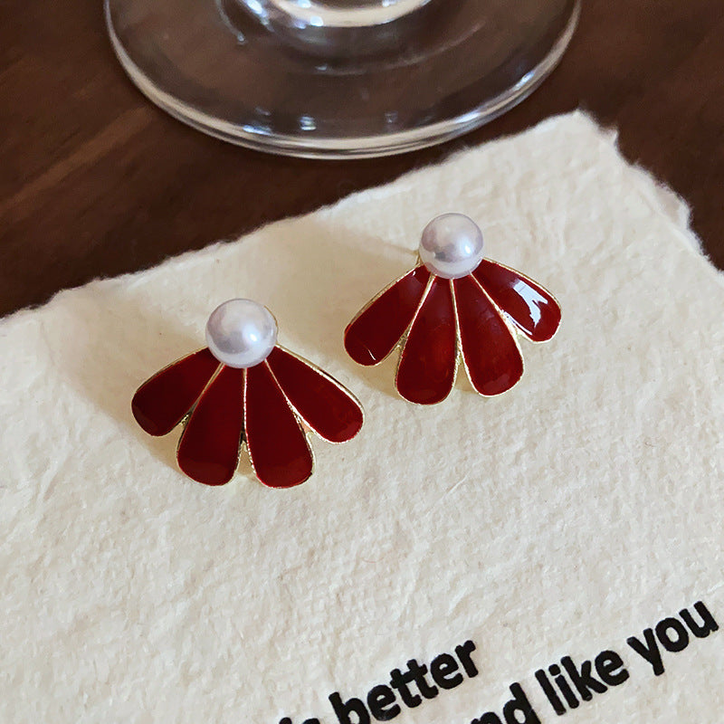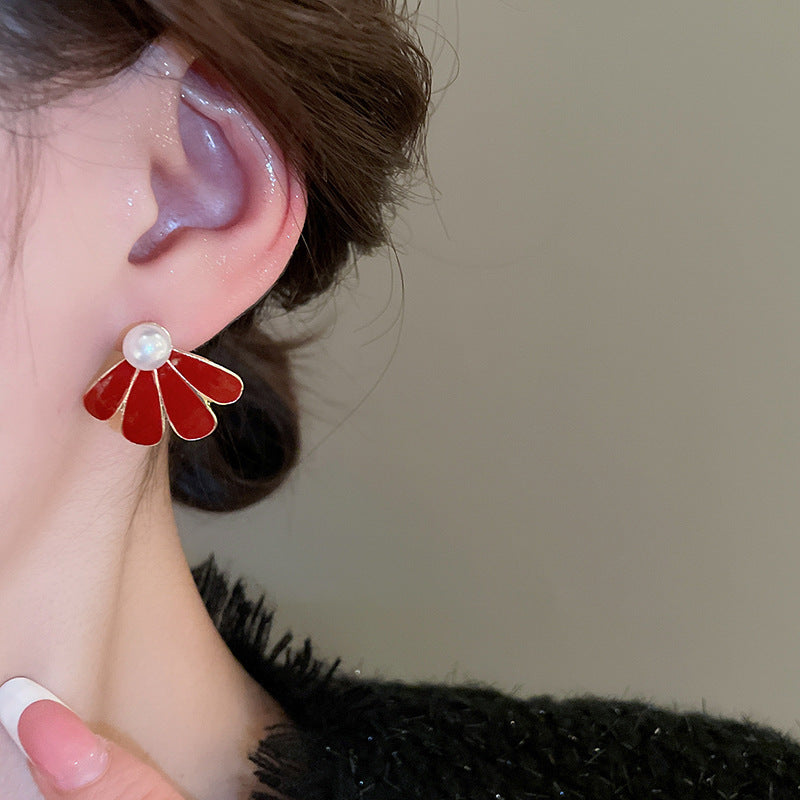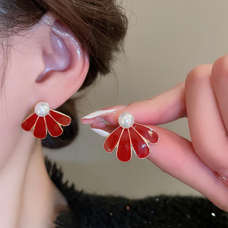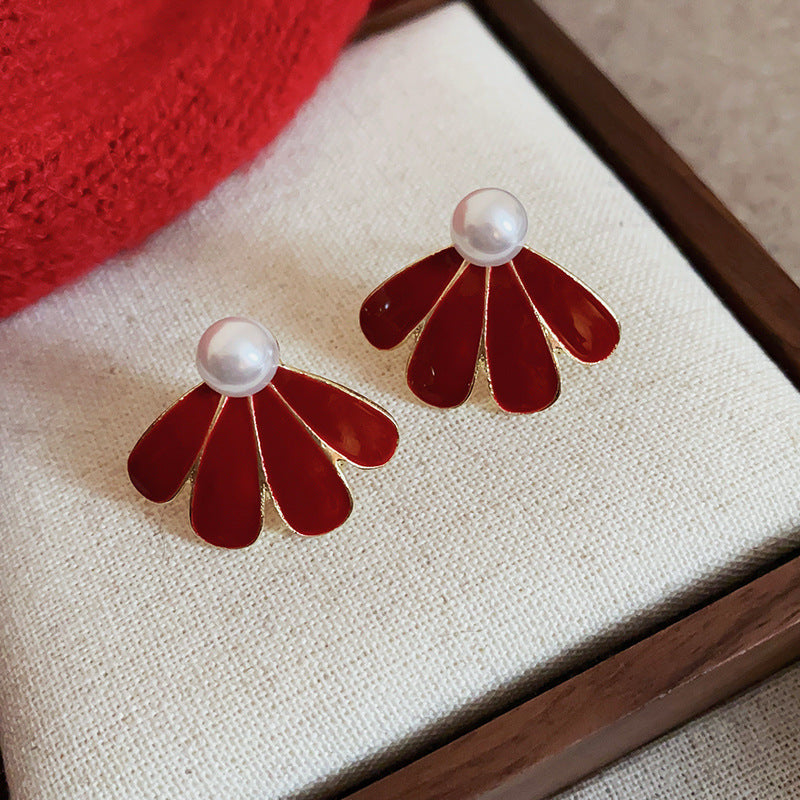 A2 韓國韓版紅滴油花瓣銀針耳環「HE22894」24.12.W2 批發折扣@洽客服