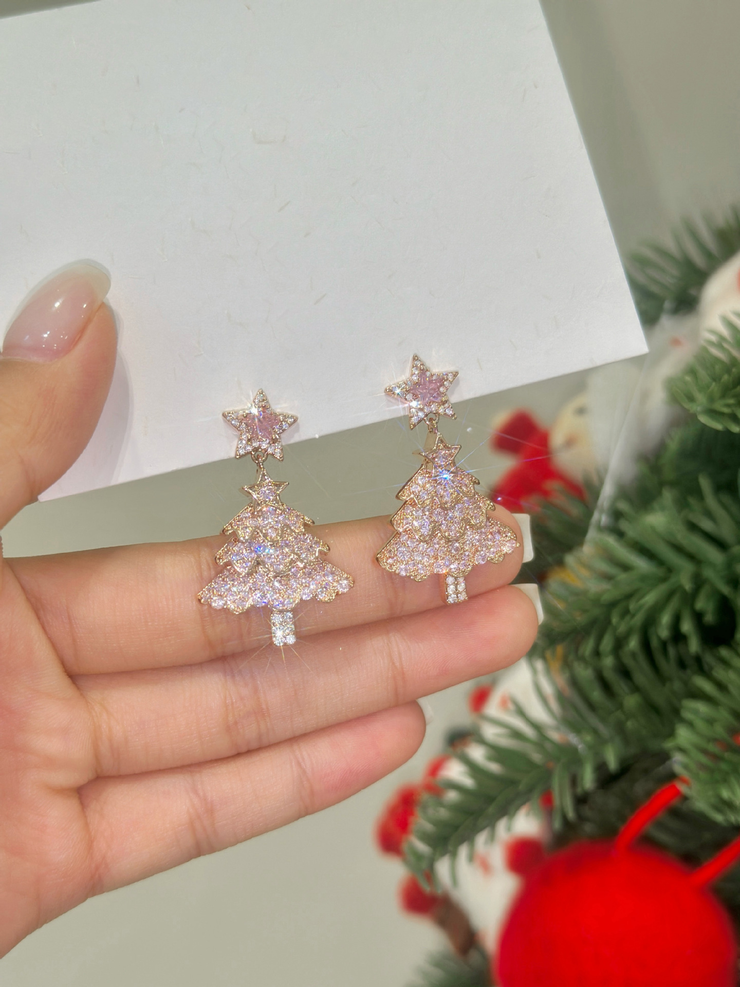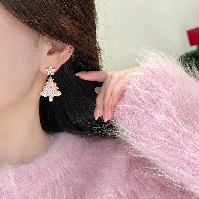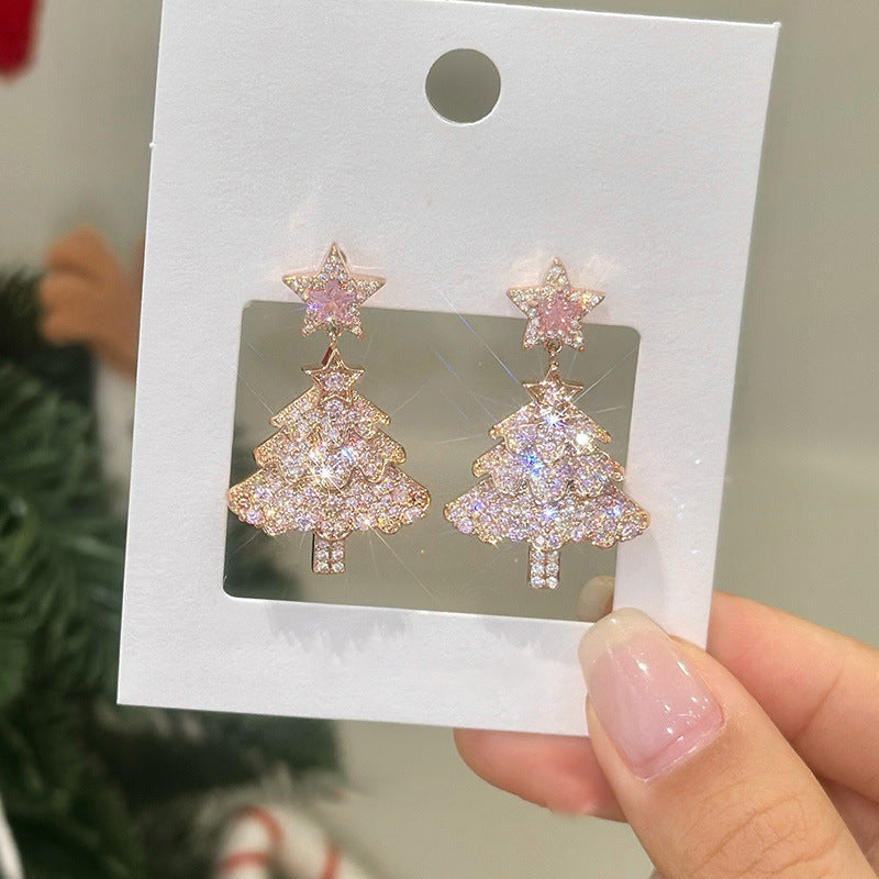 A2廠 韓國韓版輕奢高級鋯石聖誕樹銀針耳環 批發 折扣@洽客服 25.12.W1「HE23967」