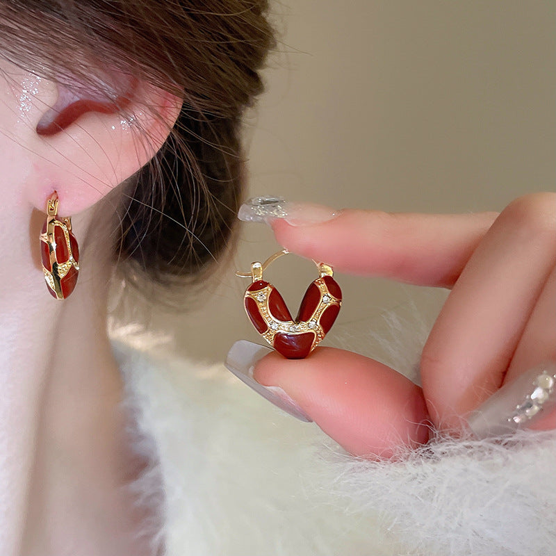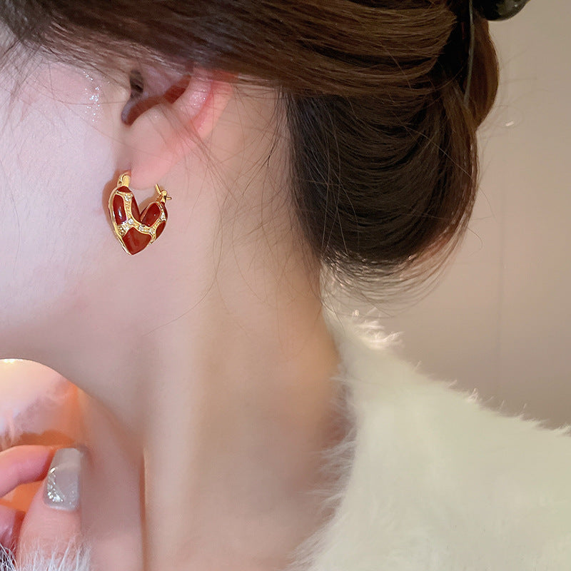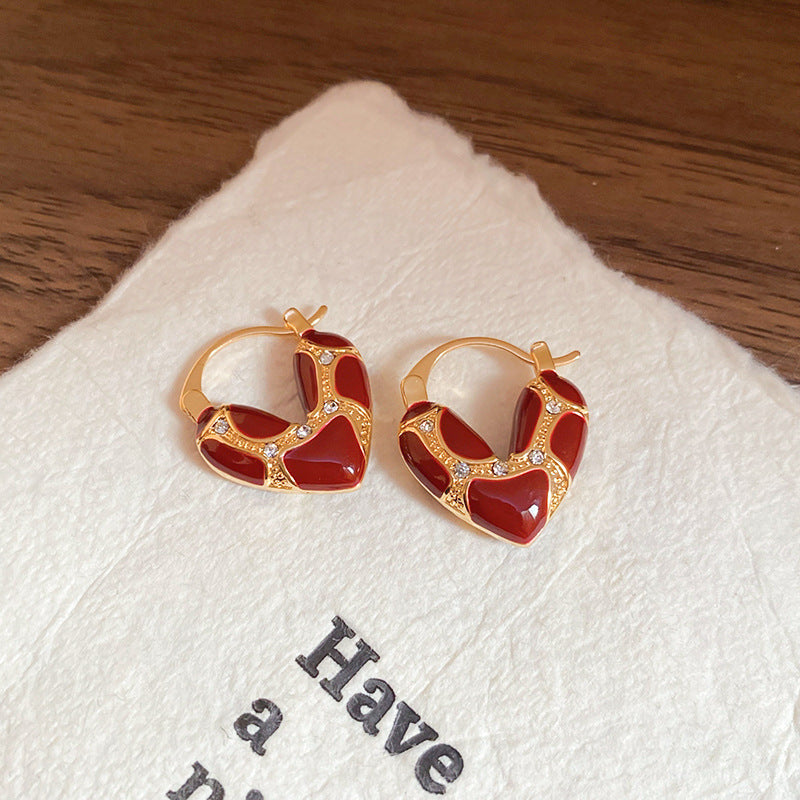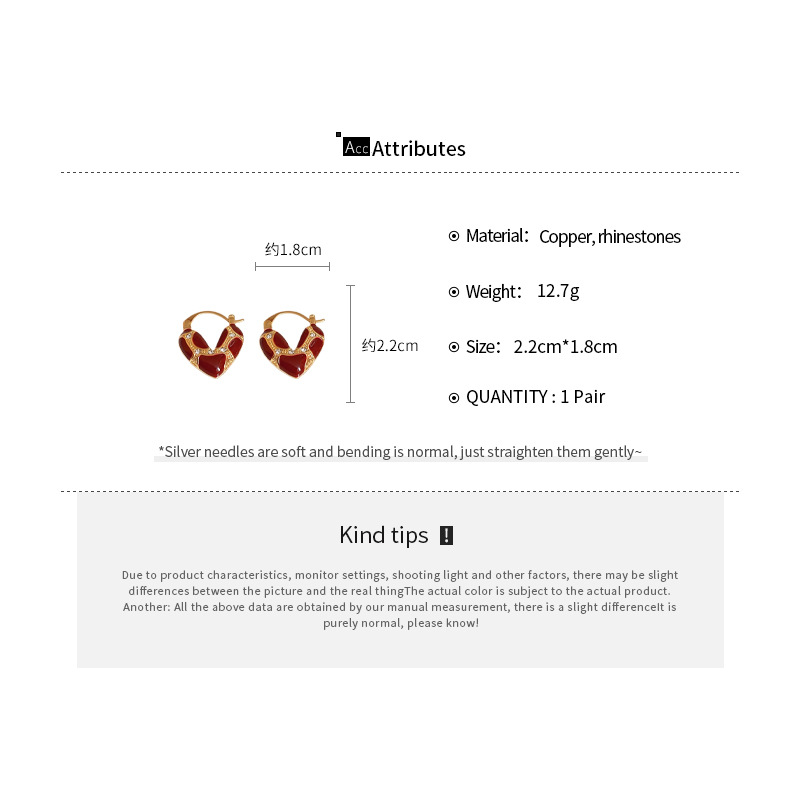 A2廠 韓國韓版滴油鑲鑽愛心銅鍍14K金銀針耳環「HE24248」24.12.W3 批發折扣@洽客服