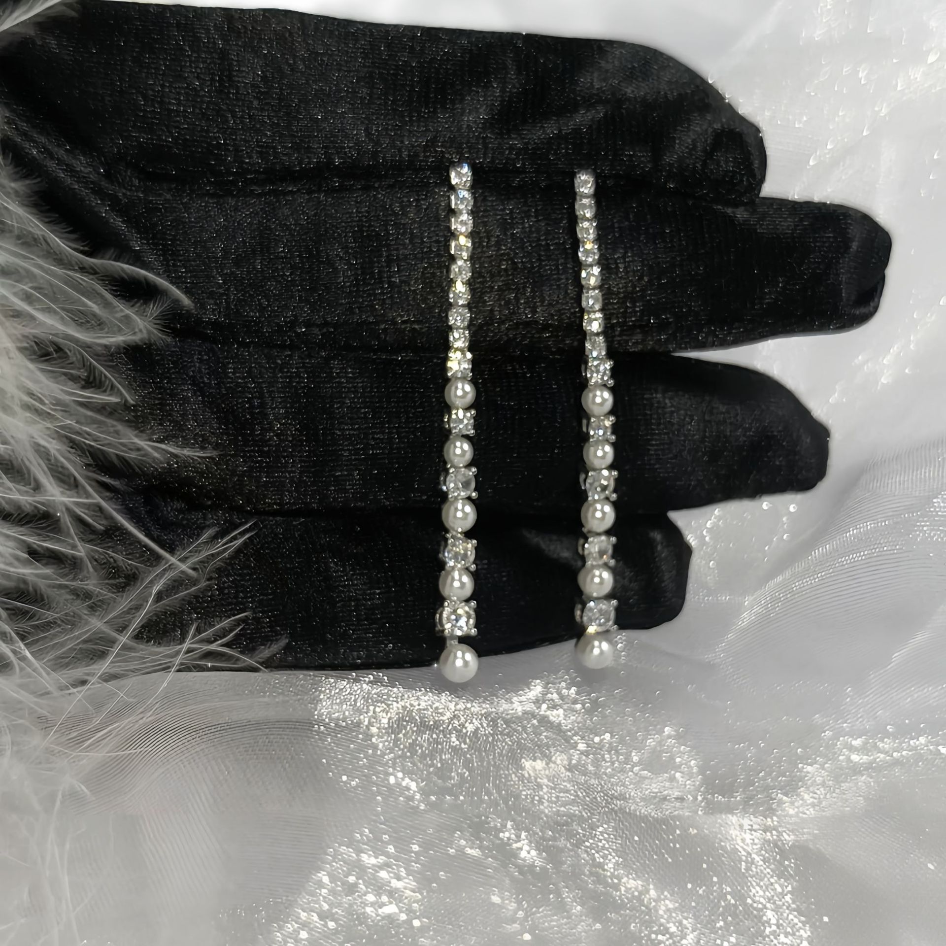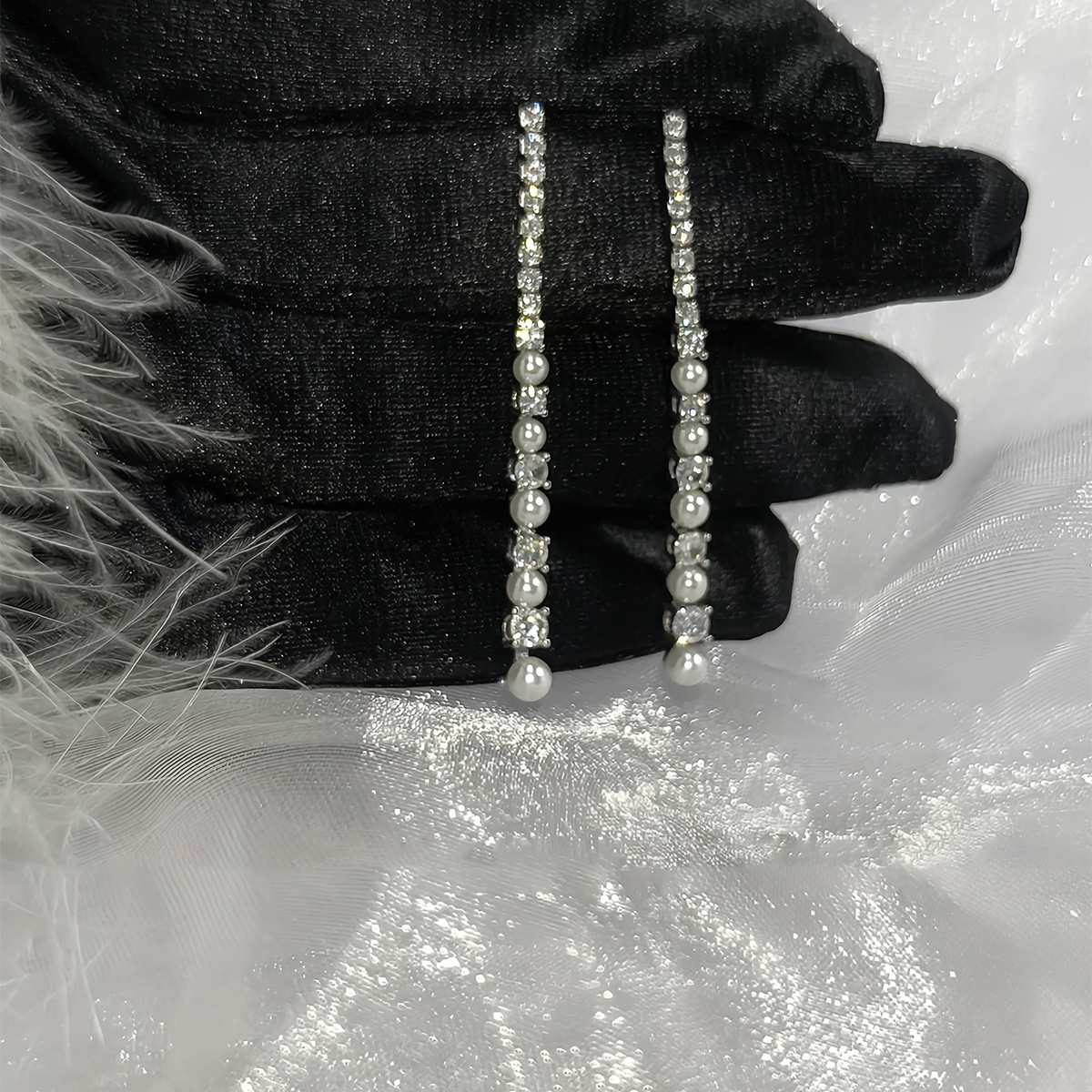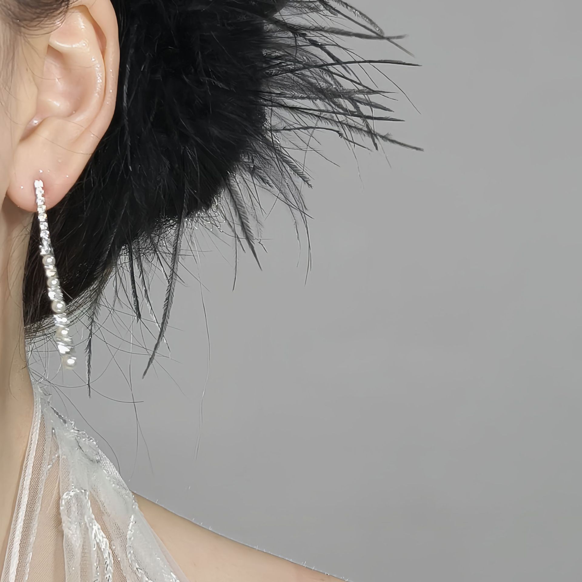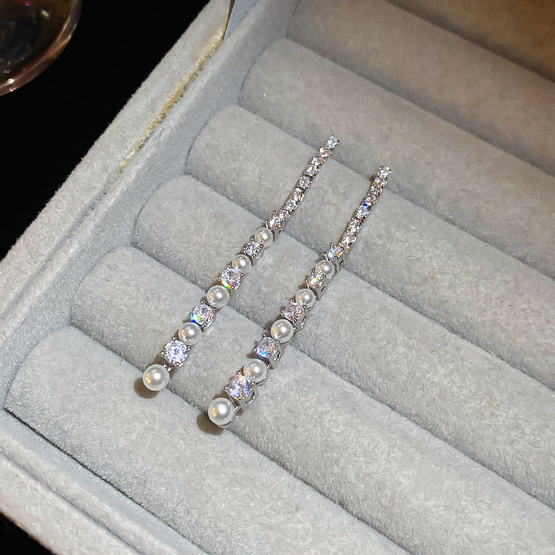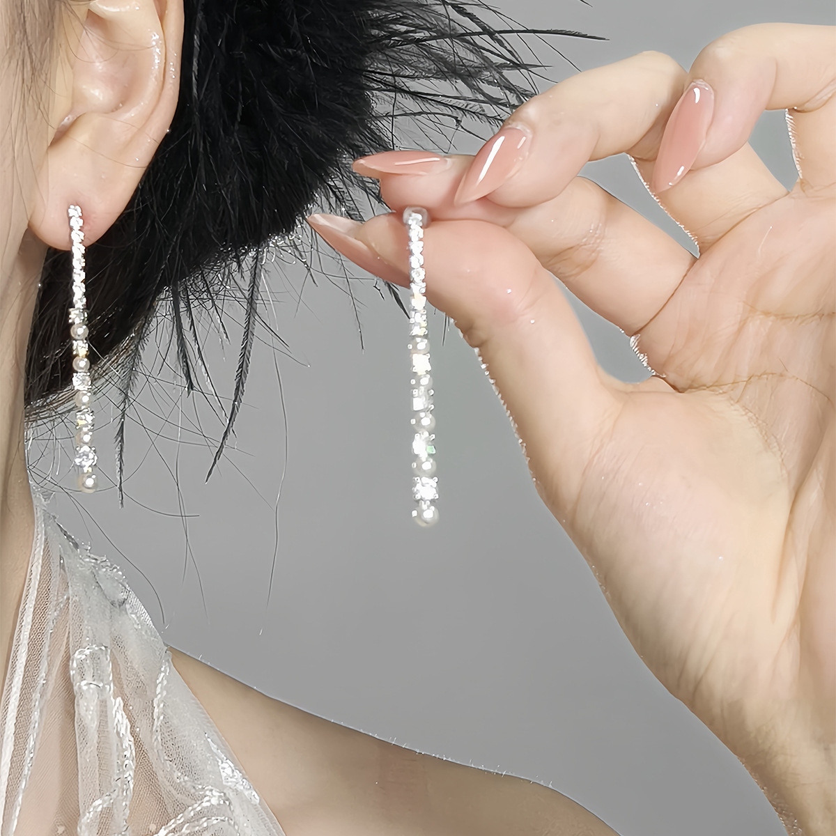 A2廠 韓國韓版超閃鋯石長珍珠流蘇銀針耳環 批發 折扣@洽客服 25.11.W1「HE24410」