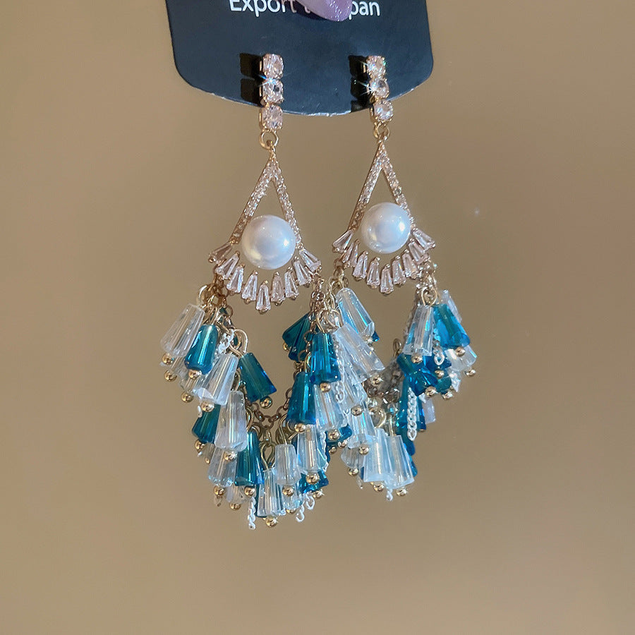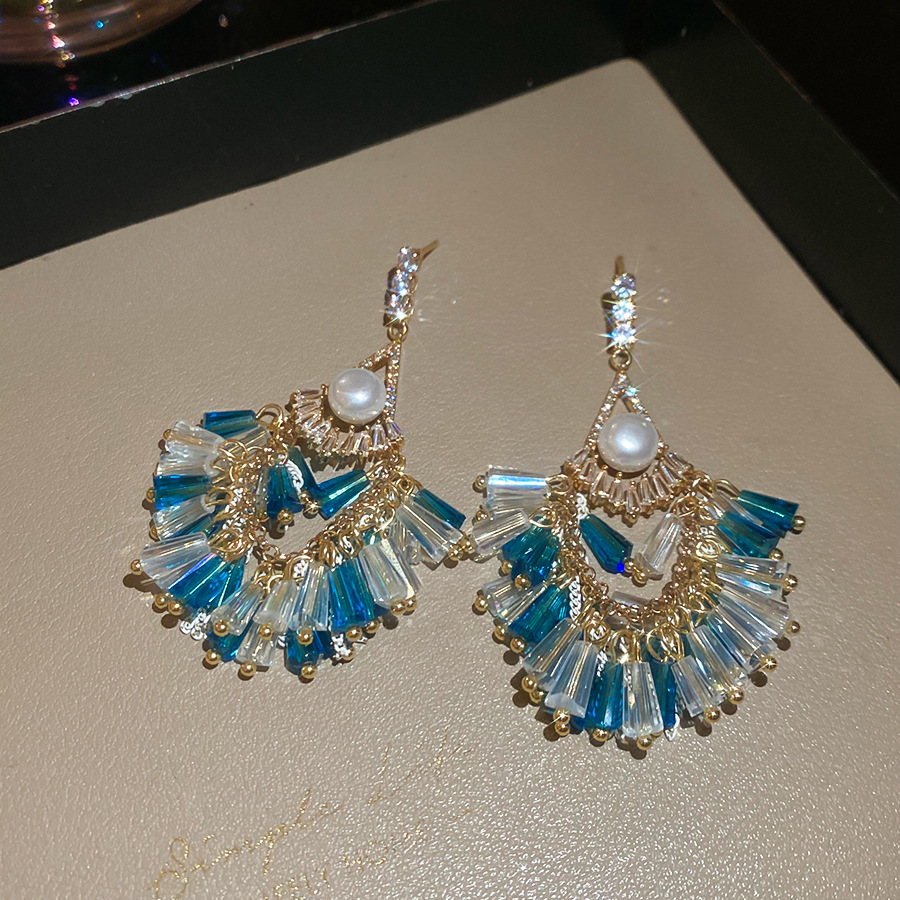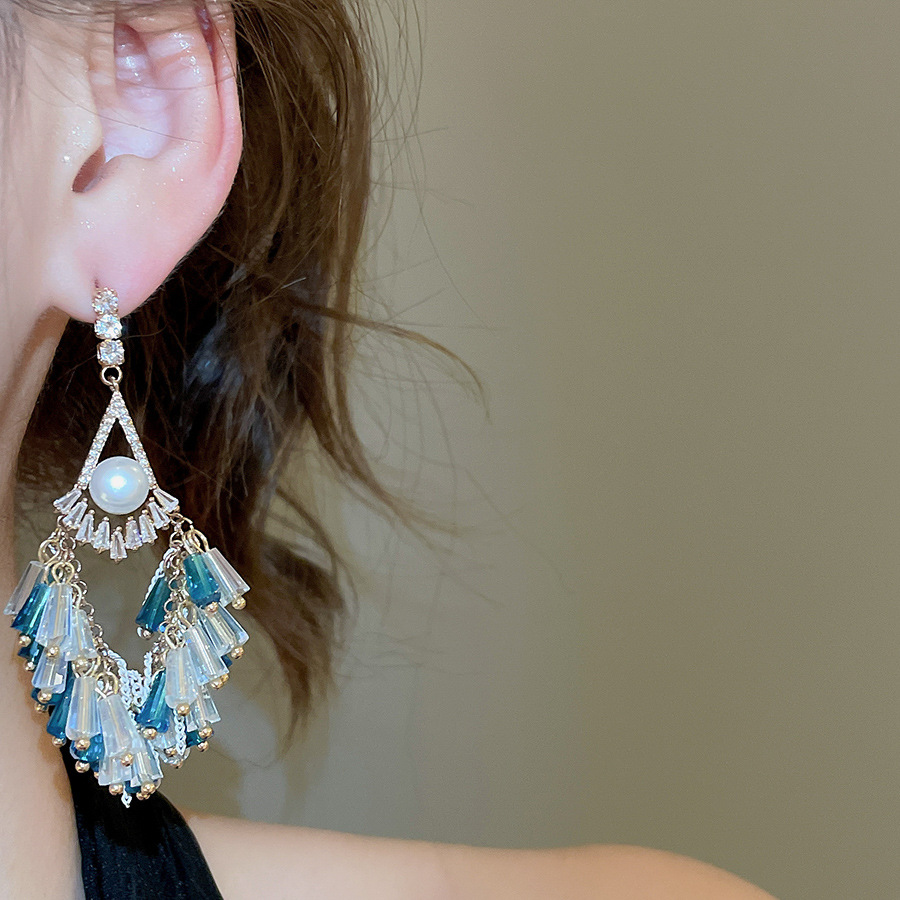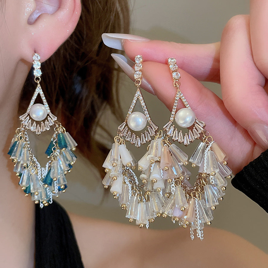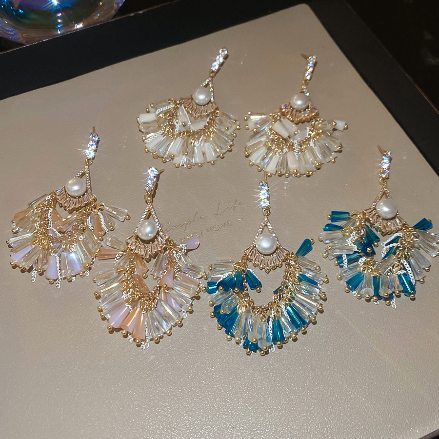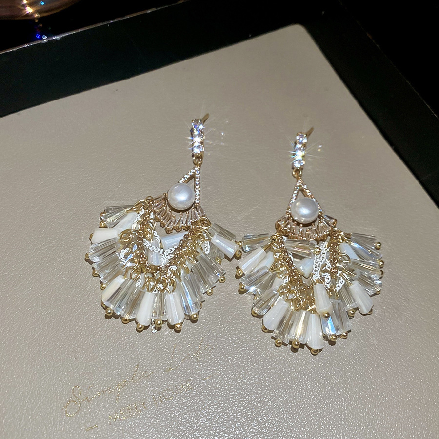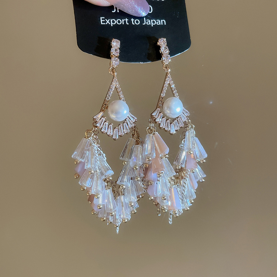 A2廠 韓國韓系鋯石珍珠水晶流蘇銀針耳環 批發 折扣@洽客服 25.09.W2「HE27388」