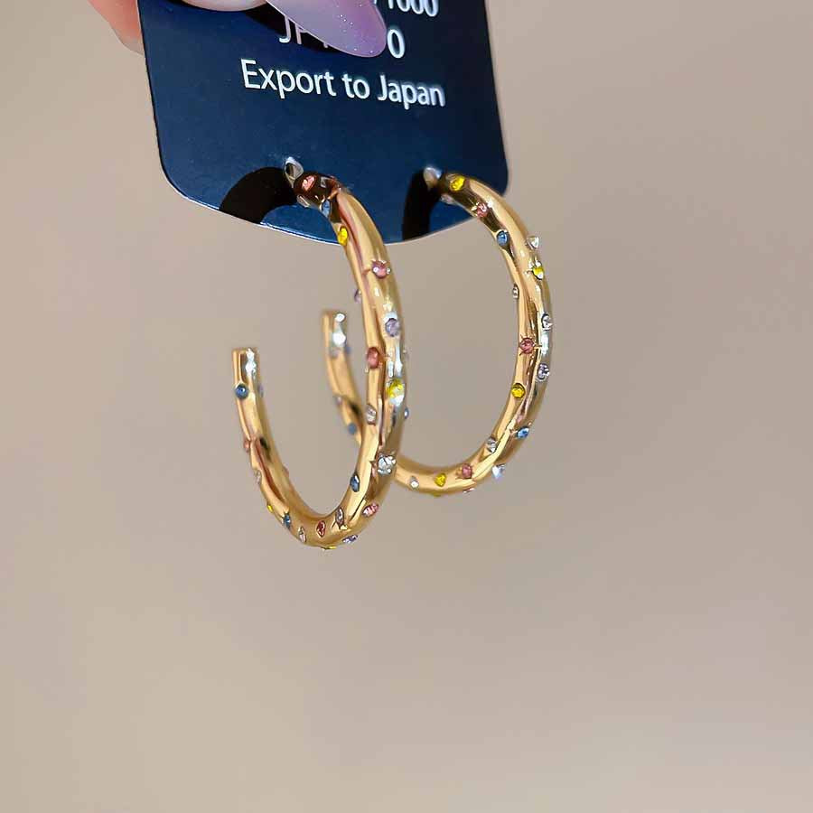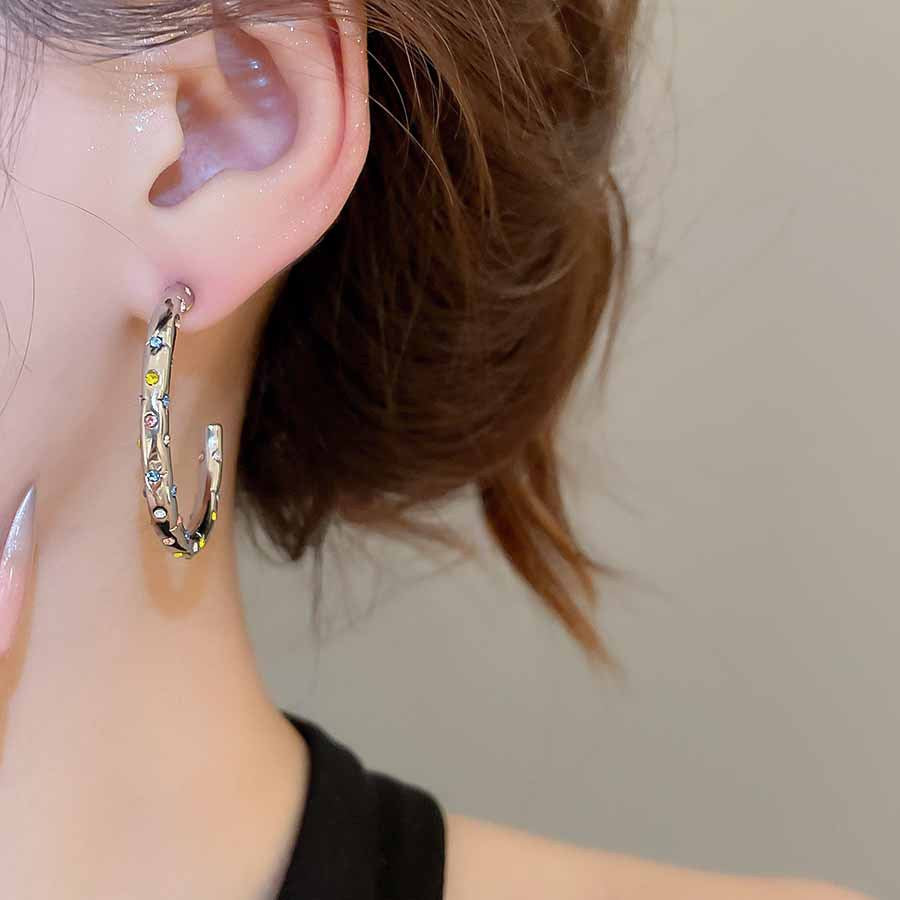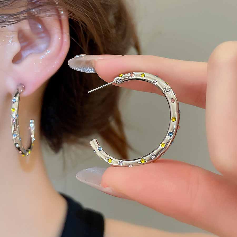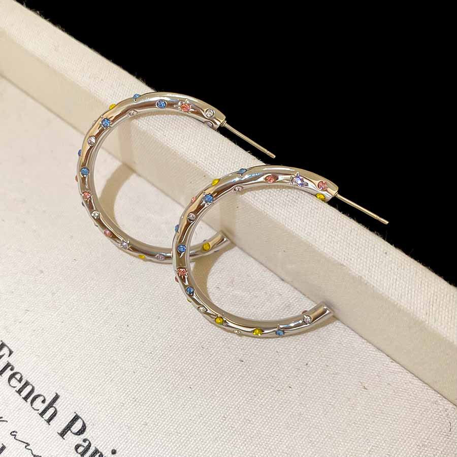 A2廠 韓國韓版鑲鑽圓圈C型銀針耳環 批發 折扣@洽客服 25.08.W5「HE27893」