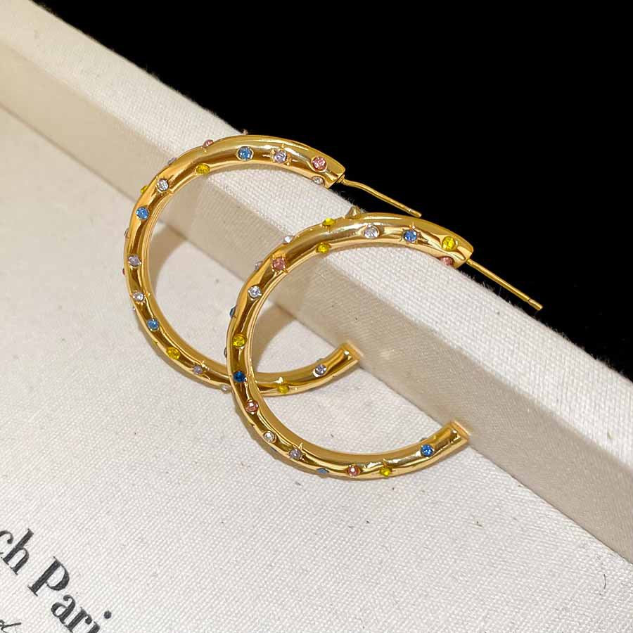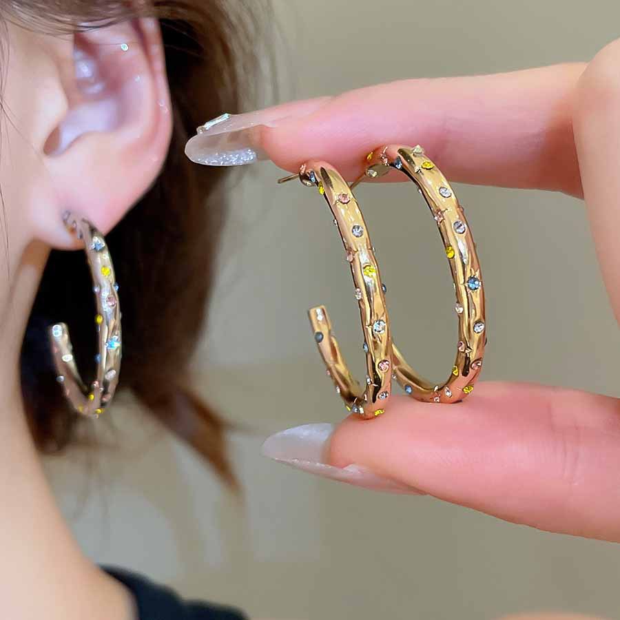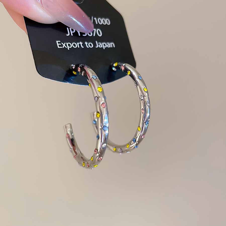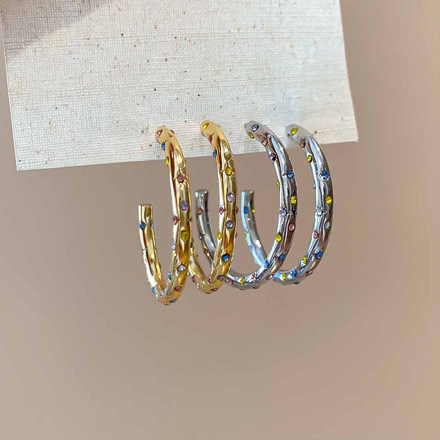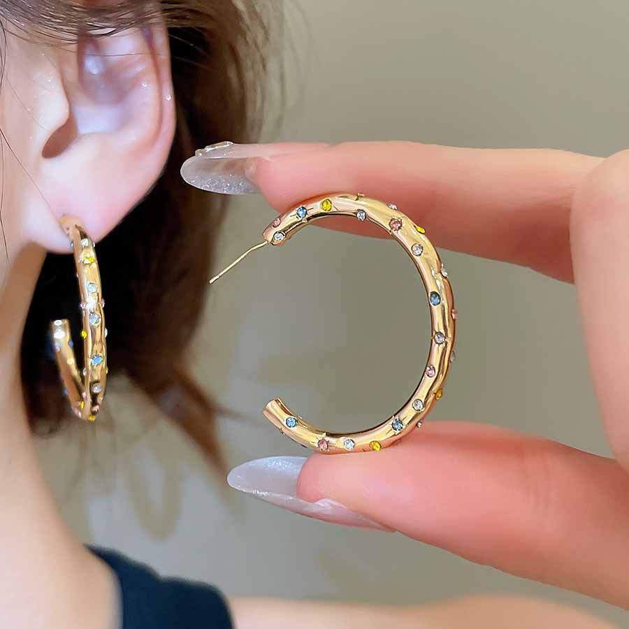 A2廠 韓國韓版鑲鑽圓圈C型銀針耳環 批發 折扣@洽客服 25.08.W5「HE27893」