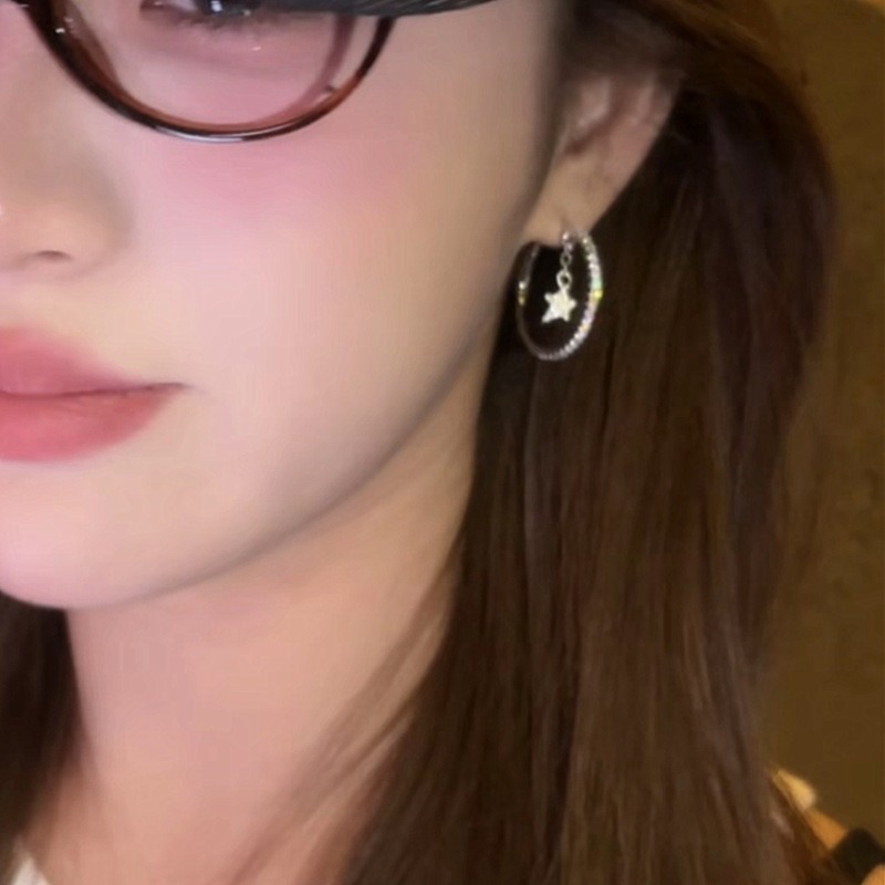 A2廠 韓國韓版鑲鑽C型星星流蘇銀針耳環 批發 折扣@洽客服 25.08.W5「HE27919」