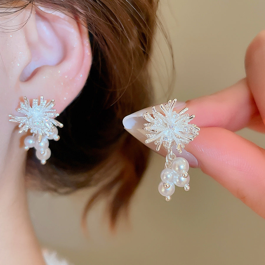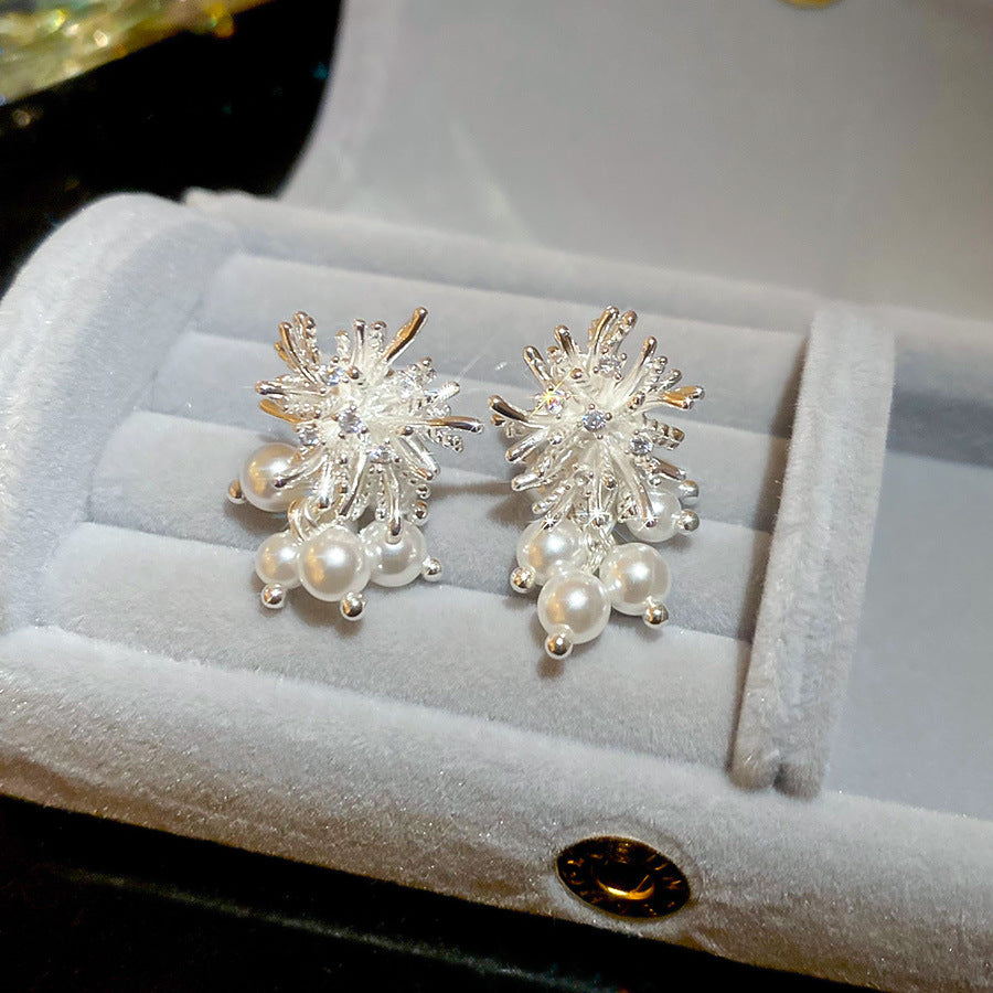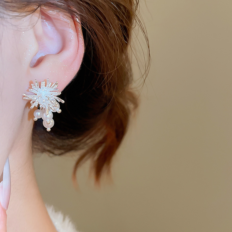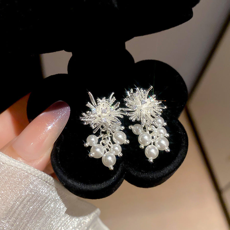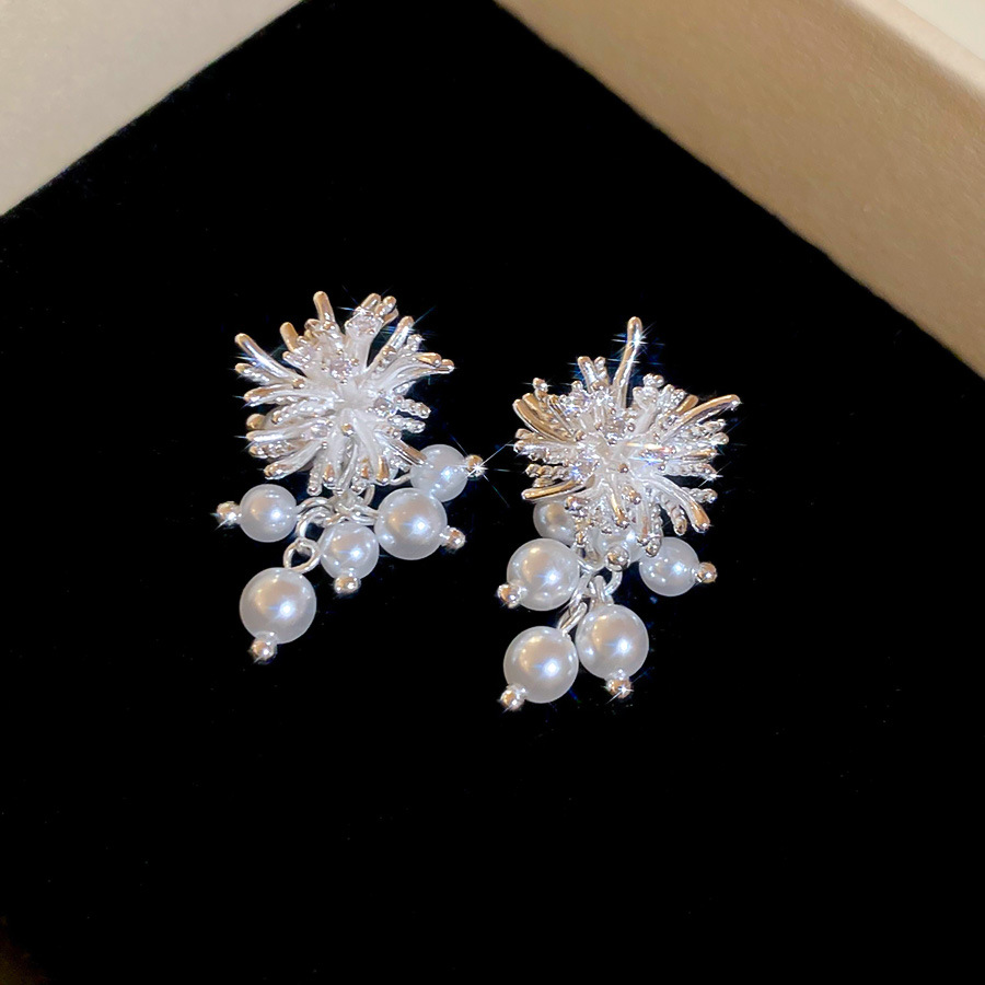 A2廠 韓國韓系鋯石煙火珍珠流蘇銀針耳環 批發 折扣@洽客服 25.09.W2「HE28042」
