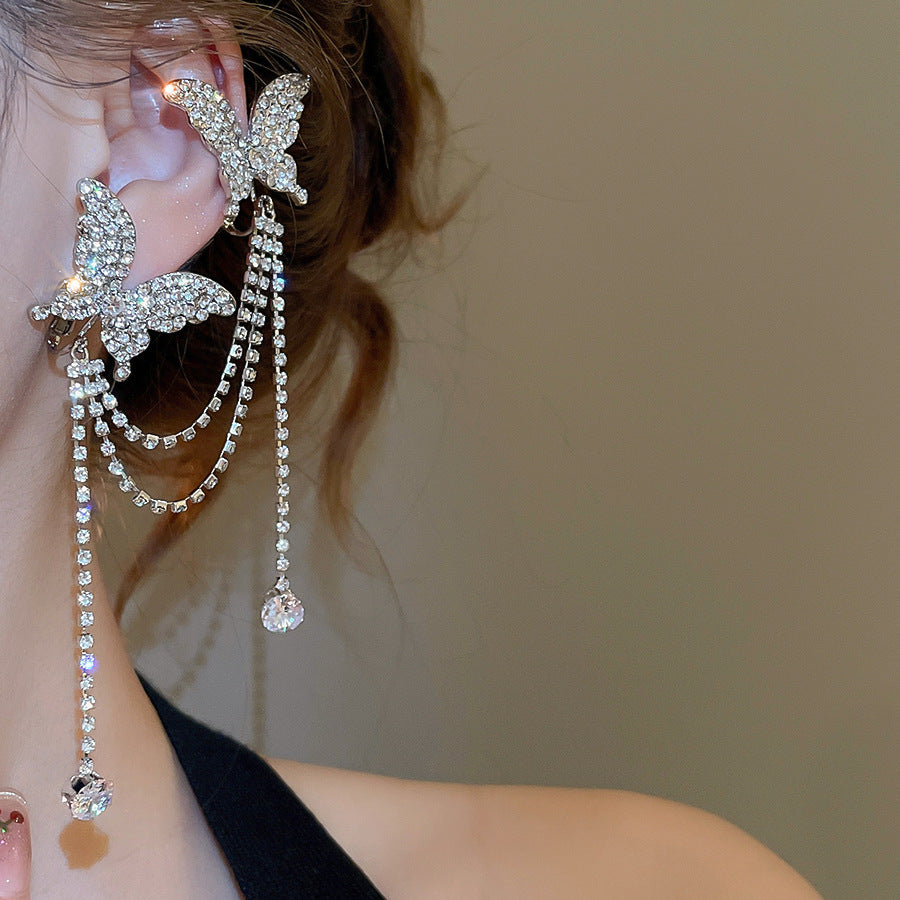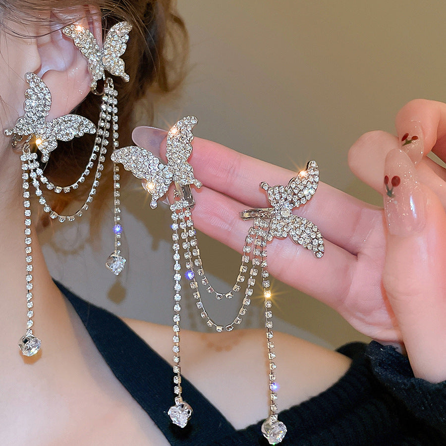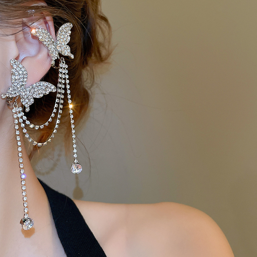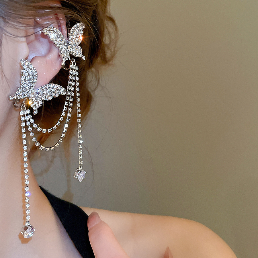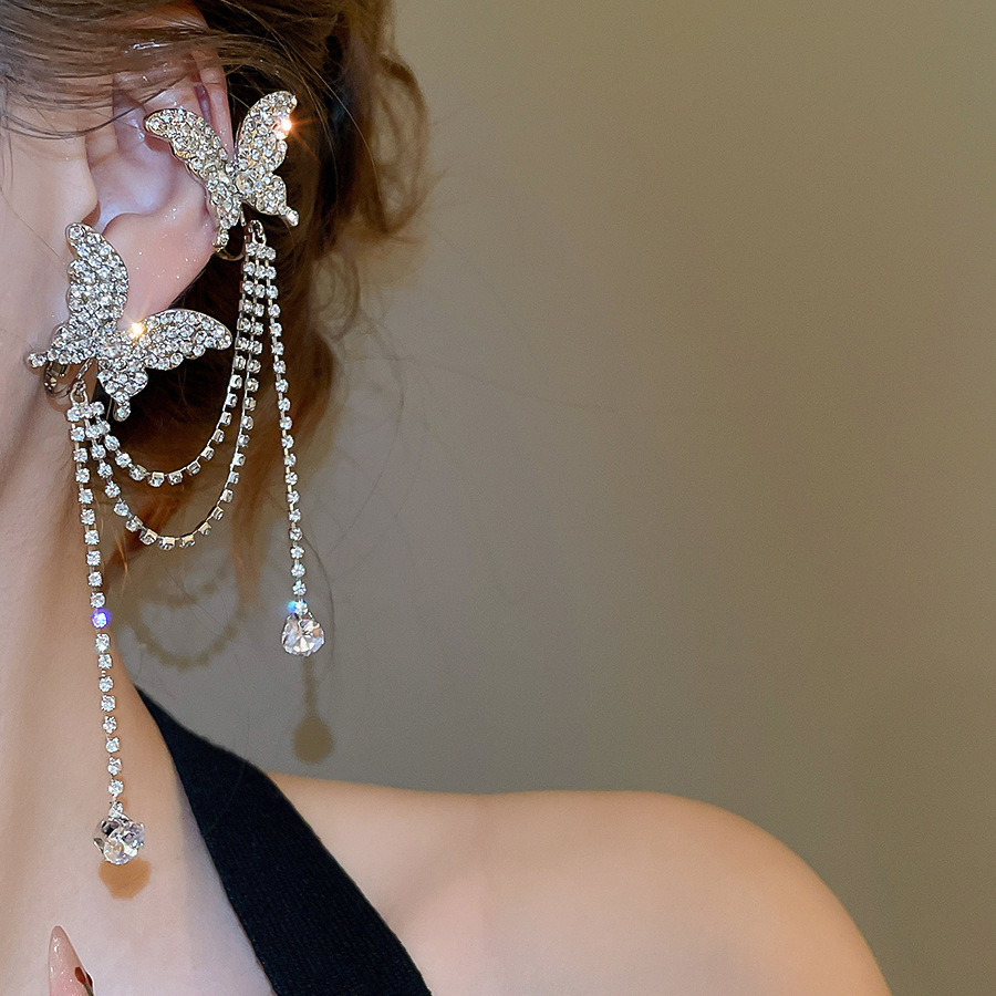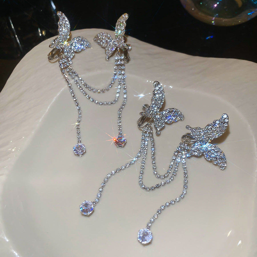 A2廠 韓國韓版不對稱蝴蝶流蘇耳夾 批發 折扣@洽客服 25.09.W4「HE28309」