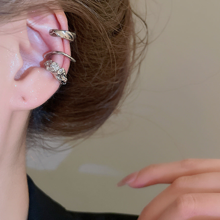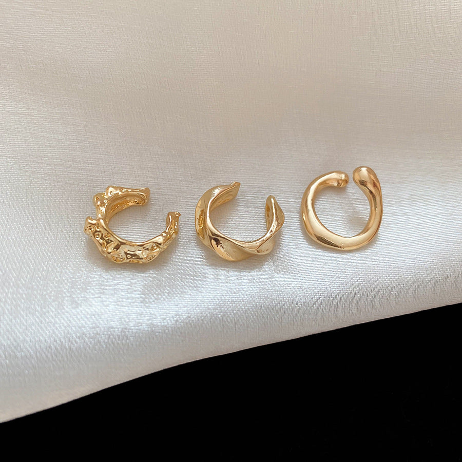 A2廠 韓國韓版金屬感不規則圓形耳夾-3件組「HE28331」
