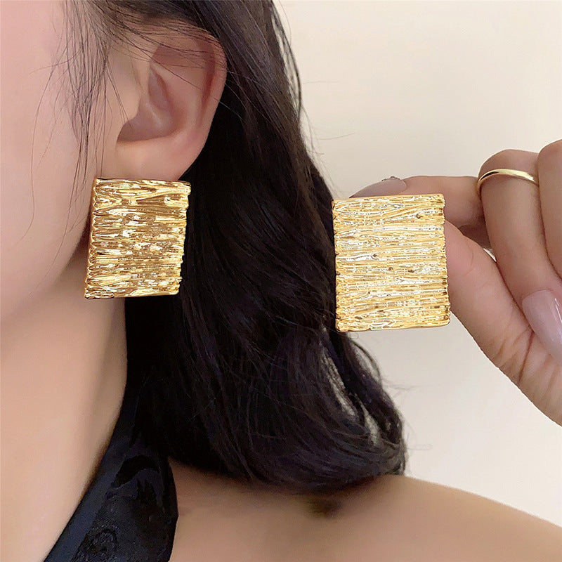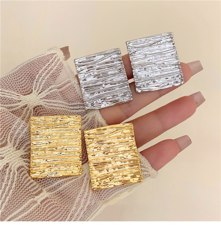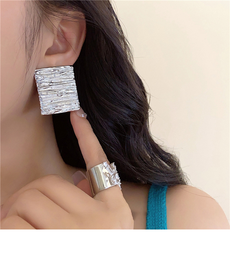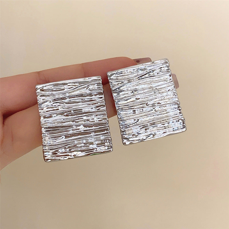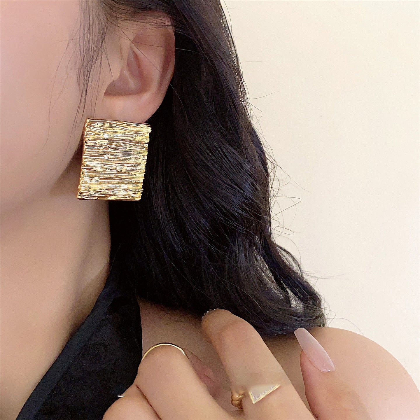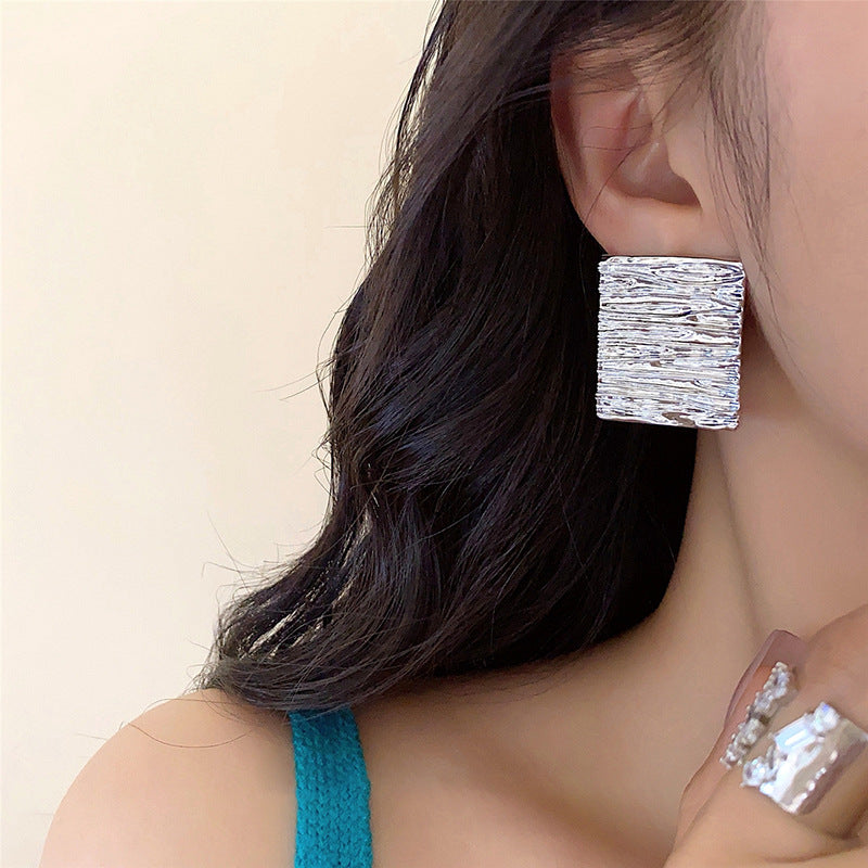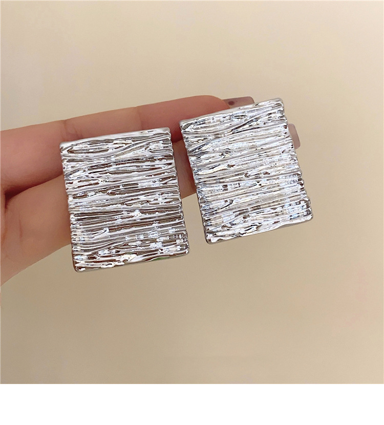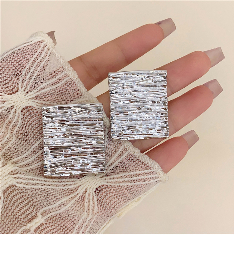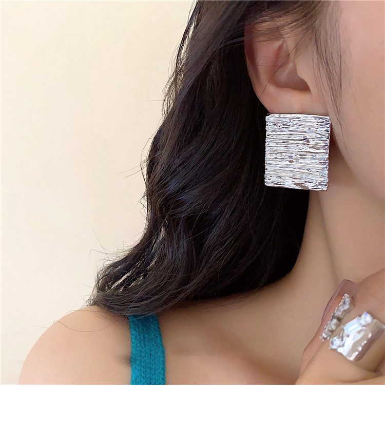 A2廠 韓國韓版金屬感幾何方形褶皺銀針耳環 批發 折扣@洽客服 25.10.W2「HE28423」