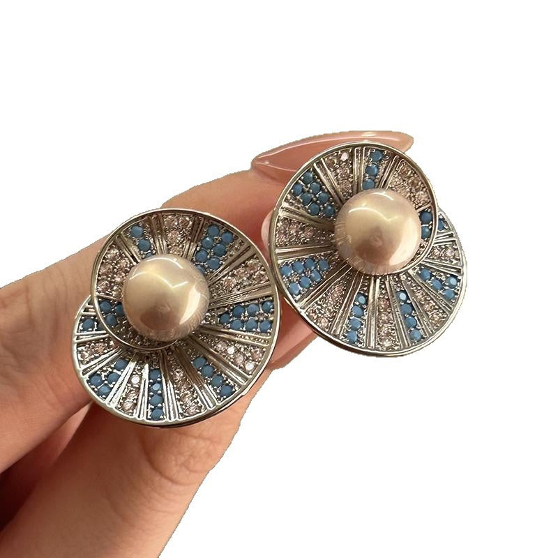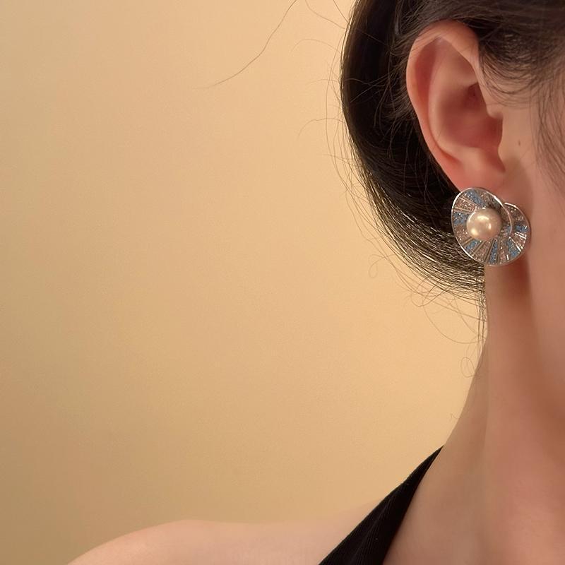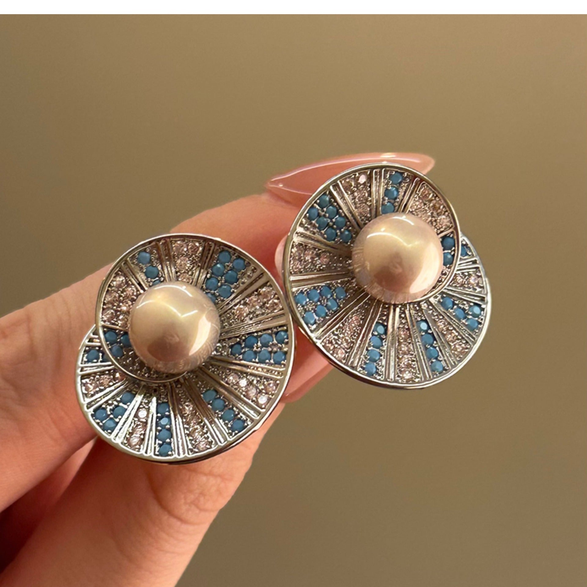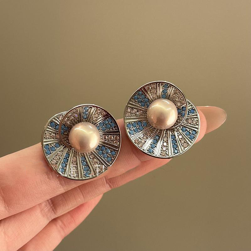 A2廠 韓國韓版復古螺旋幾何圓珍珠鑲鑽銀針耳環 批發 折扣@洽客服 25.10.W2「HE28455」