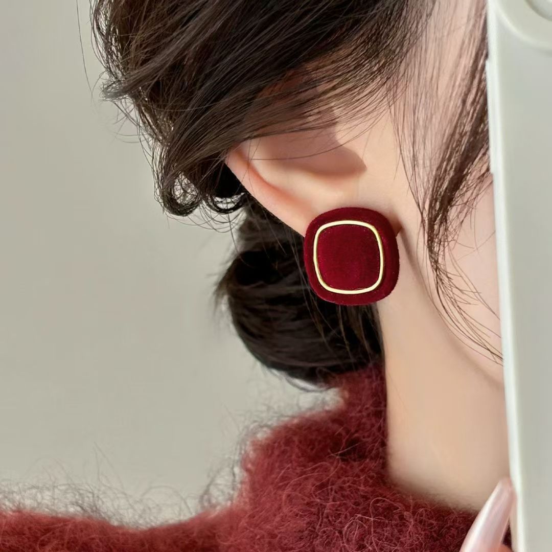 A2廠 韓國韓版秋冬款植絨幾何方形銀針耳環 批發 折扣@洽客服 25.10.W3「HE28752」