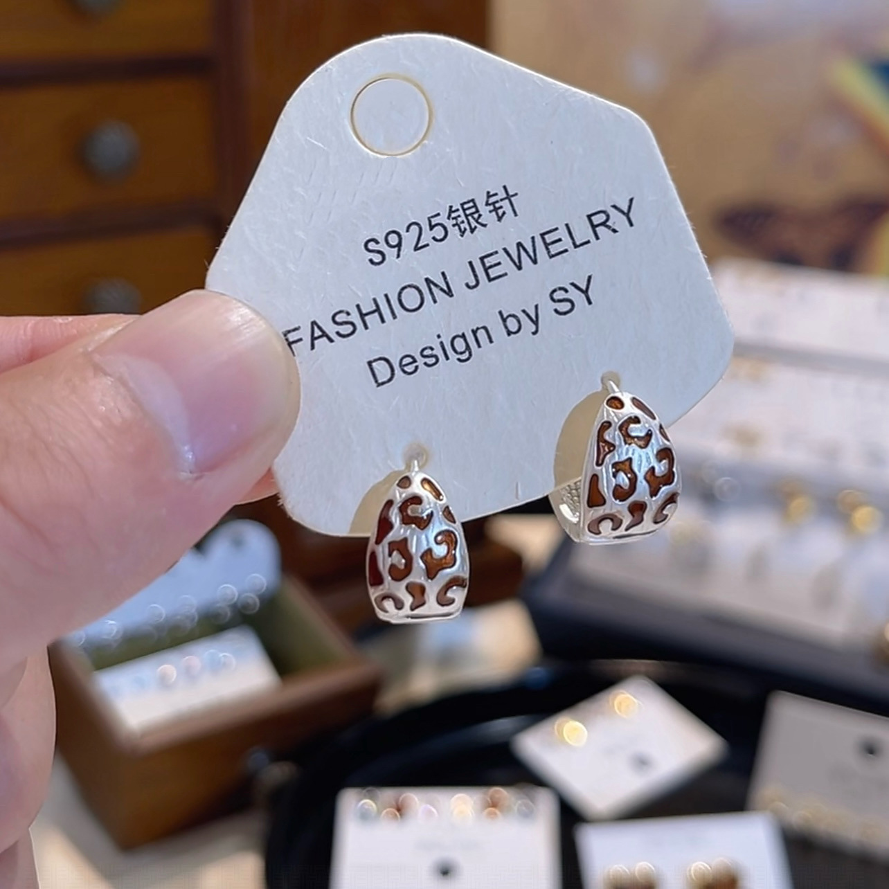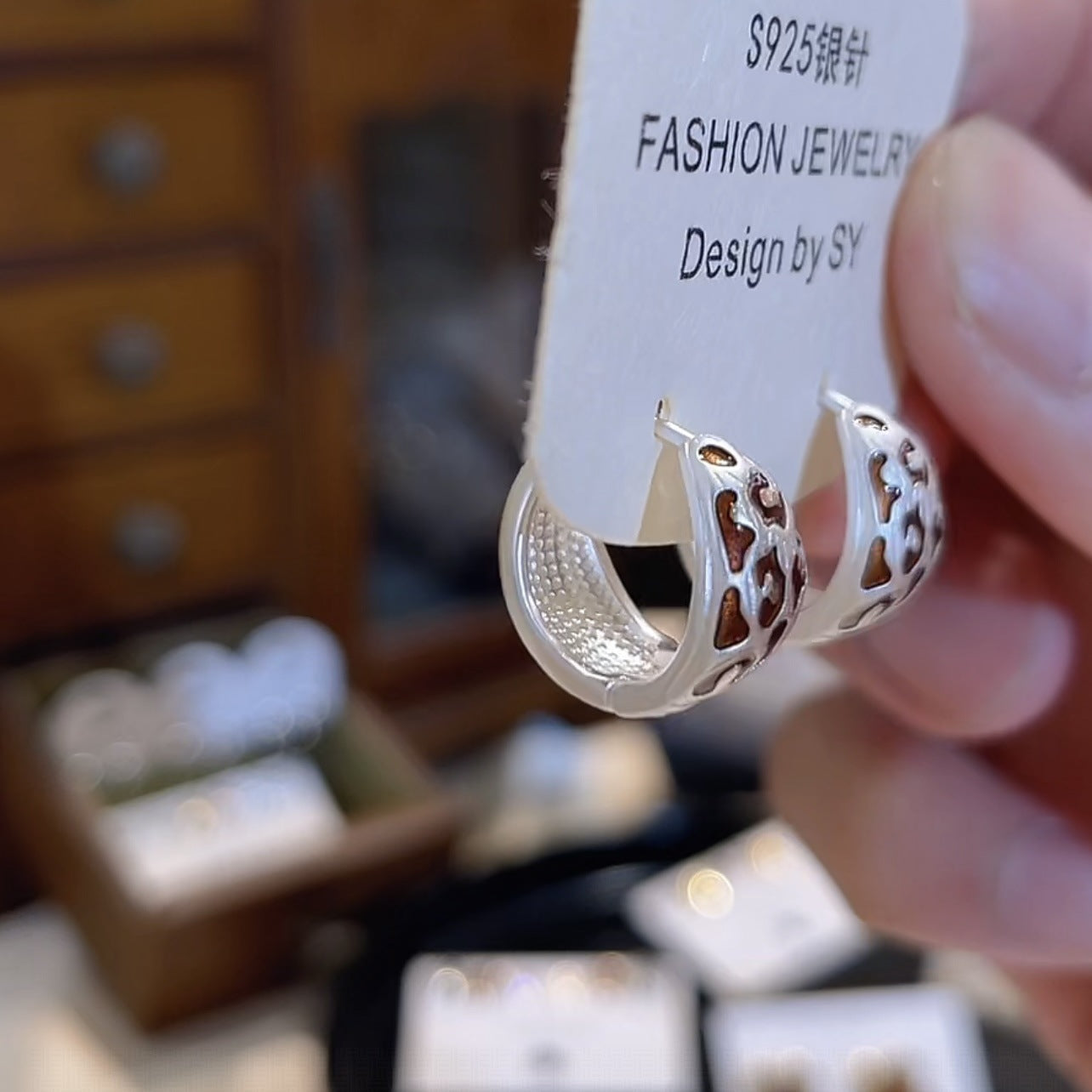A2廠 韓國韓版復古豹紋滴油C型銀針耳環 批發 折扣@洽客服 25.10.W3「HE28758」