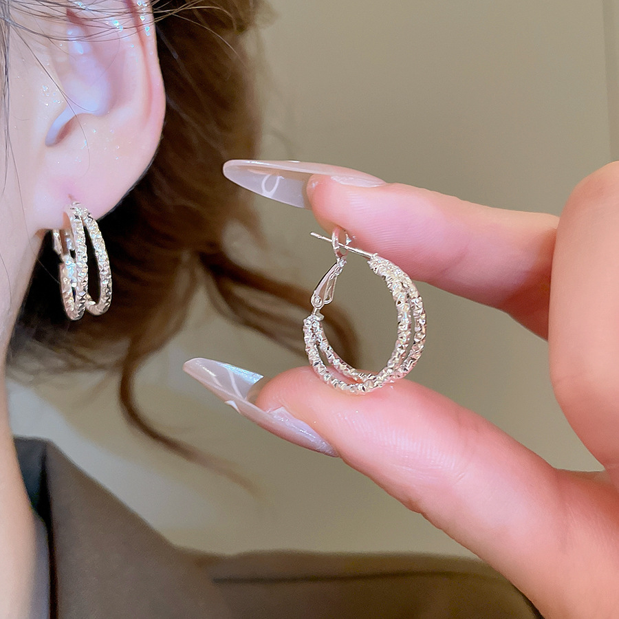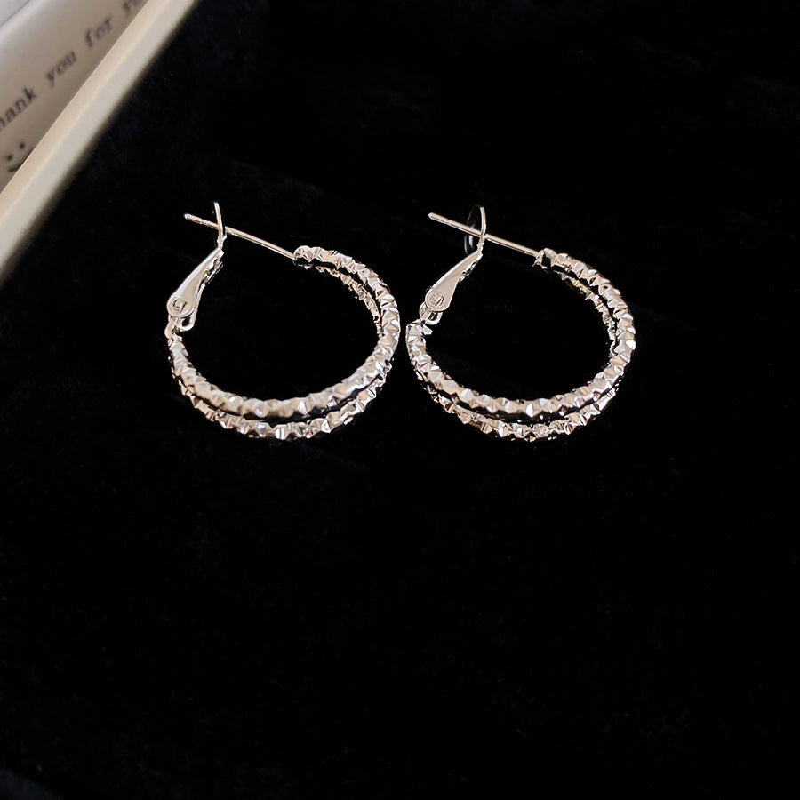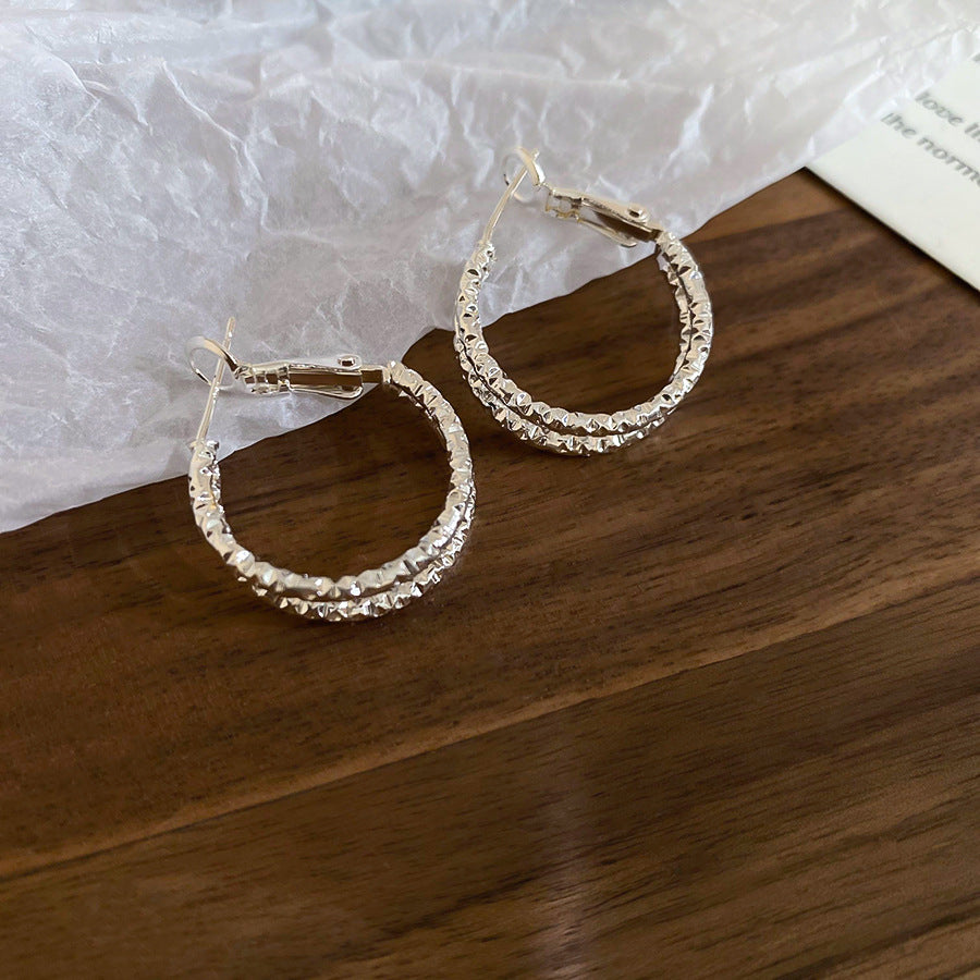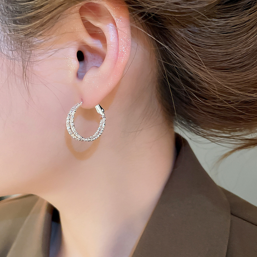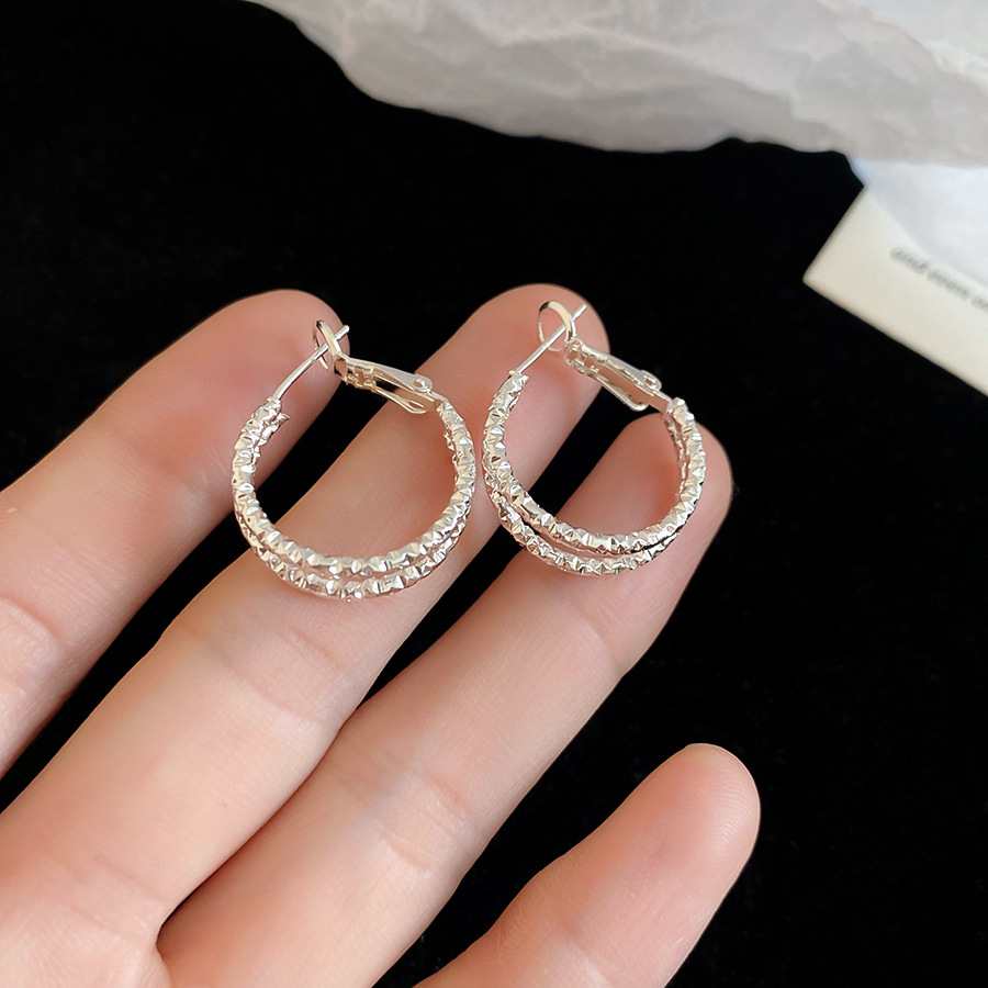 A2廠 韓國韓版褶皺雙層銀針耳環 批發 折扣@洽客服 25.10.W3「HE28775」