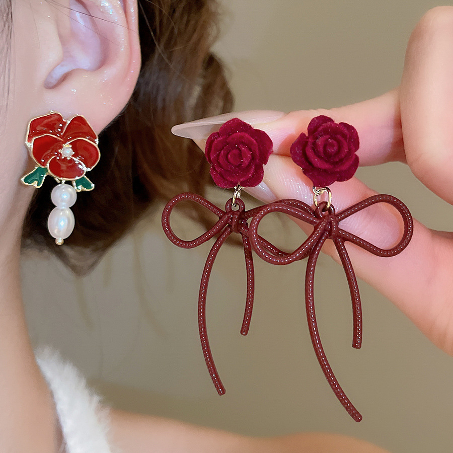 A2廠 韓國韓版玫瑰花蝴蝶結珍珠銀針耳環 批發 折扣@洽客服 25.10.W5「HE28841-HE28842」