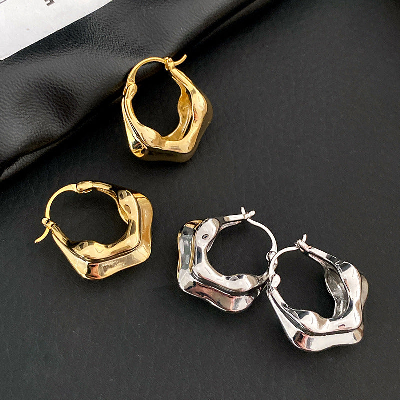 A2廠 韓國韓版金屬感光面幾何鏤空銀針耳環 批發 折扣@洽客服 25.10.W5「HE28843」