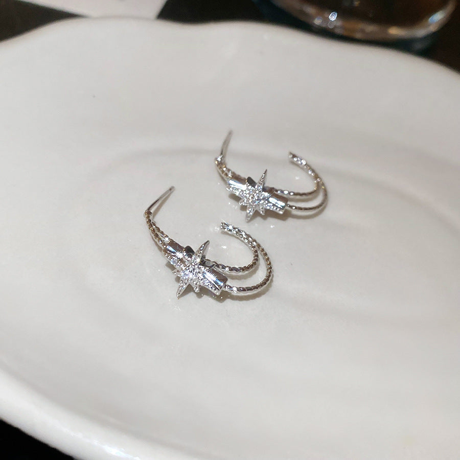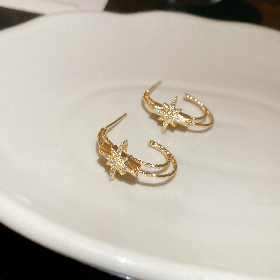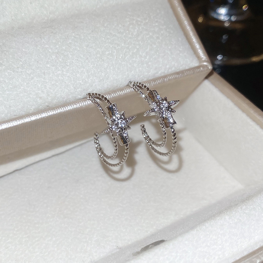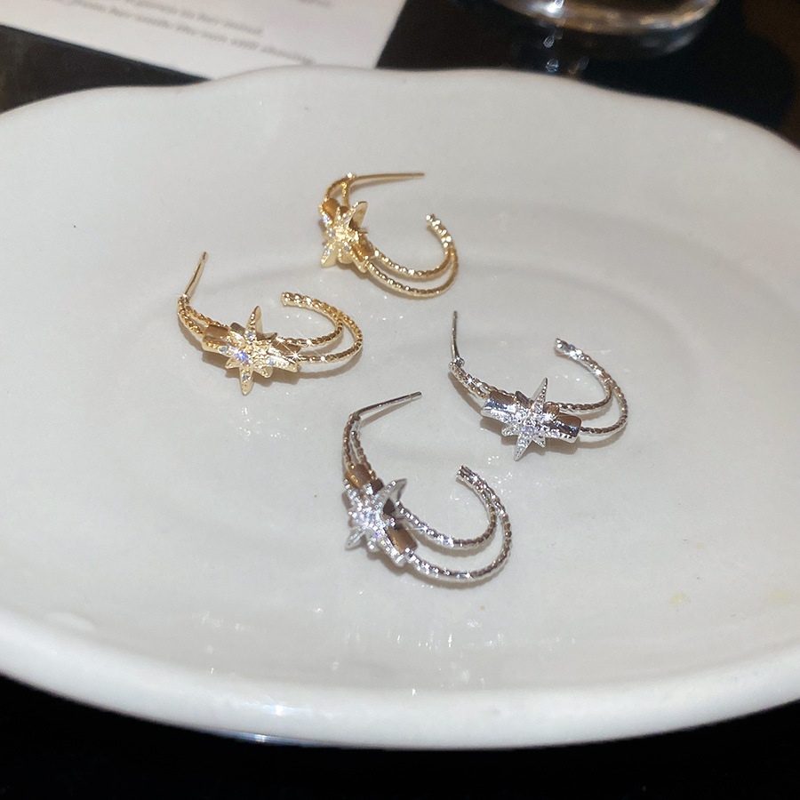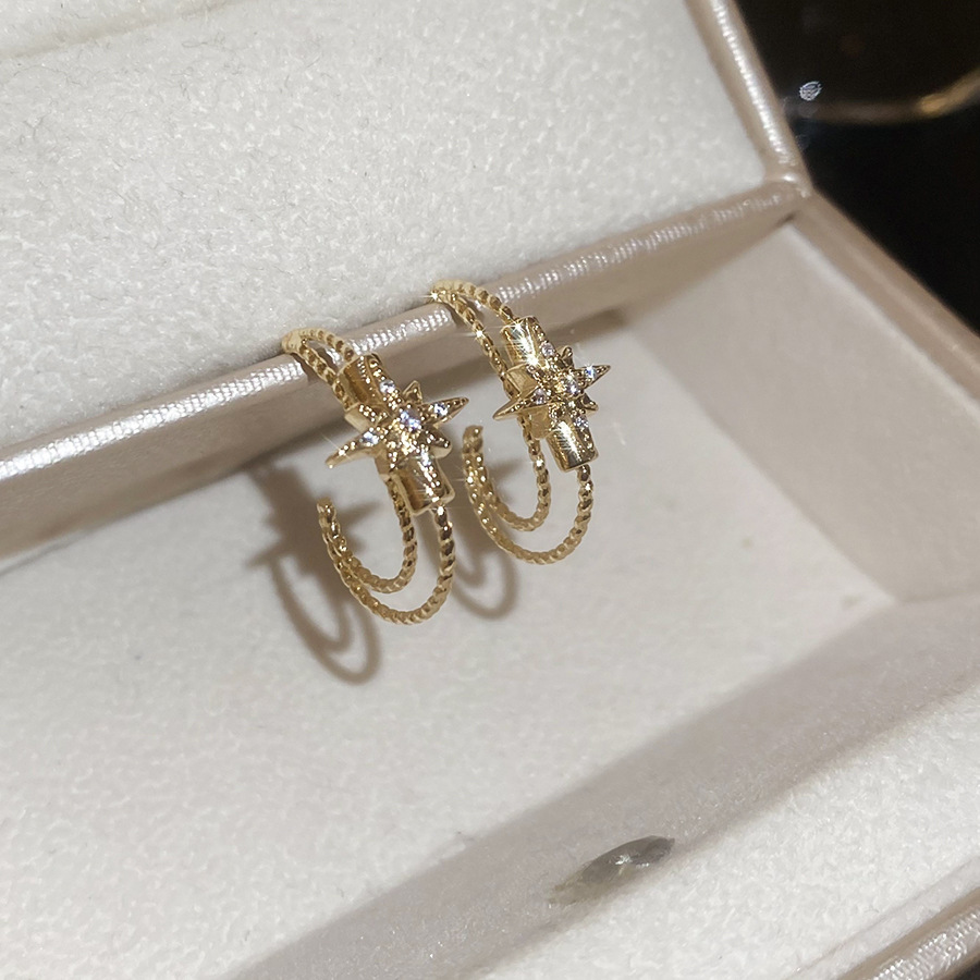 A2廠 韓國韓版鋯石芒星C型銀針耳環 批發 折扣@洽客服 25.10.W5「HE28853」
