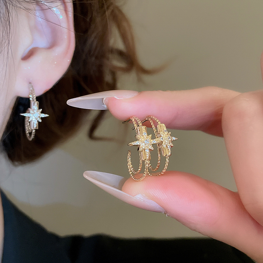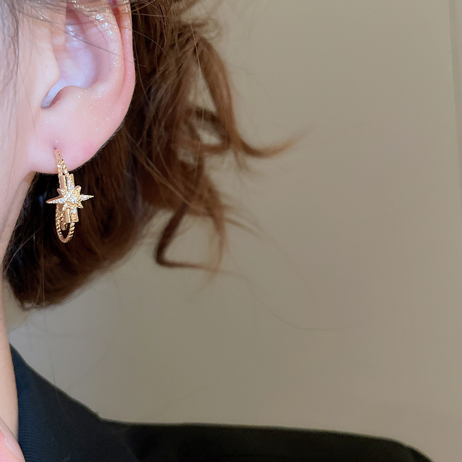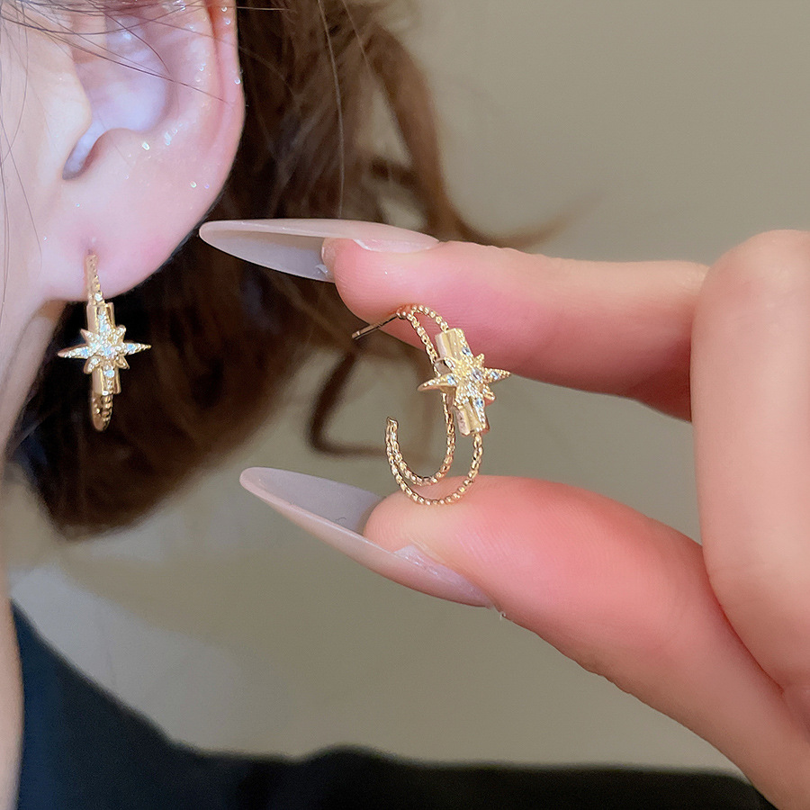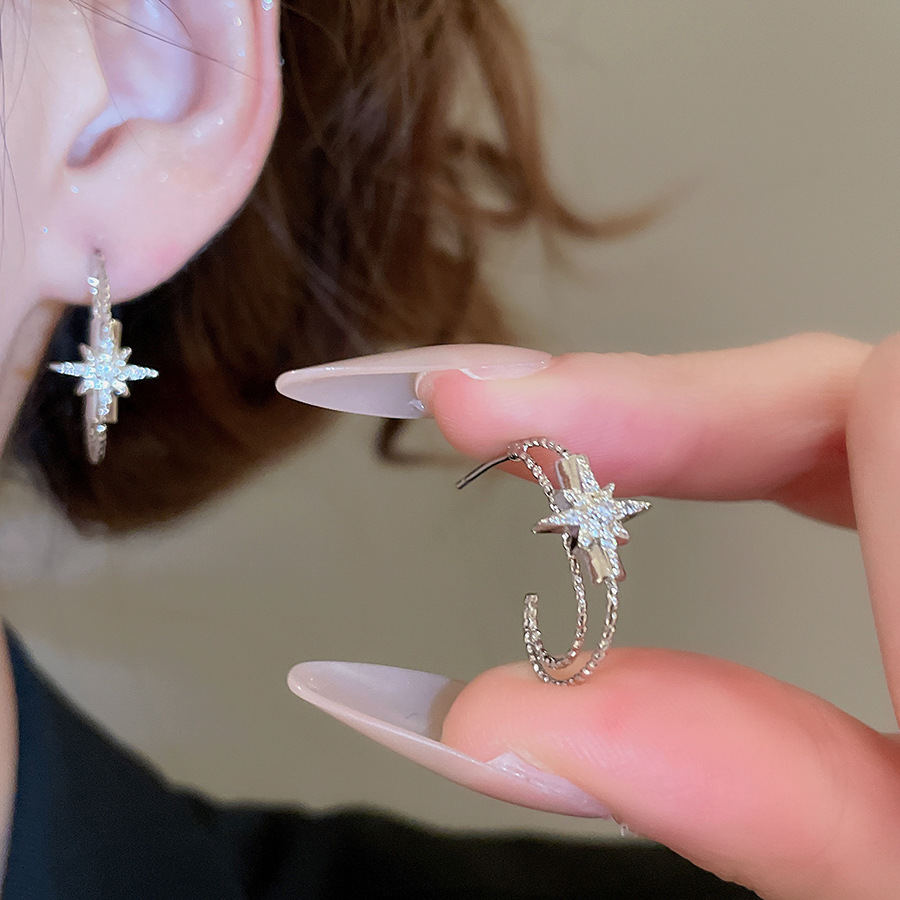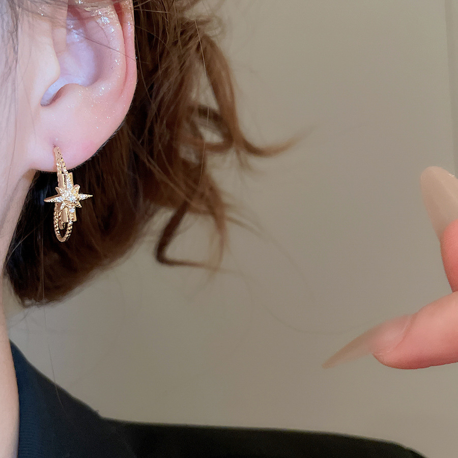 A2廠 韓國韓版鋯石芒星C型銀針耳環 批發 折扣@洽客服 25.10.W5「HE28853」