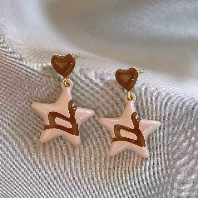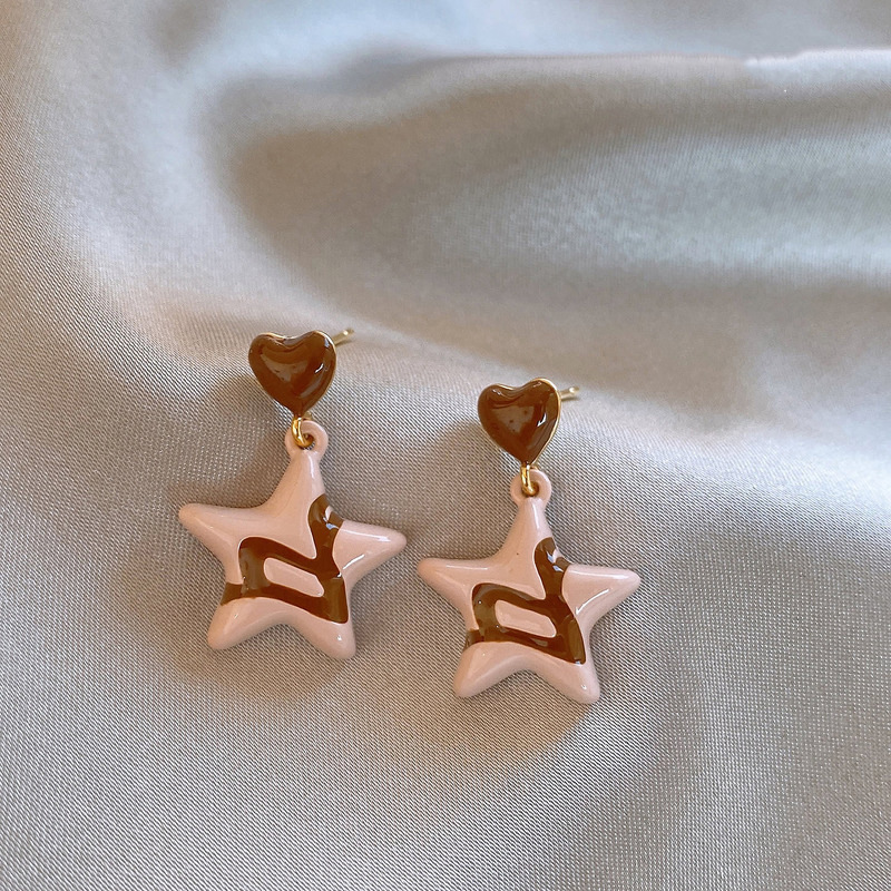 A2廠 韓國韓版滴油愛心星星銀針耳環 批發 折扣@洽客服 25.10.W5「HE28854」